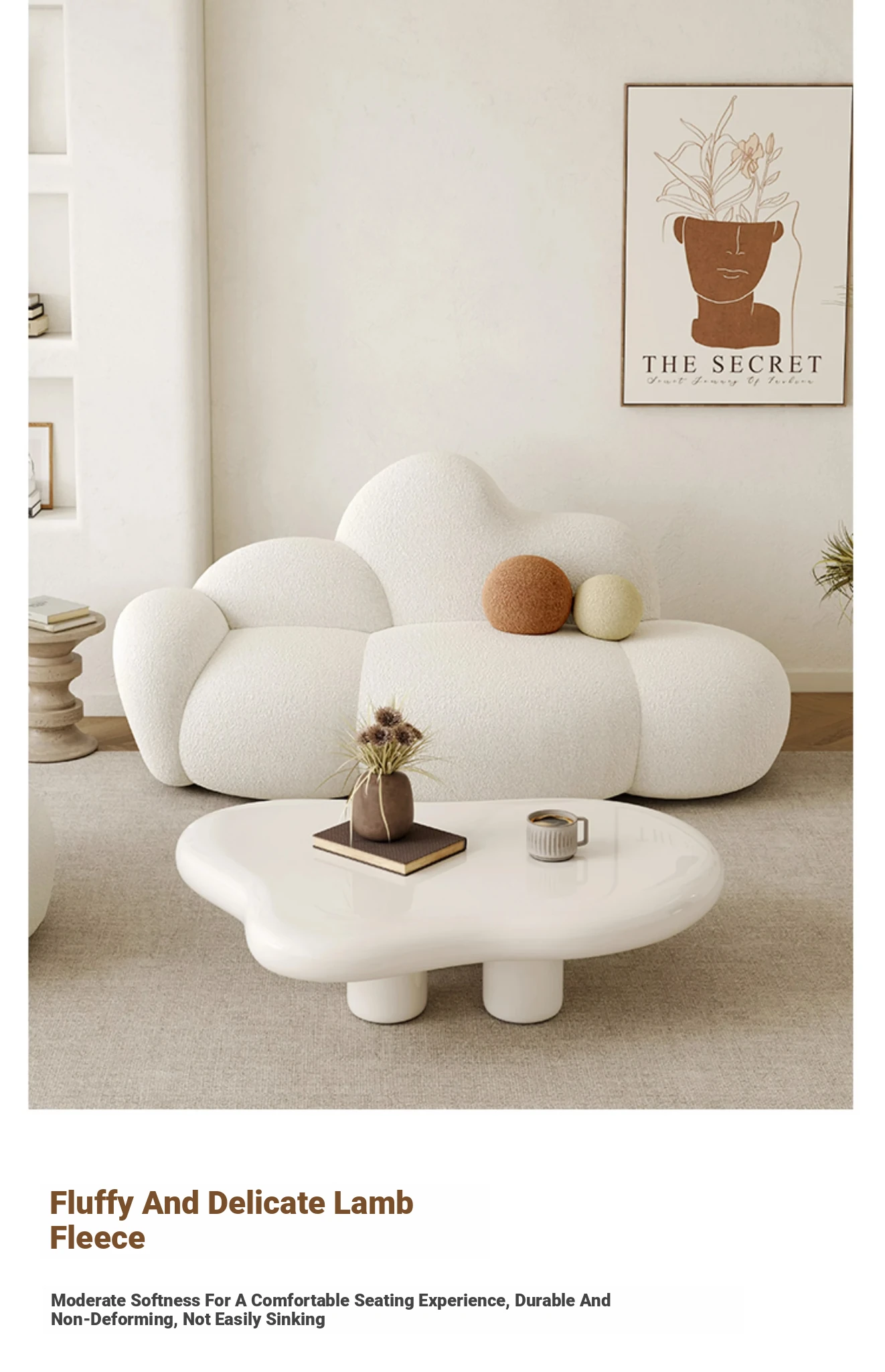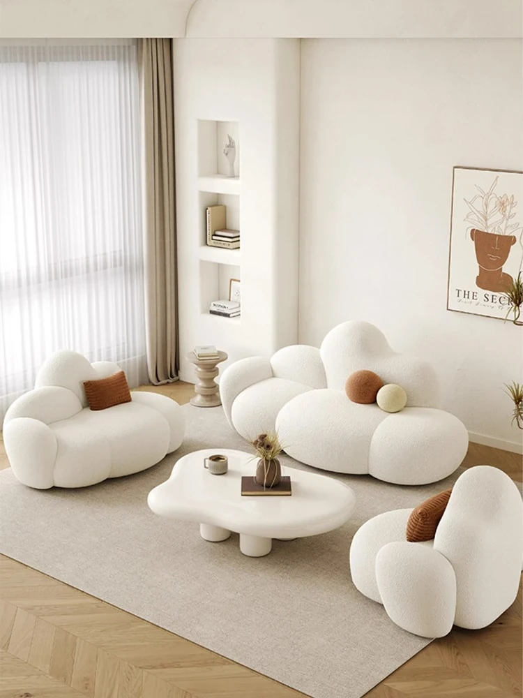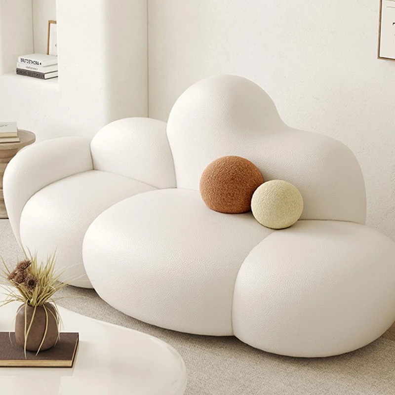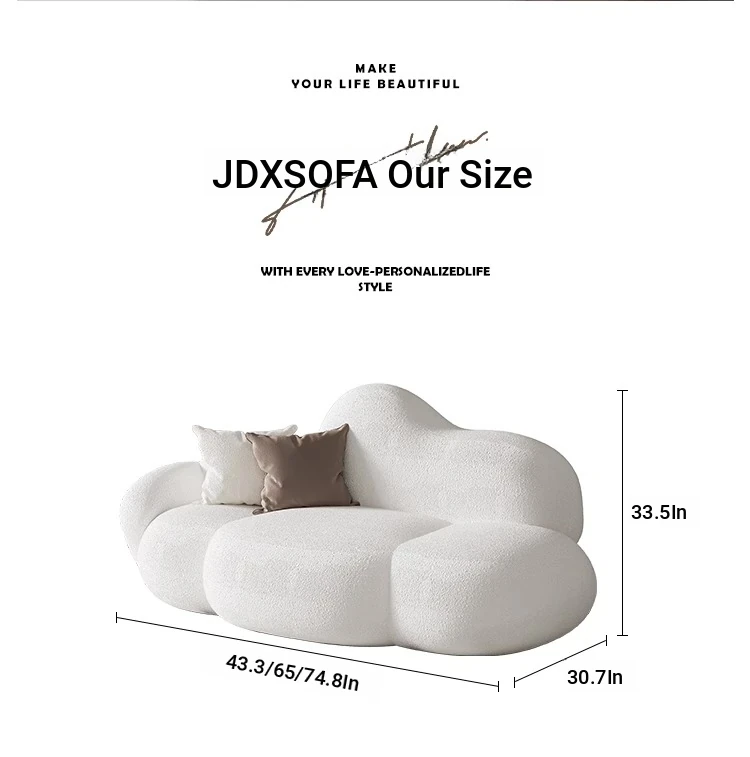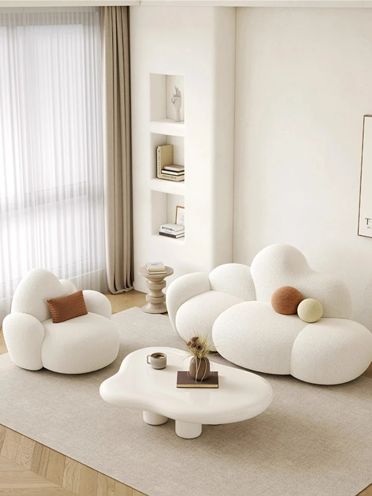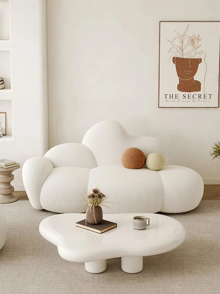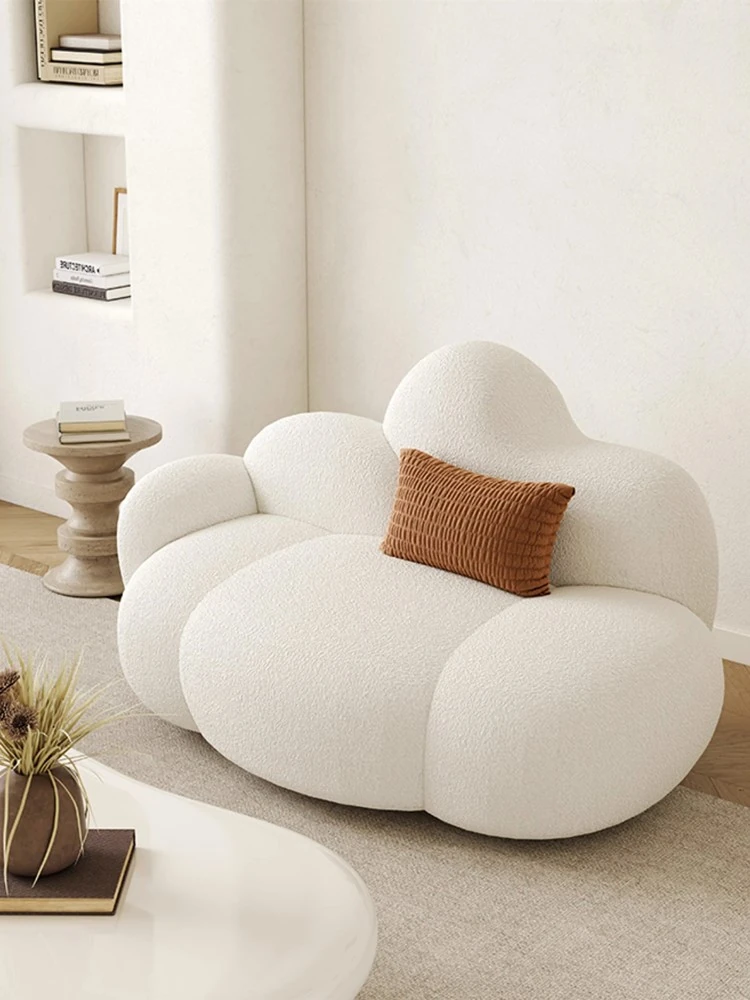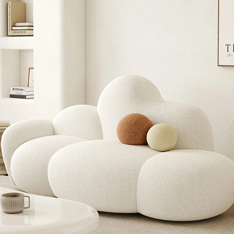 Haiseng Cream Wind Double Sofa - Cloud-Shaped Trendy Bed Sofa for Small Spaces, Perfect for Bedrooms and Clothing Stores, Made with Cozy Sherpa Fabric