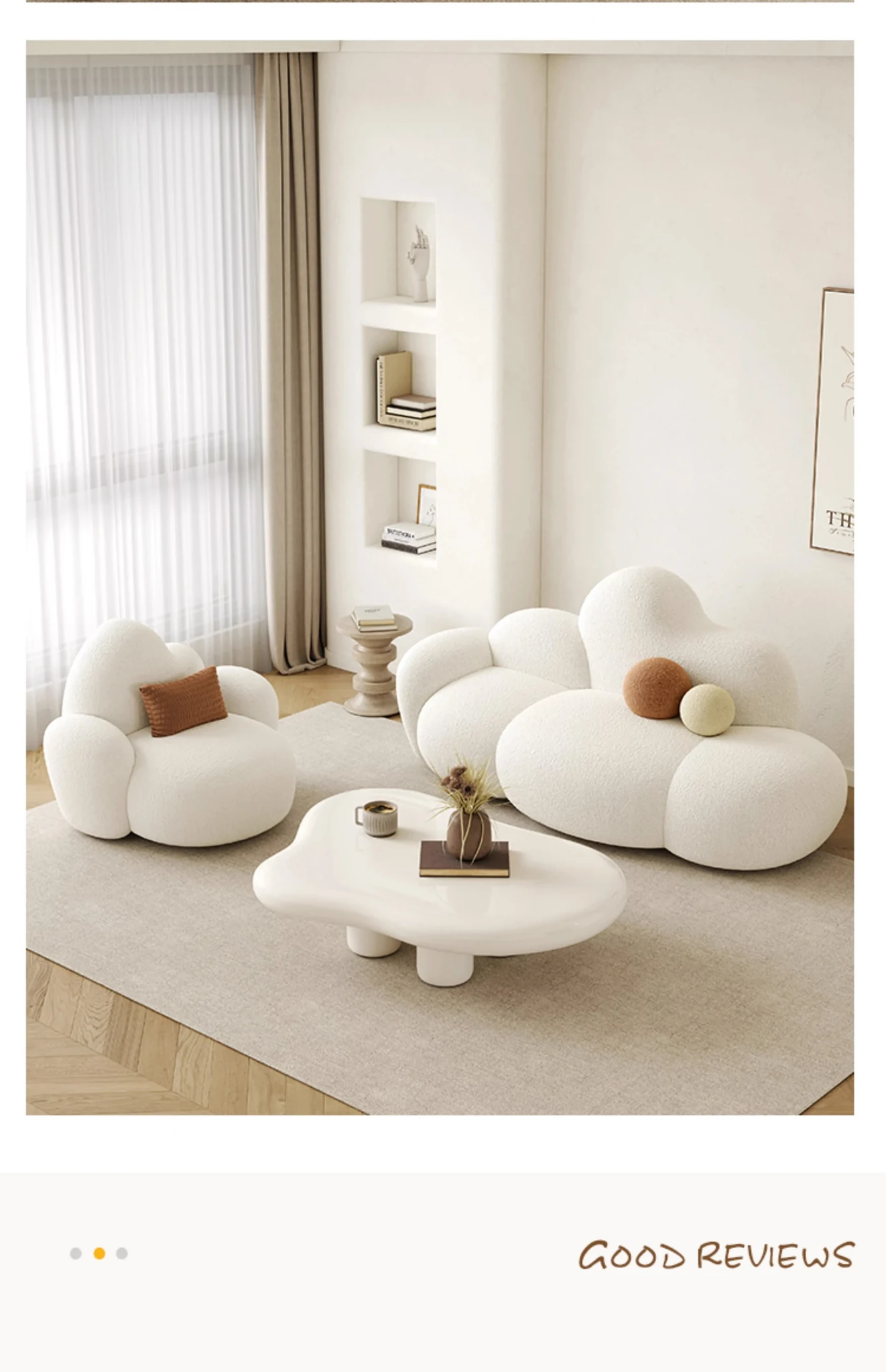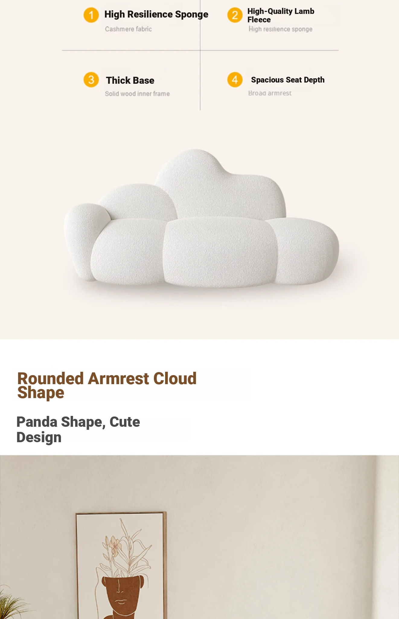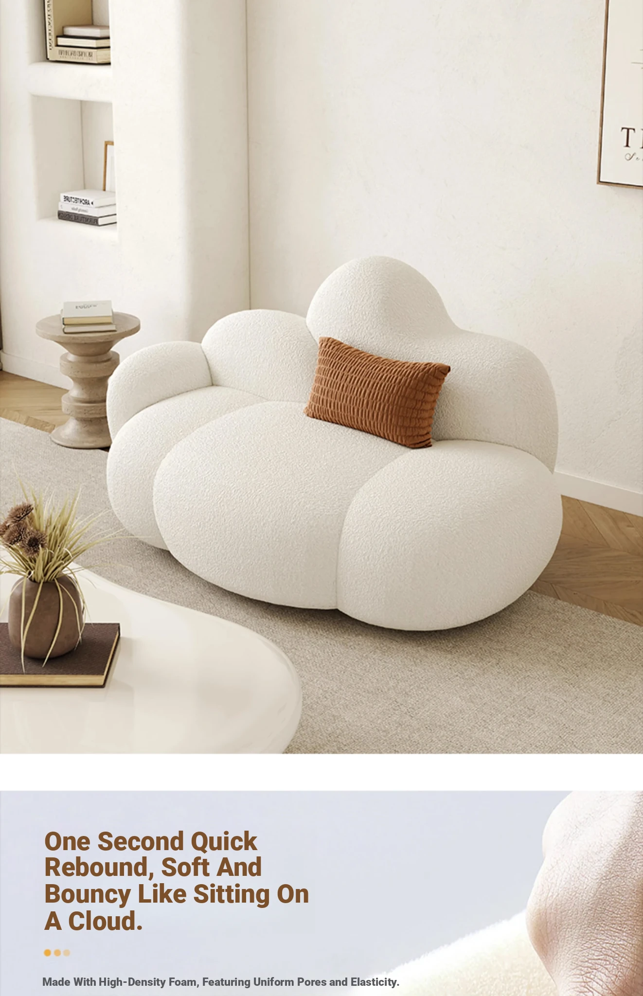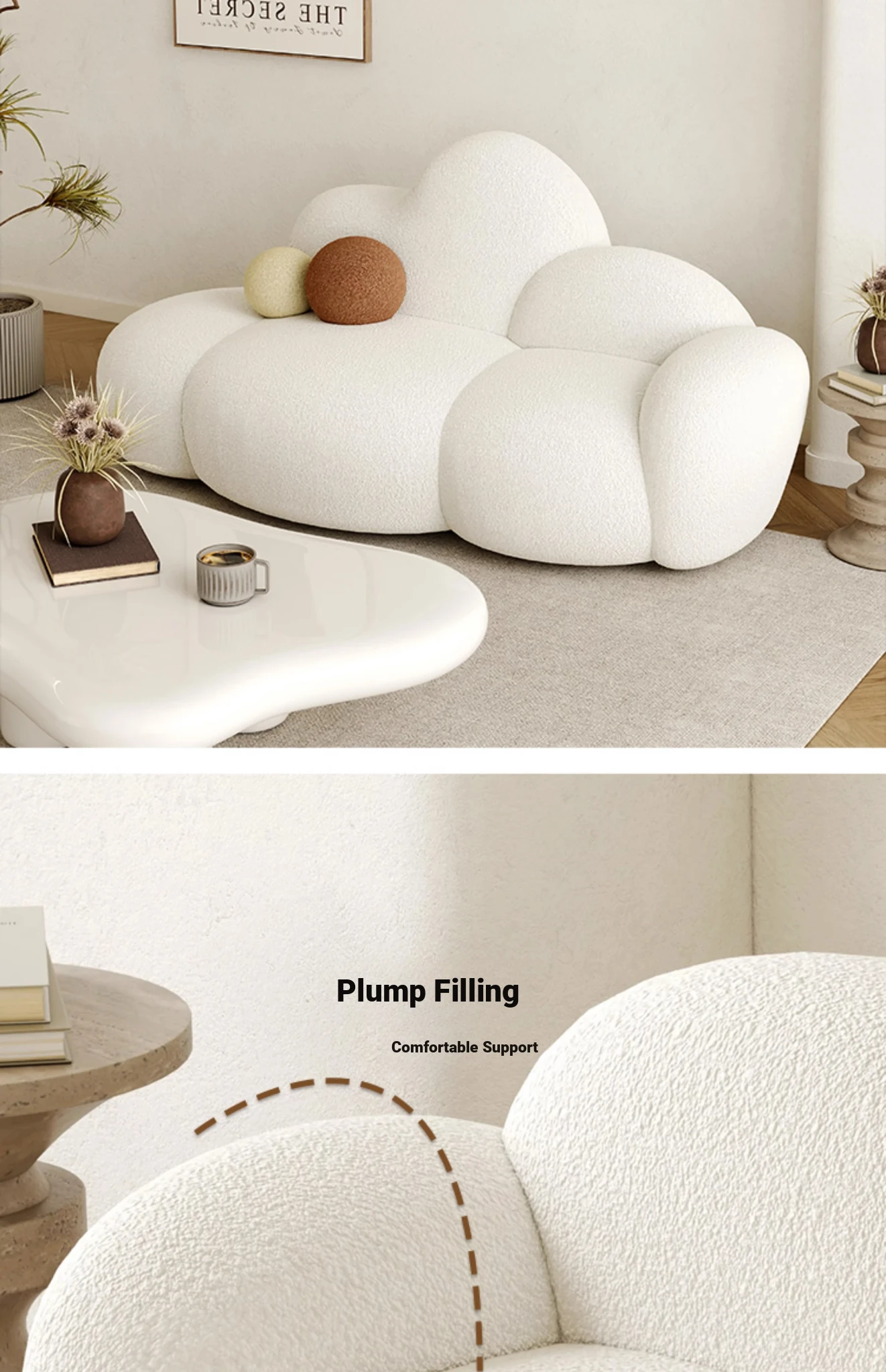 Haiseng Cream Wind Double Sofa - Cloud-Shaped Trendy Bed Sofa for Small Spaces, Perfect for Bedrooms and Clothing Stores, Made with Cozy Sherpa Fabric