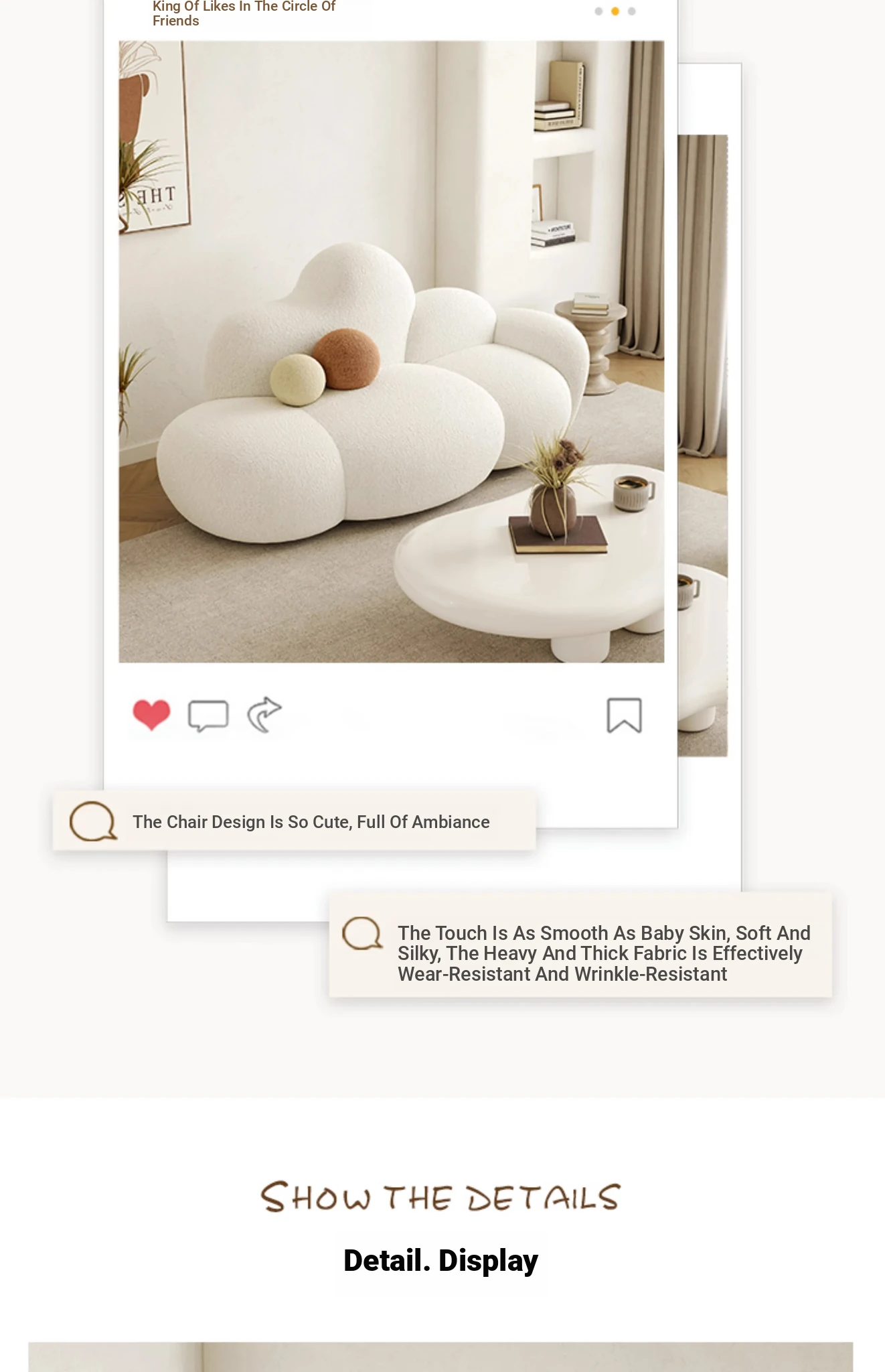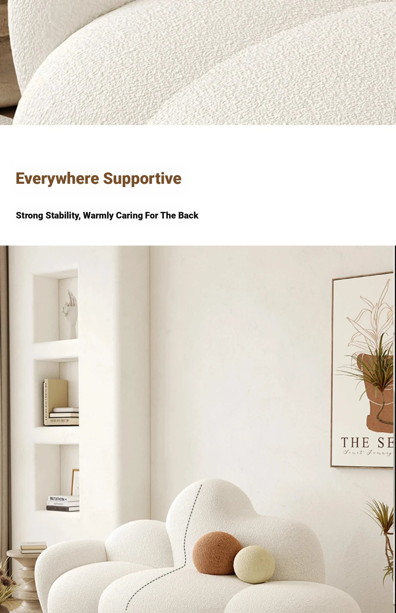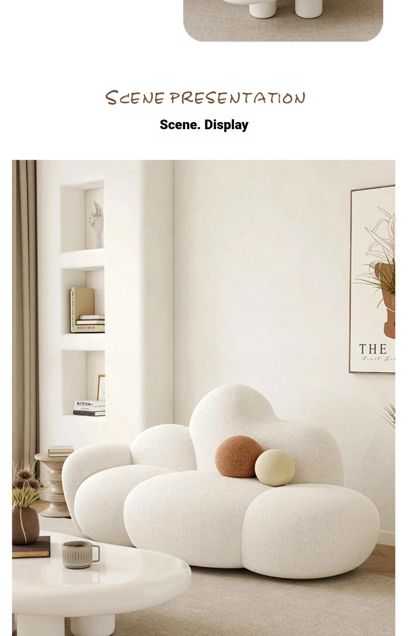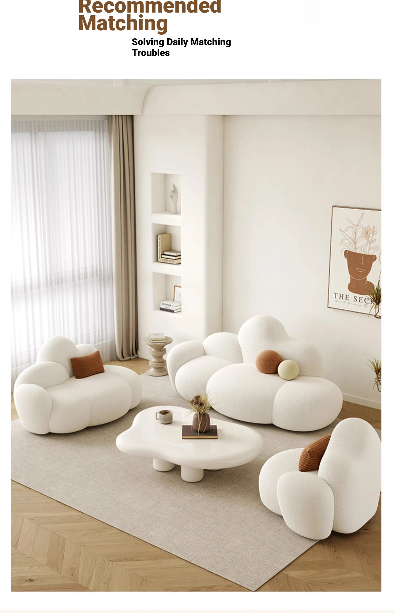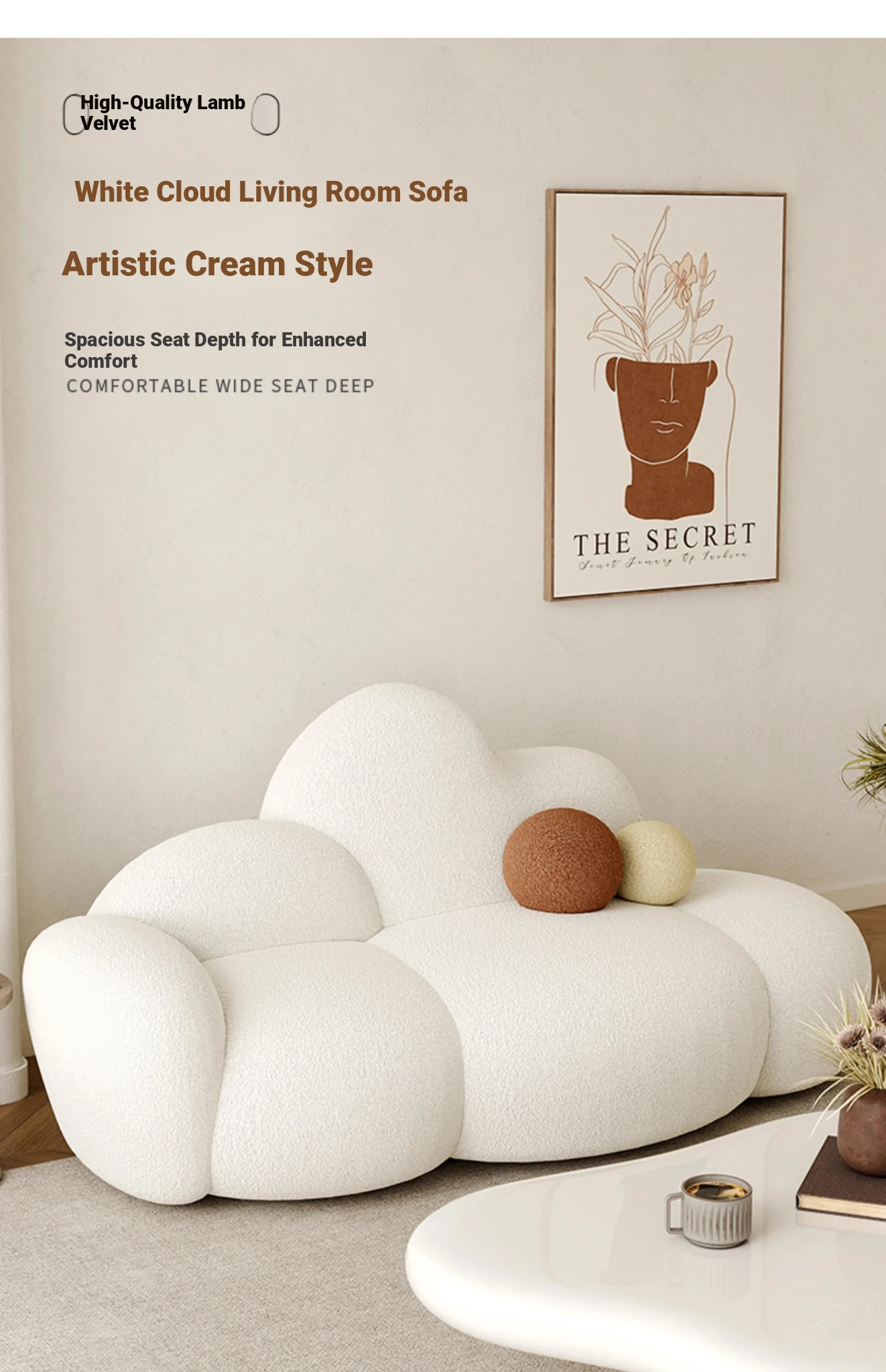 Haiseng Cream Wind Double Sofa - Cloud-Shaped Trendy Bed Sofa for Small Spaces, Perfect for Bedrooms and Clothing Stores, Made with Cozy Sherpa Fabric