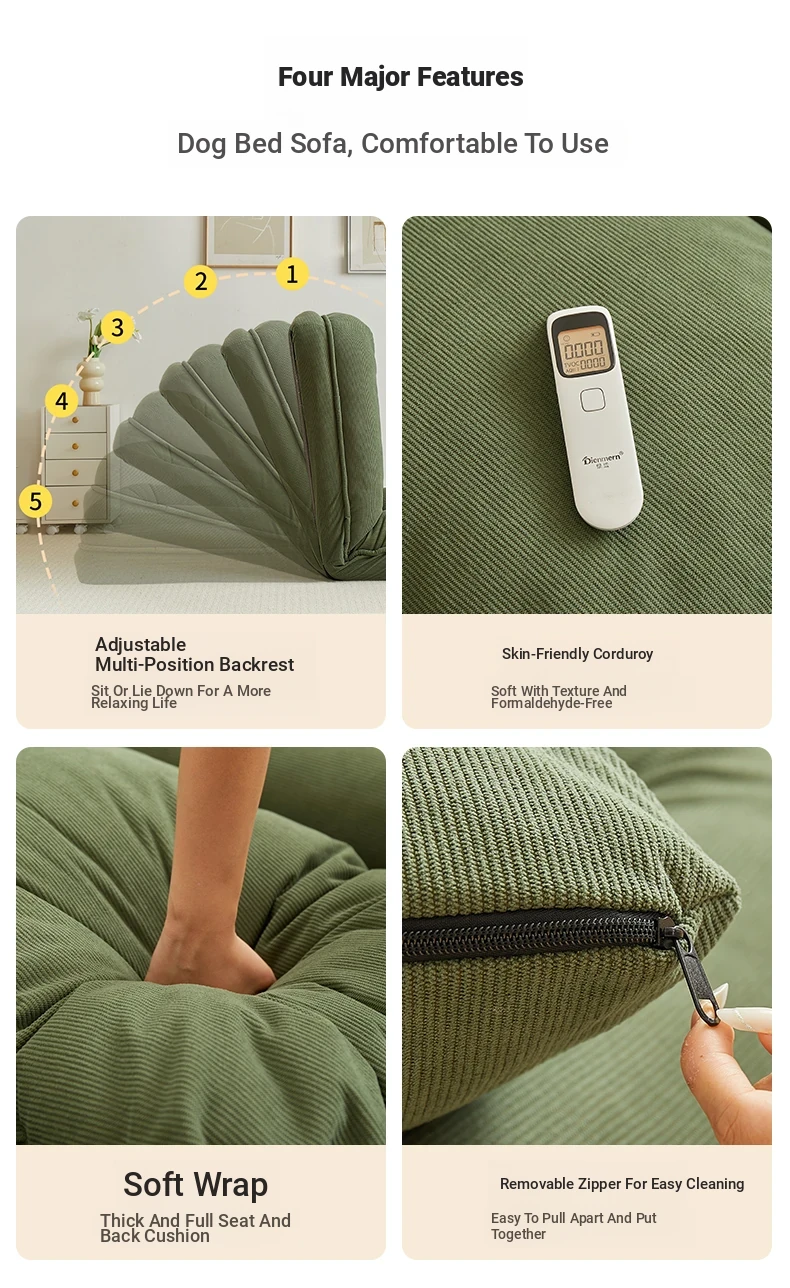Plus number-thickened New arrival [unfolded 78.74in * 37.40in] skin-feeling corduroy fabric-dark green [giving backrest + cushion]]
