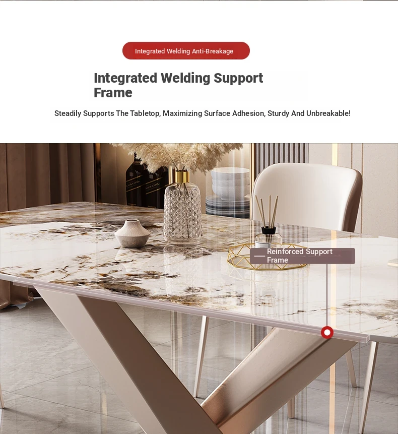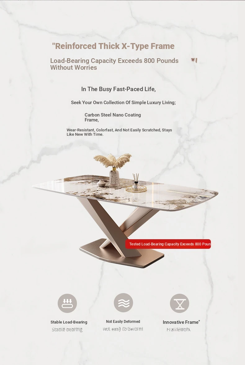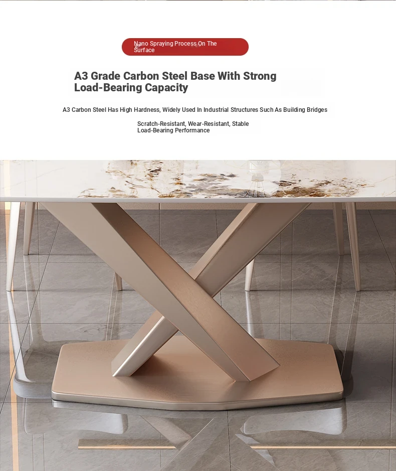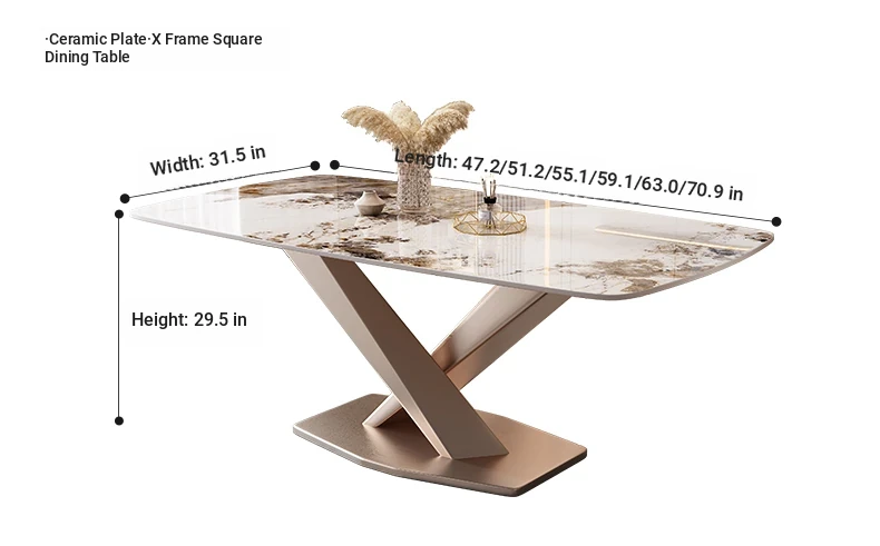Italian Luxury X-Shaped Rose Gold Metal Dining Table - Stylish Rectangular Design, 1.3m and 1.6m Sizes Perfect for Home Dining Rooms and Apartments. Elevate Your Dining Experience!