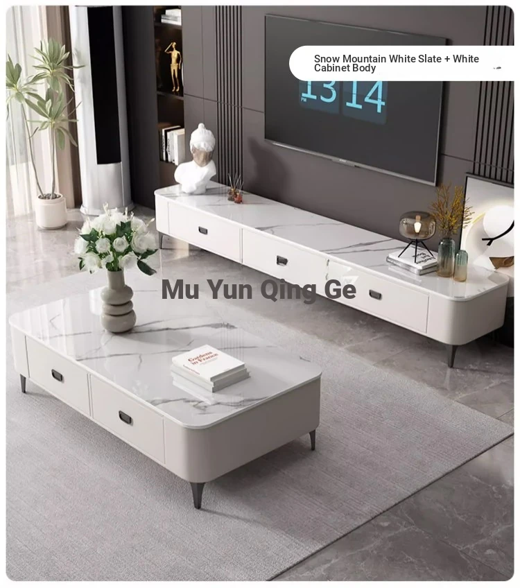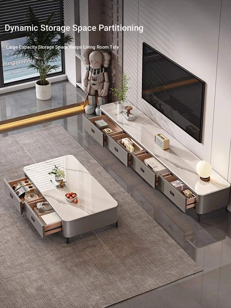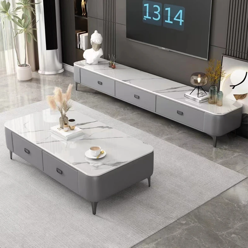 Italian Minimalist Coffee Table Set - Modern Luxury Design for Small Spaces, Perfect for Living Rooms and TV Areas.