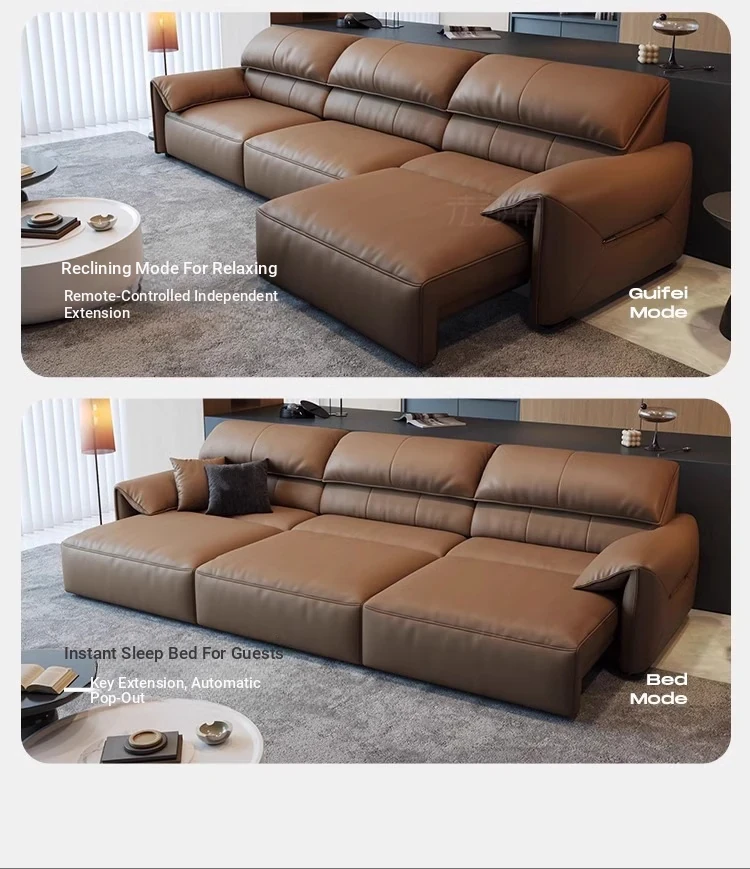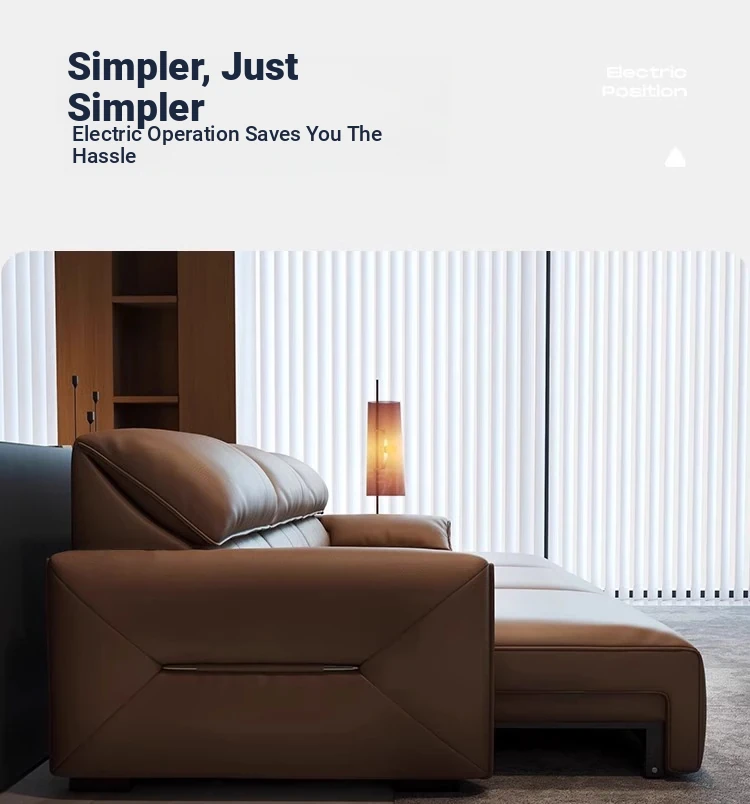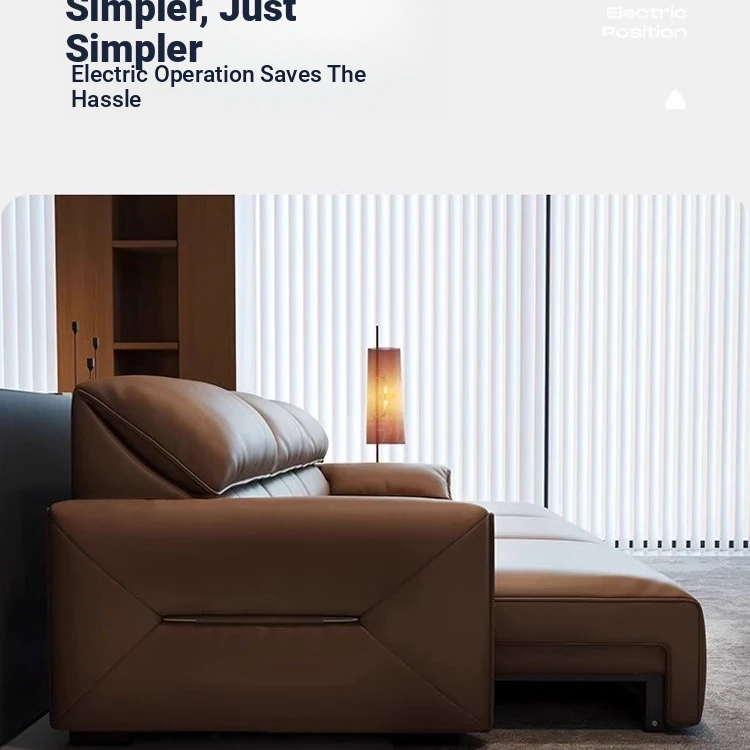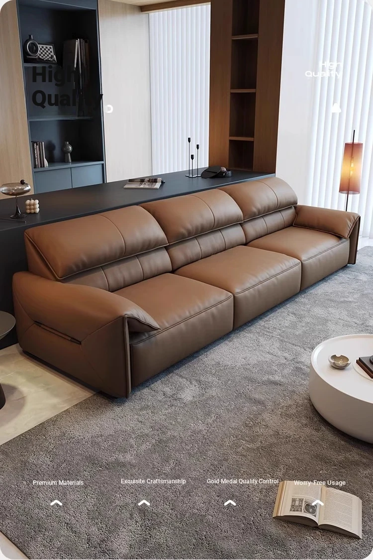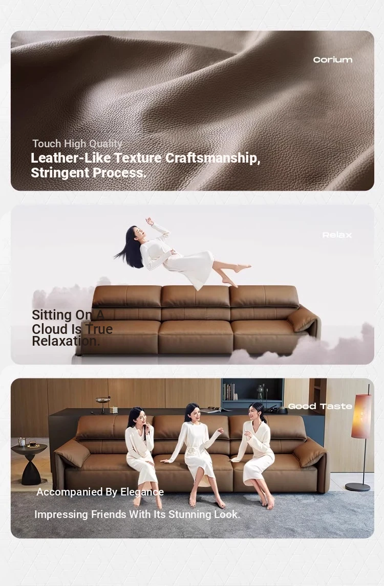 Italian Minimalist Elephant Ear Wall-free Electric Sofa - Modern Leather Couch for Living Room with Direct Backrest in Top-Grain Cowhide