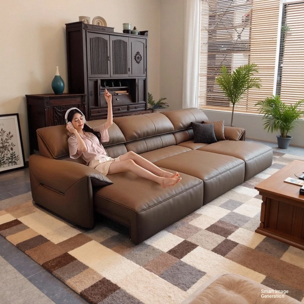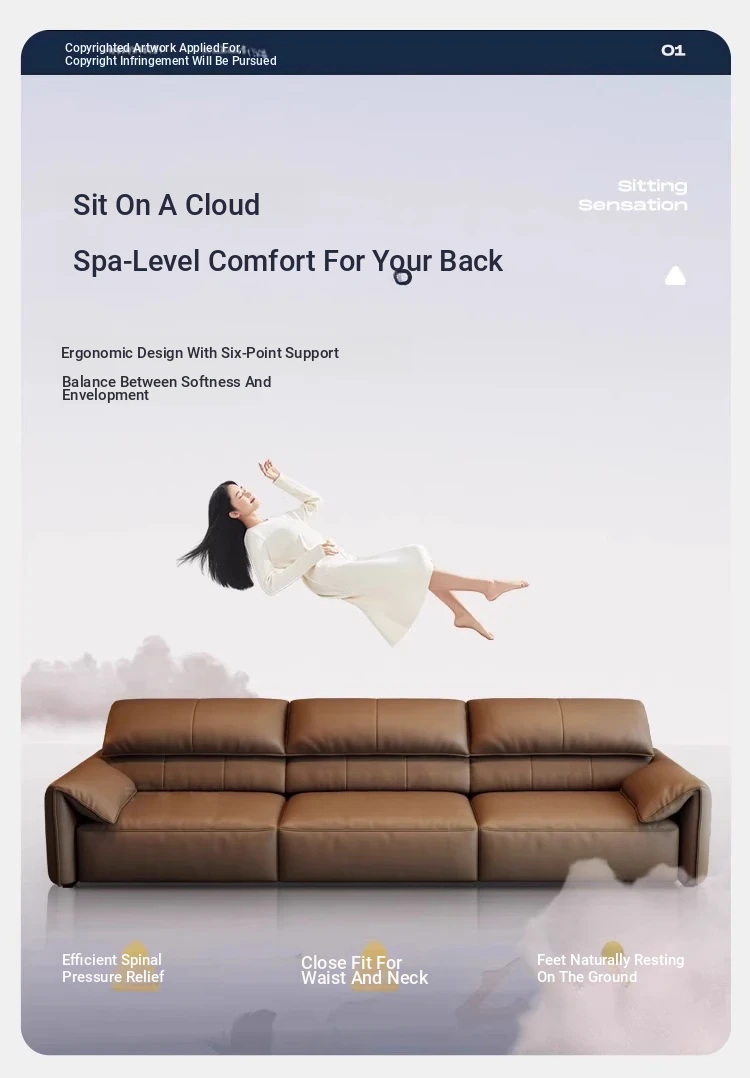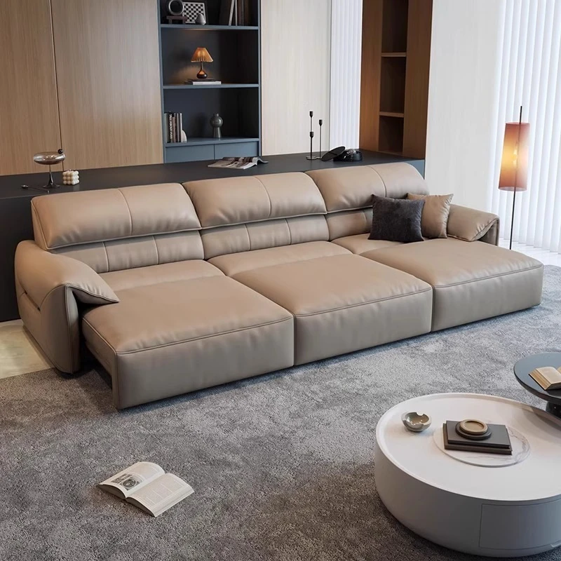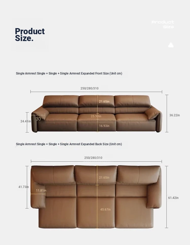 Italian Minimalist Elephant Ear Wall-free Electric Sofa - Modern Leather Couch for Living Room with Direct Backrest in Top-Grain Cowhide