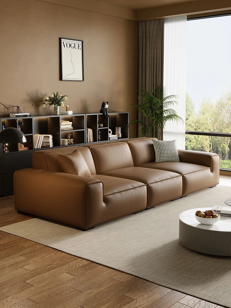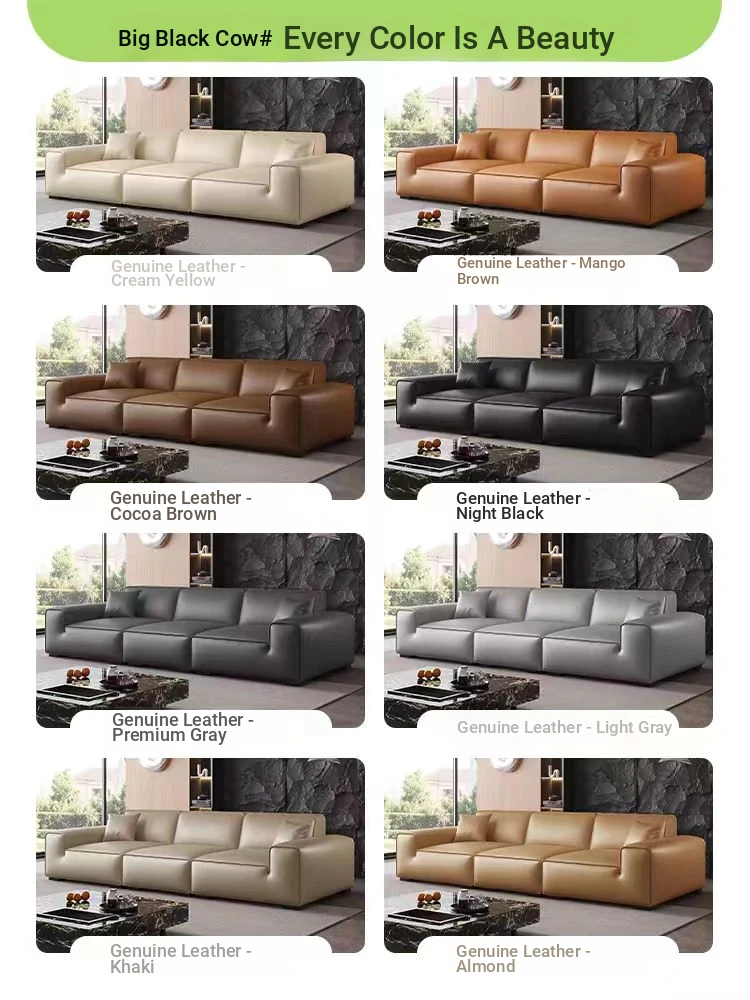 Italian Minimalist Luxury Eco-Friendly Genuine Leather Black Sofa Set for Living Room - Stylish 3-4 Seater Couch for Modern Spaces