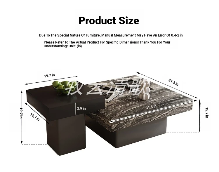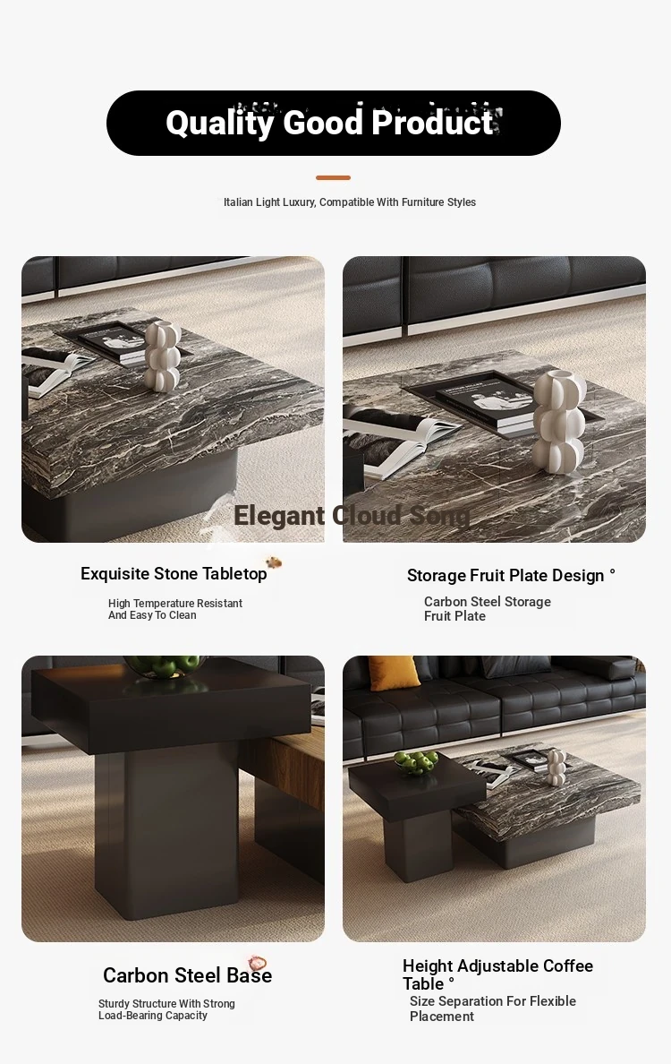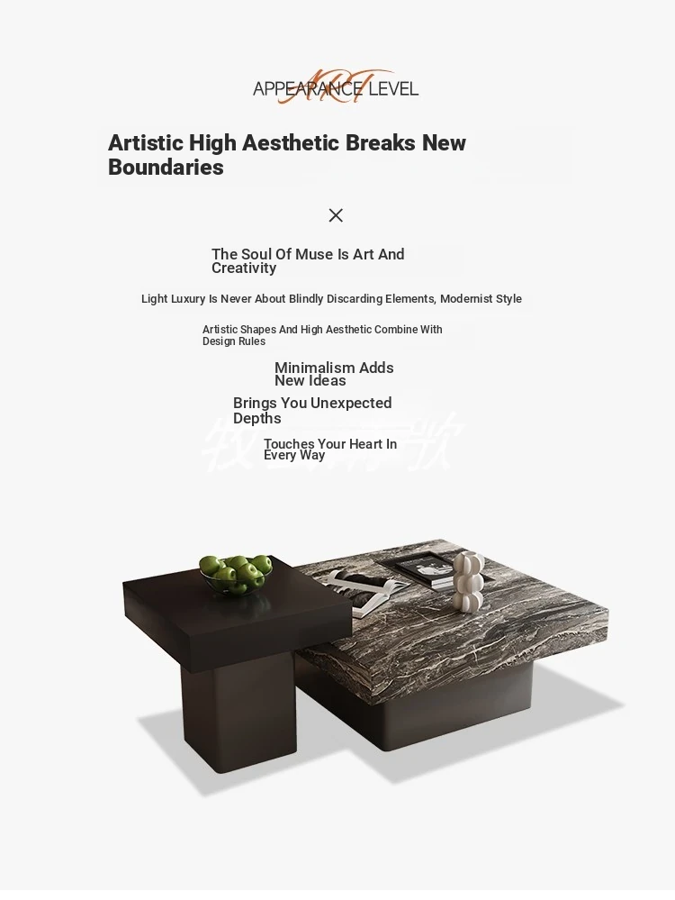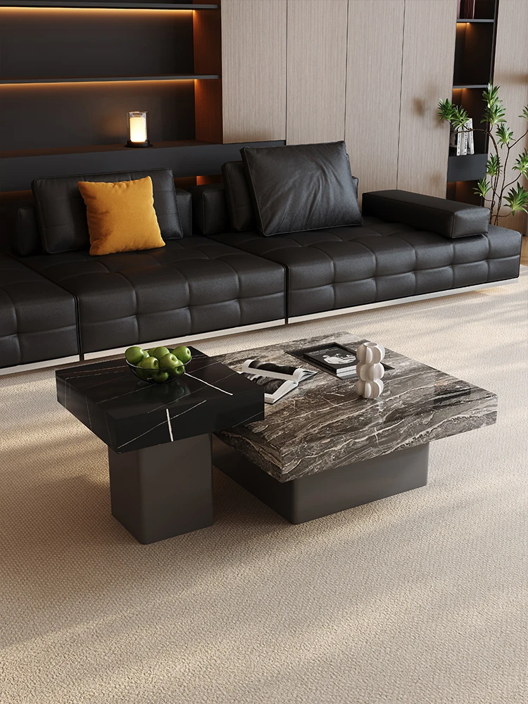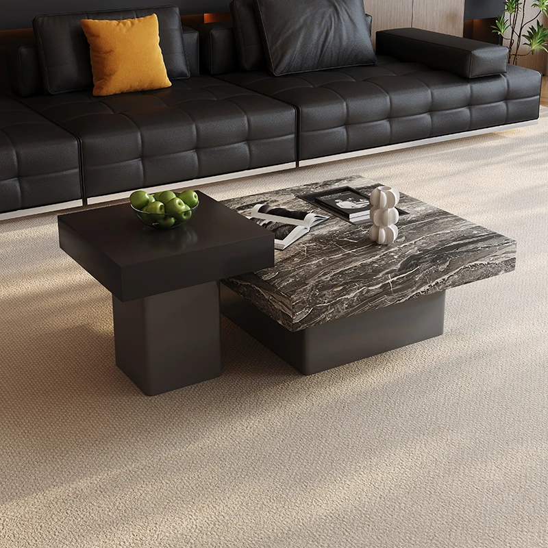 Italian Minimalist Marble Coffee Table - Modern Luxury Square Design for Small Spaces - Stylish Living Room Furniture Set for Home