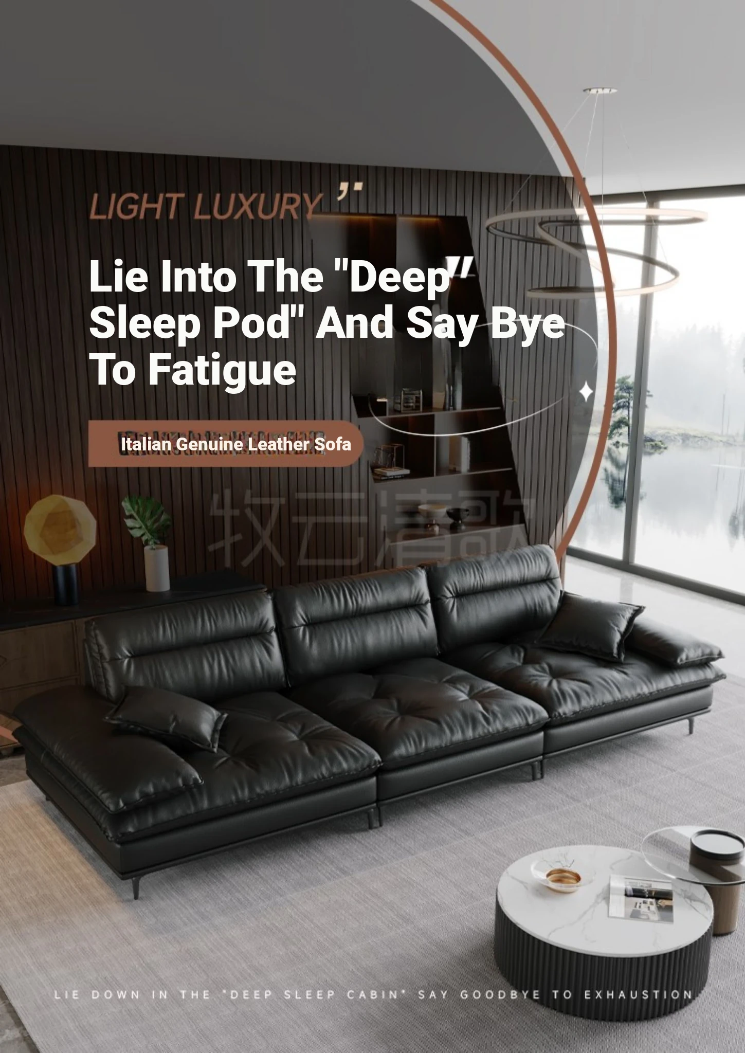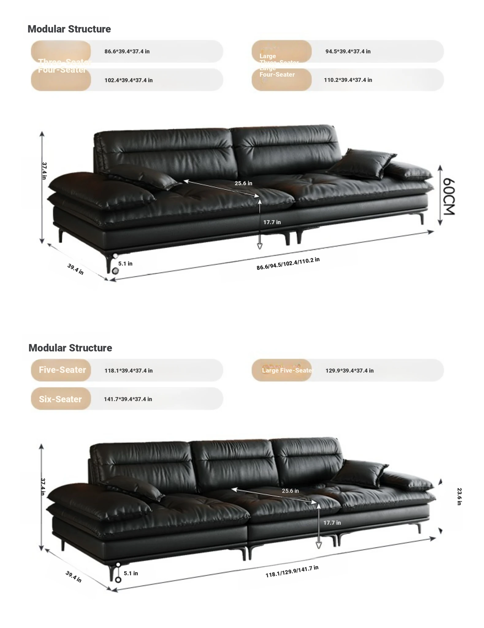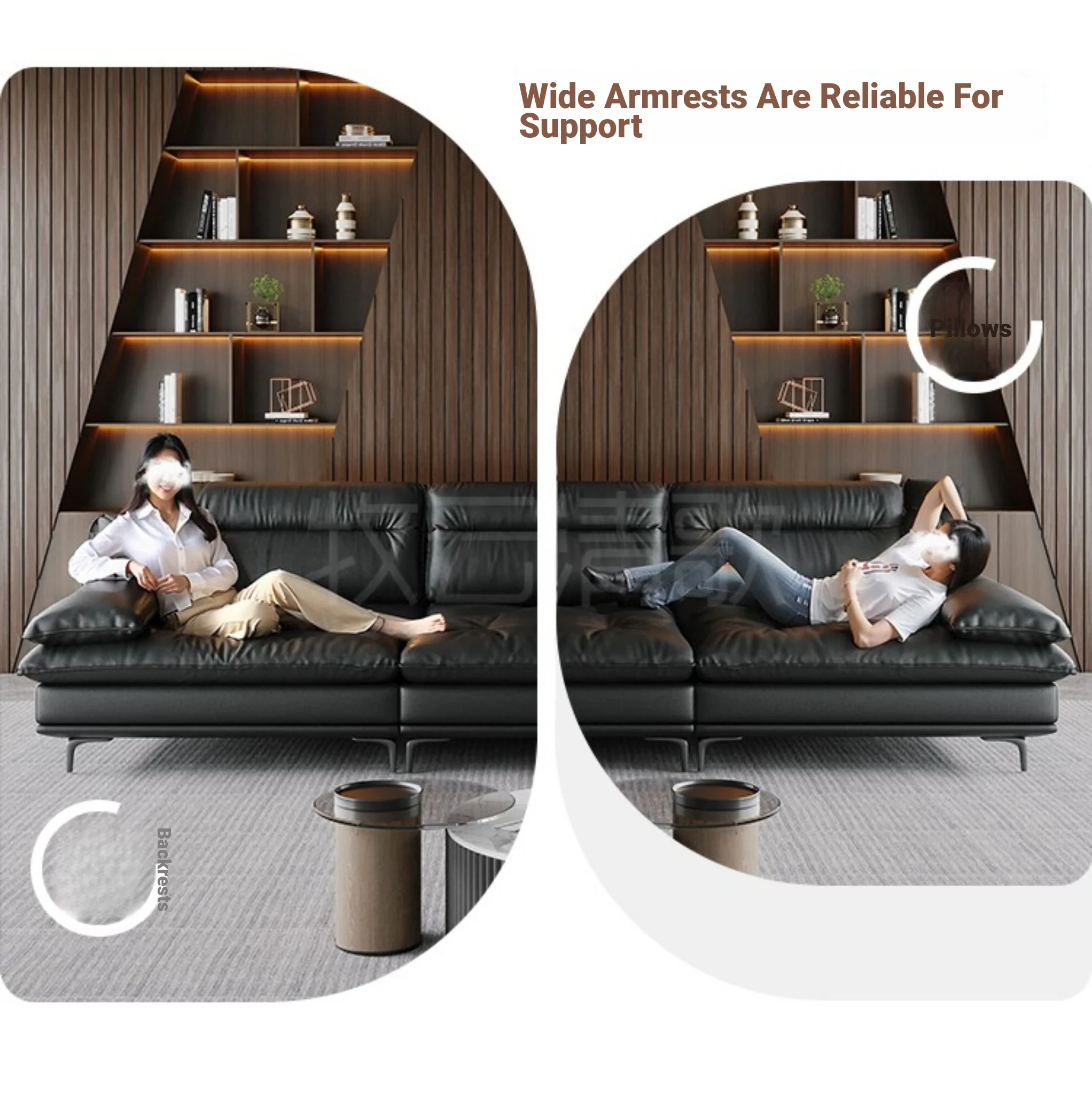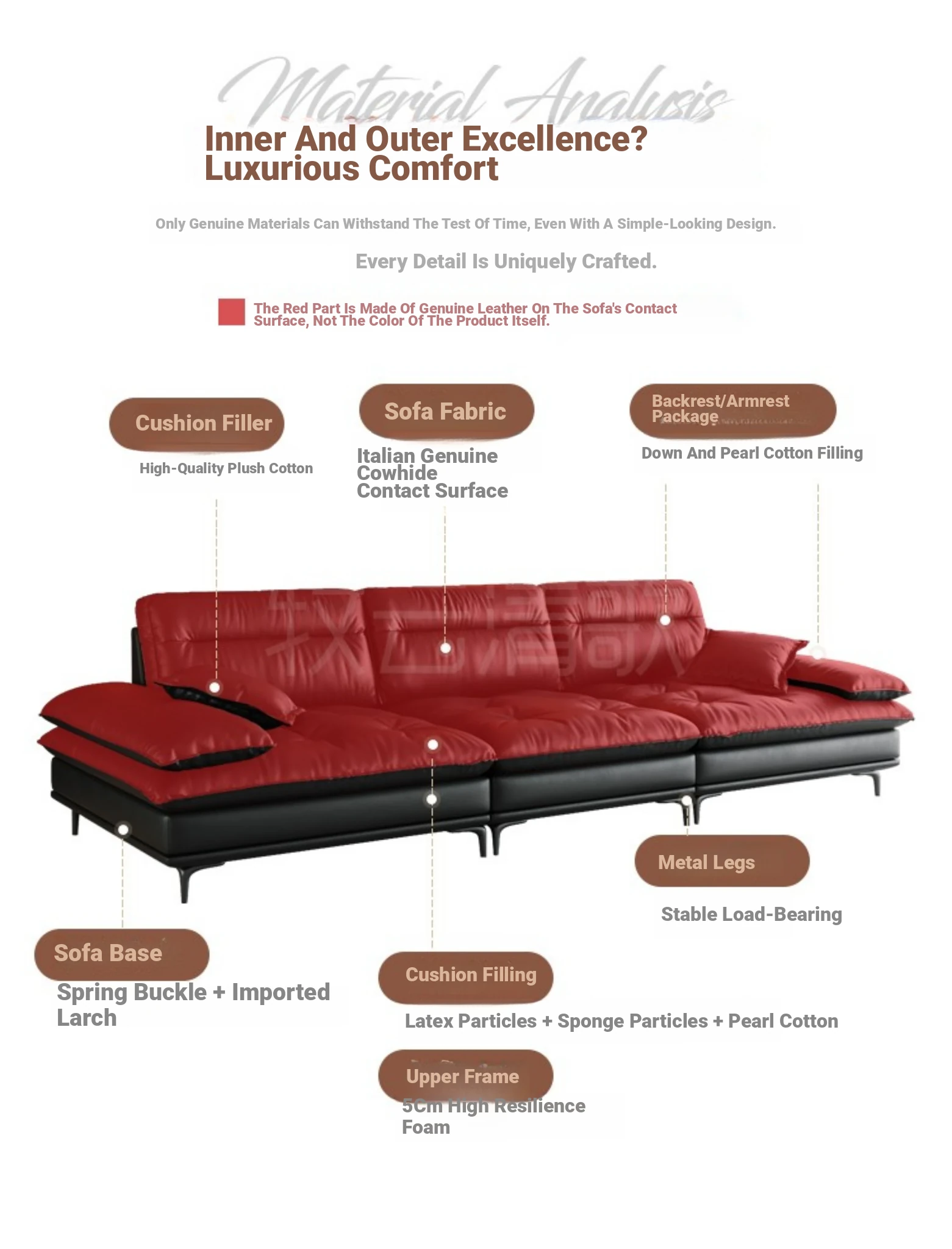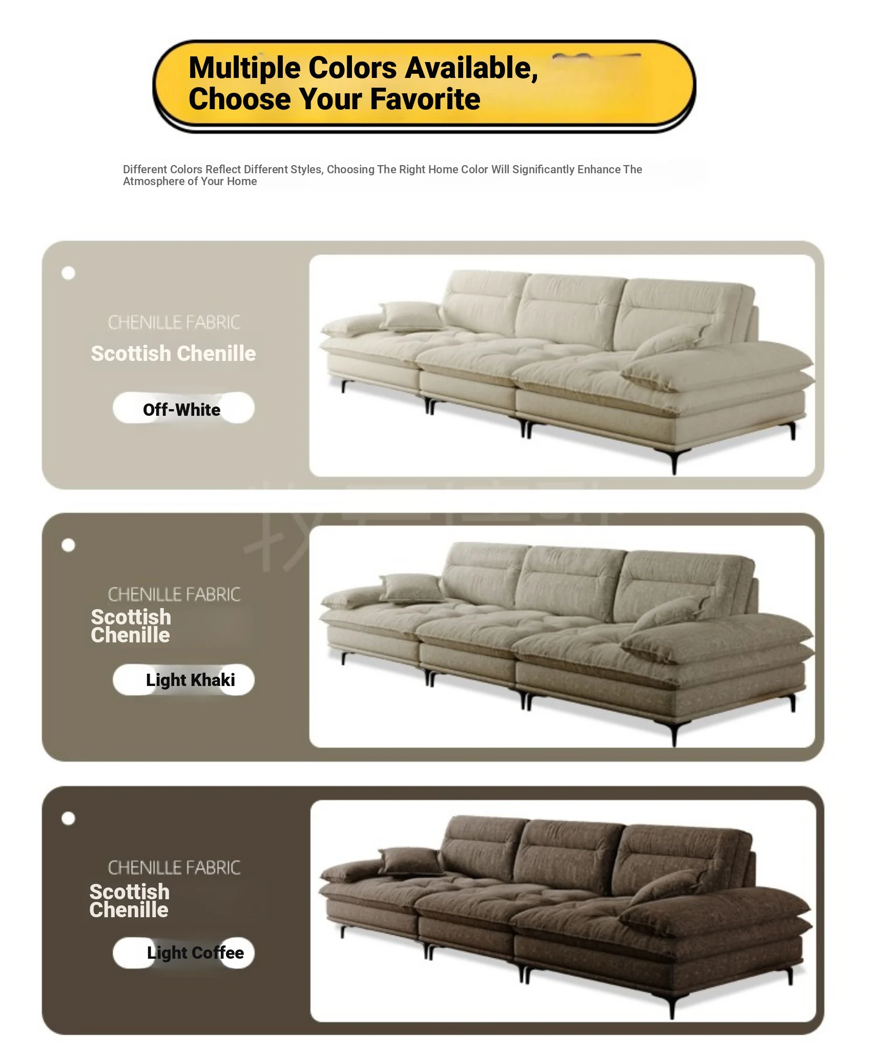 Italian Minimalist Napa Leather Down Sofa - Extra Wide & Deep Modern Chenille Straight Sofa for a Chic Living Room