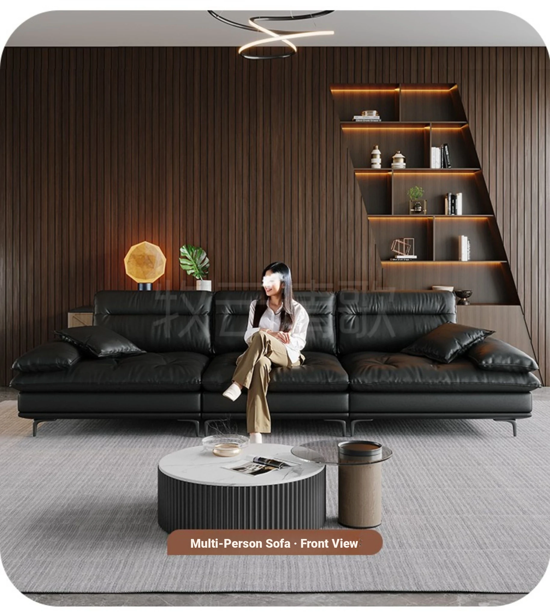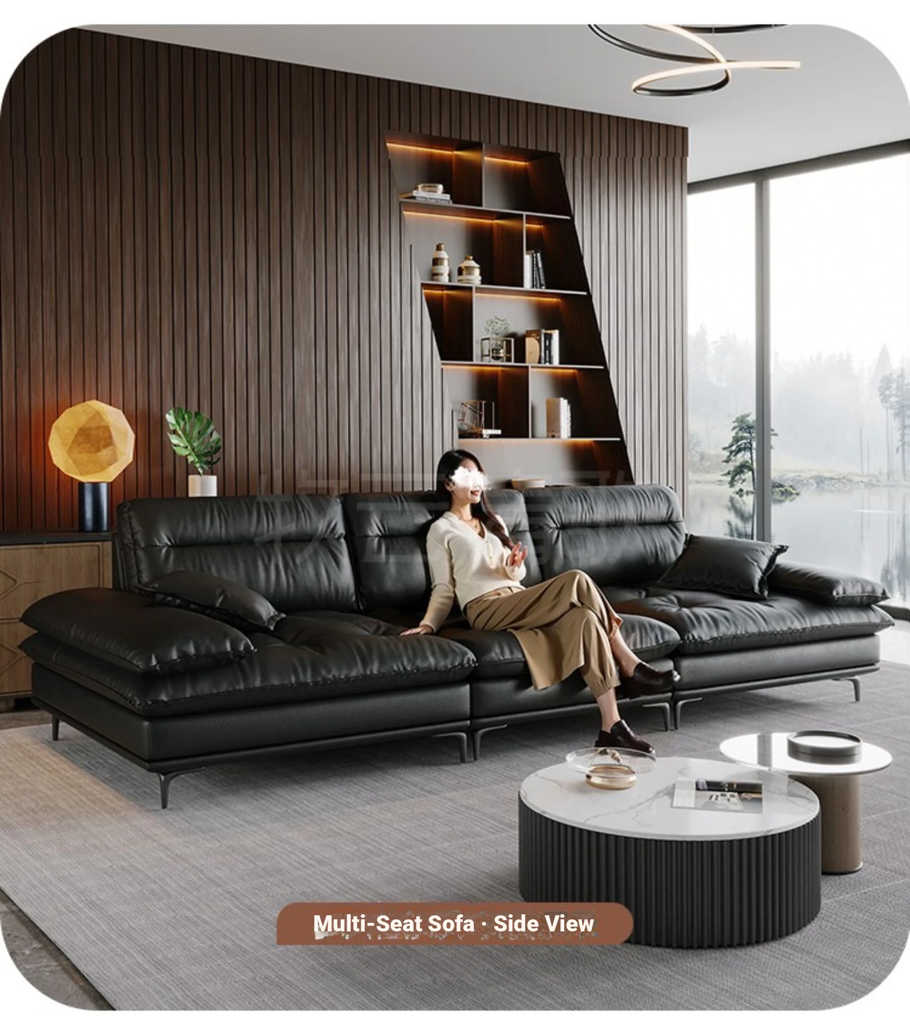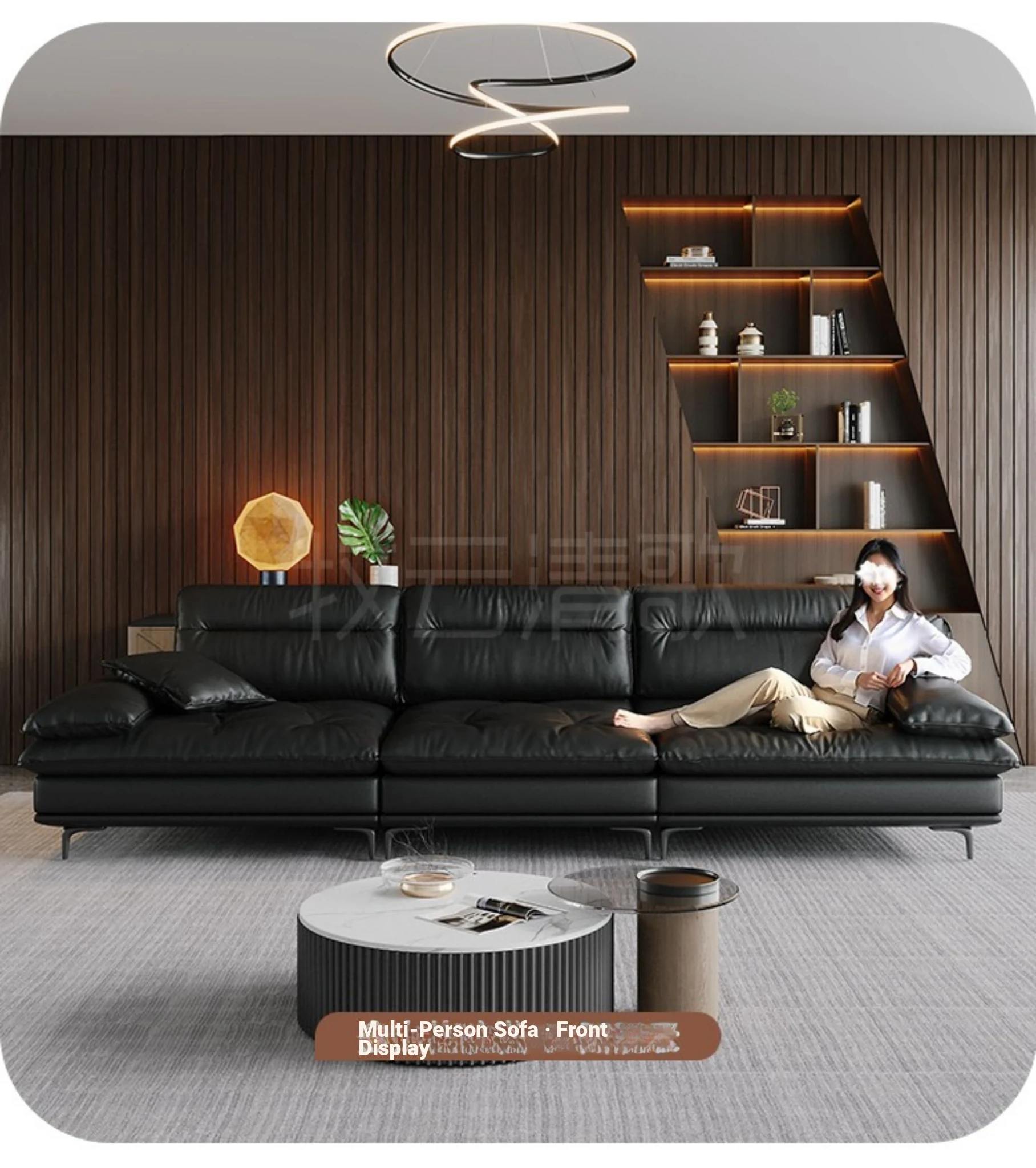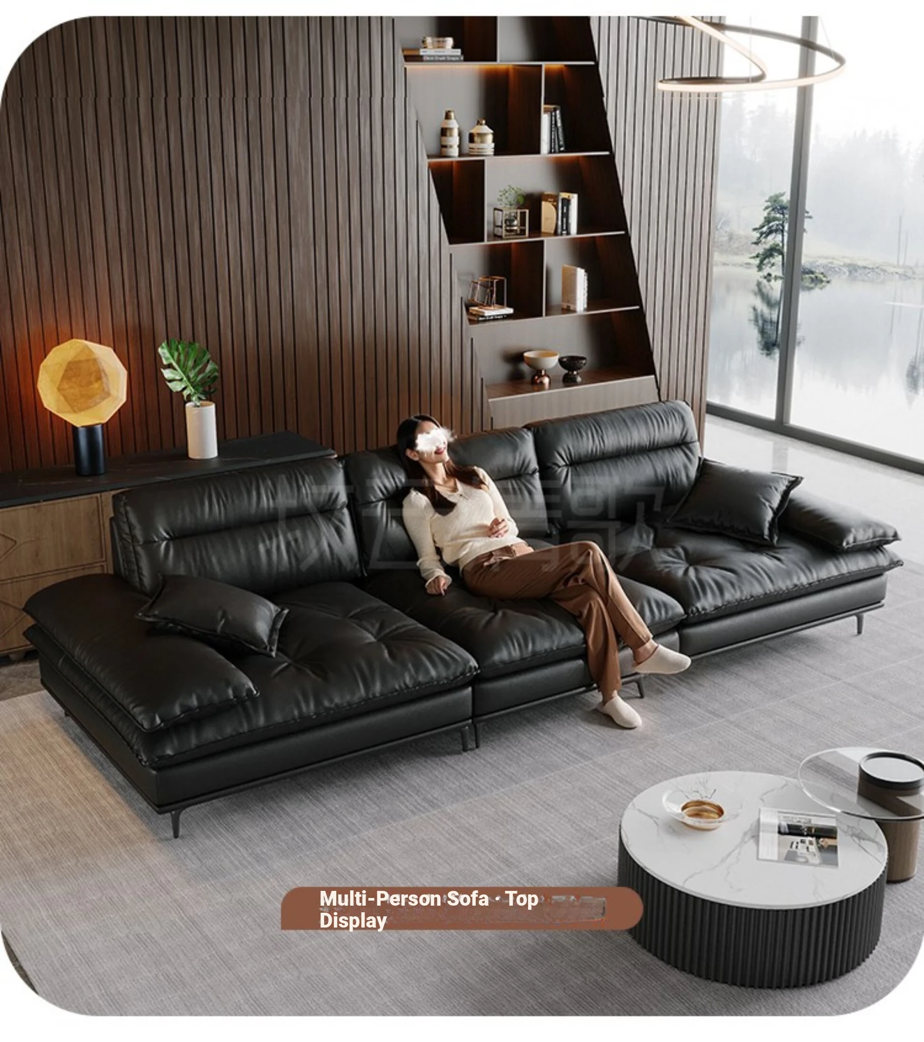 Italian Minimalist Napa Leather Down Sofa - Extra Wide & Deep Modern Chenille Straight Sofa for a Chic Living Room