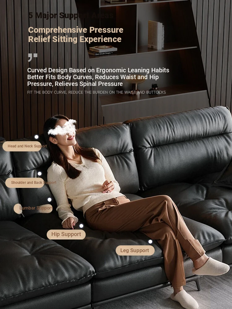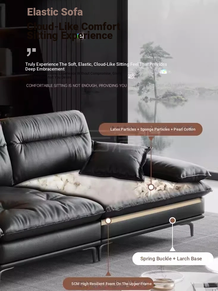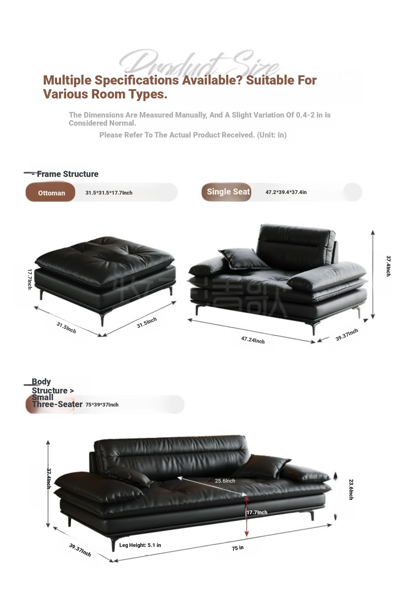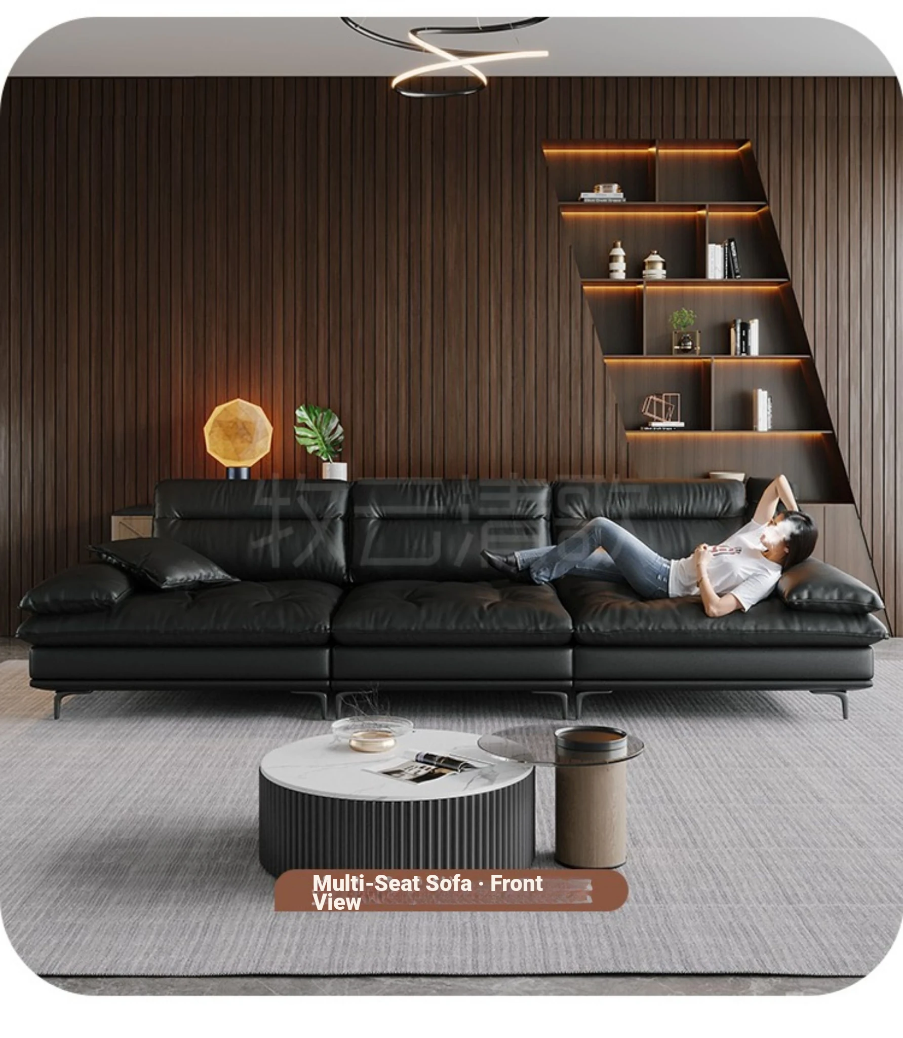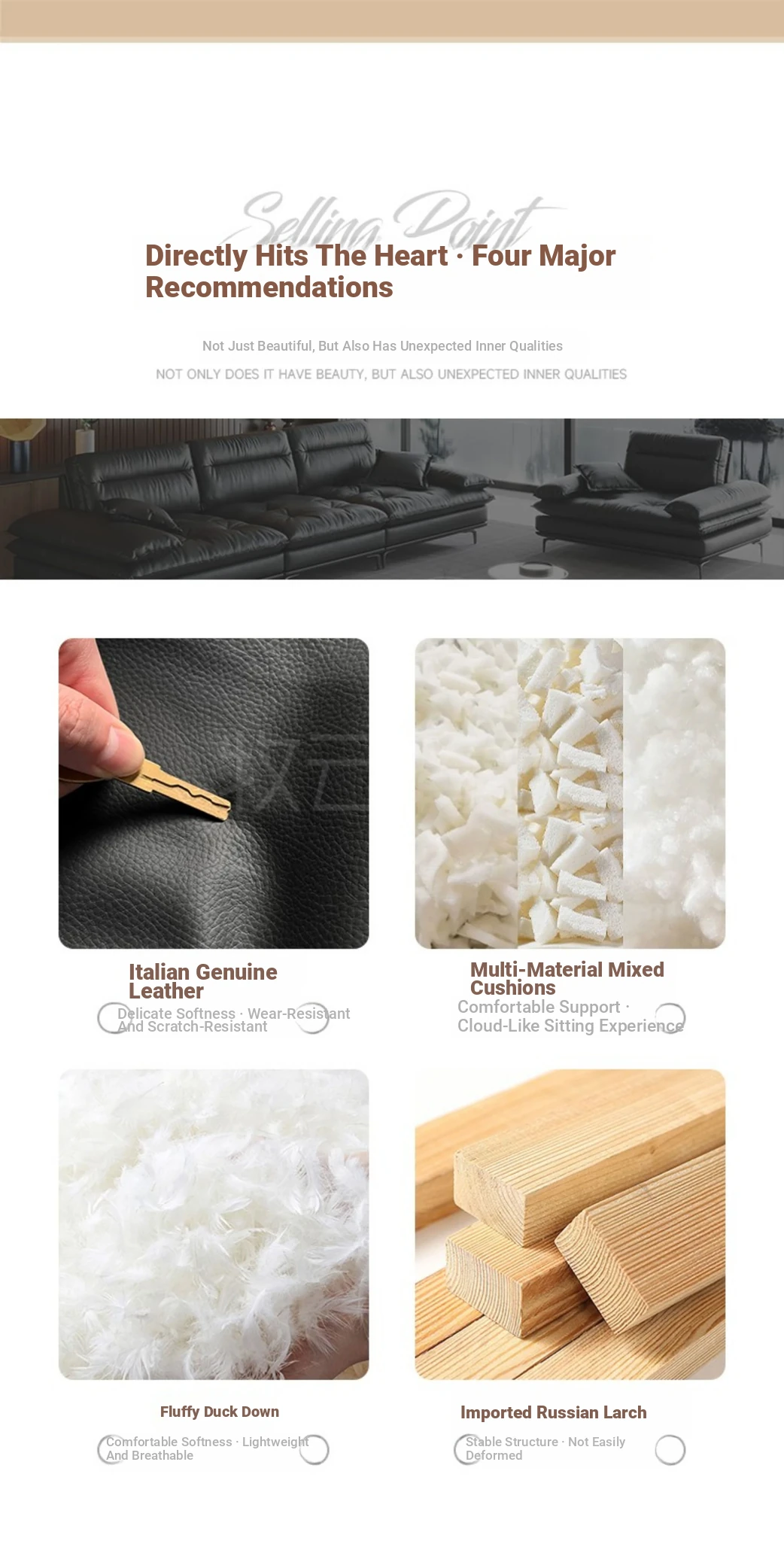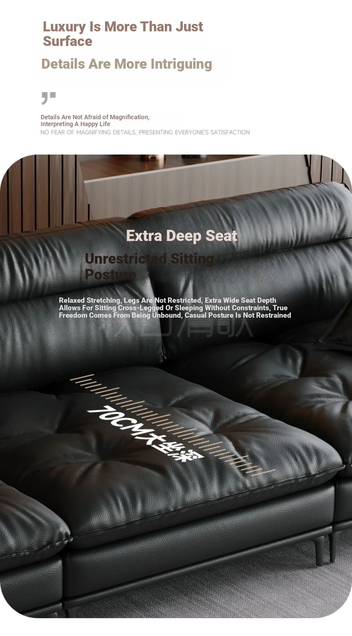 Italian Minimalist Napa Leather Down Sofa - Extra Wide & Deep Modern Chenille Straight Sofa for a Chic Living Room