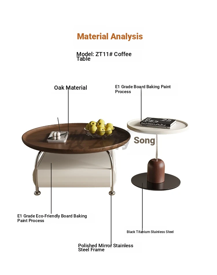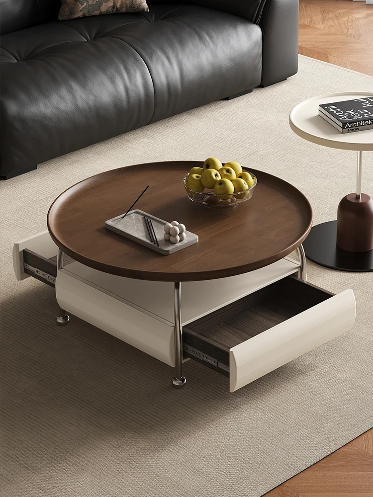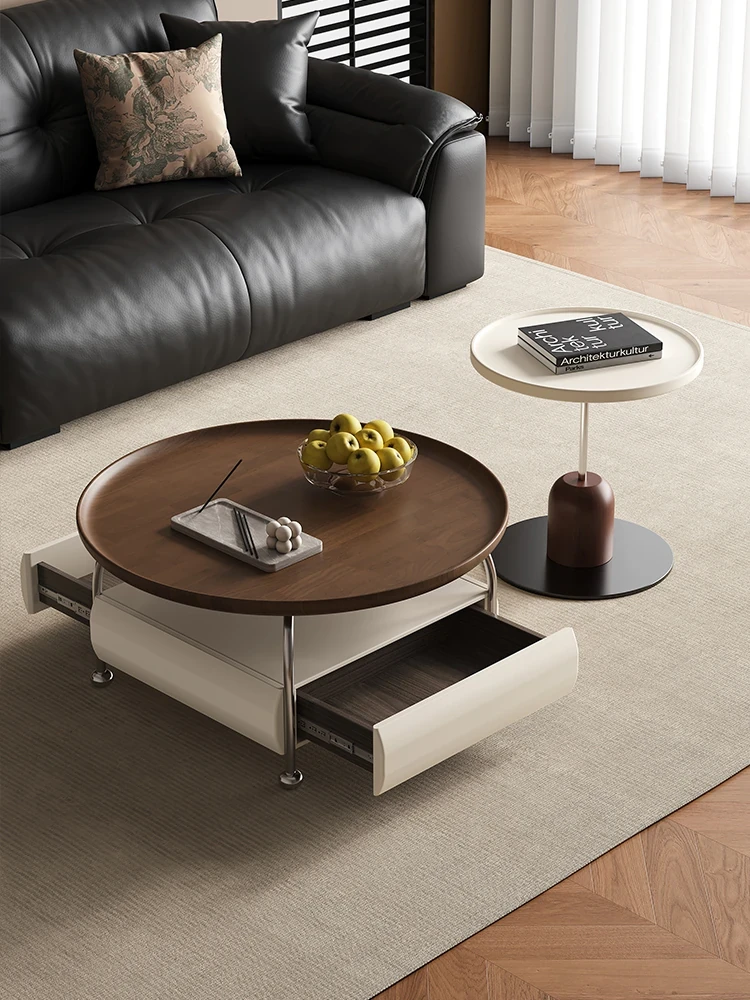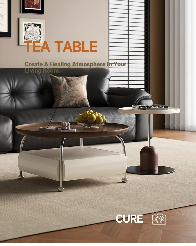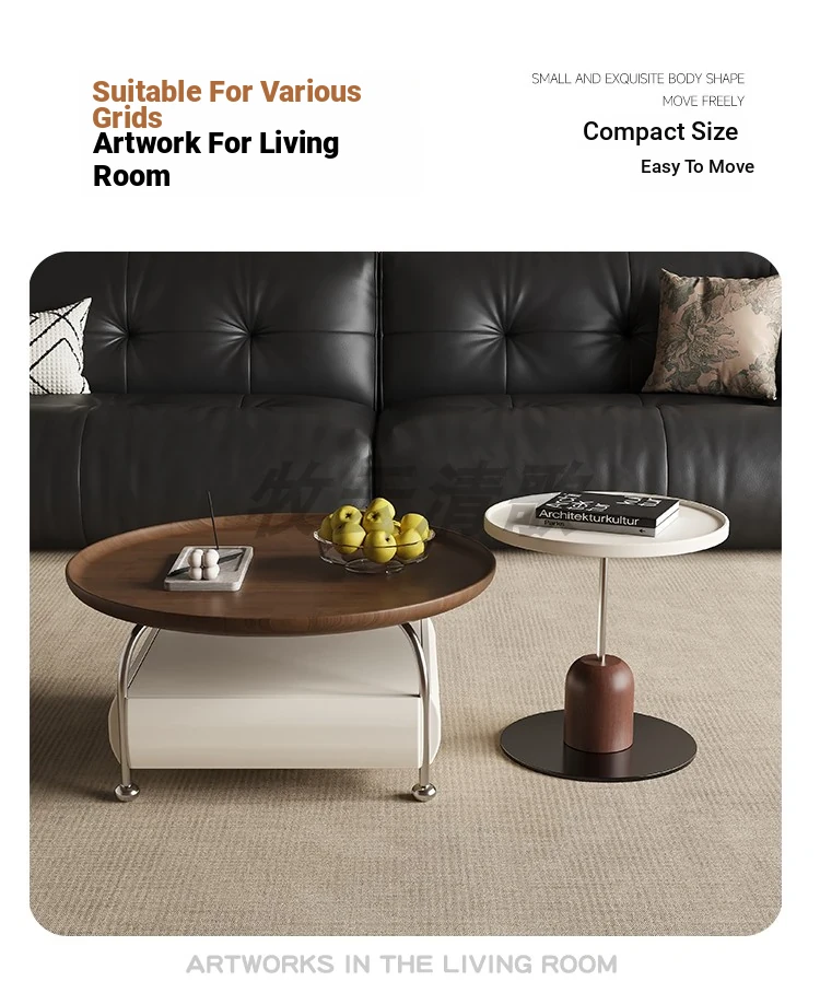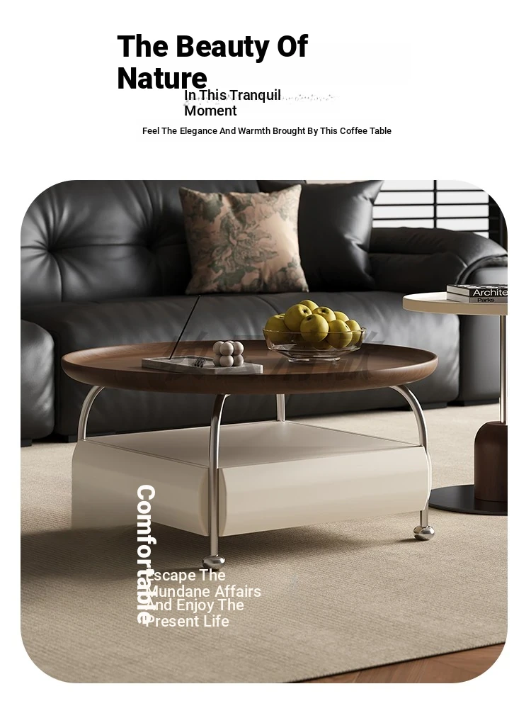 Italian Minimalist Oak Tray Coffee Table Set - Modern and Simple Design for Small Spaces, Featuring Round Solid Wood Storage Tea Tables. Perfect for Stylish Living Rooms!