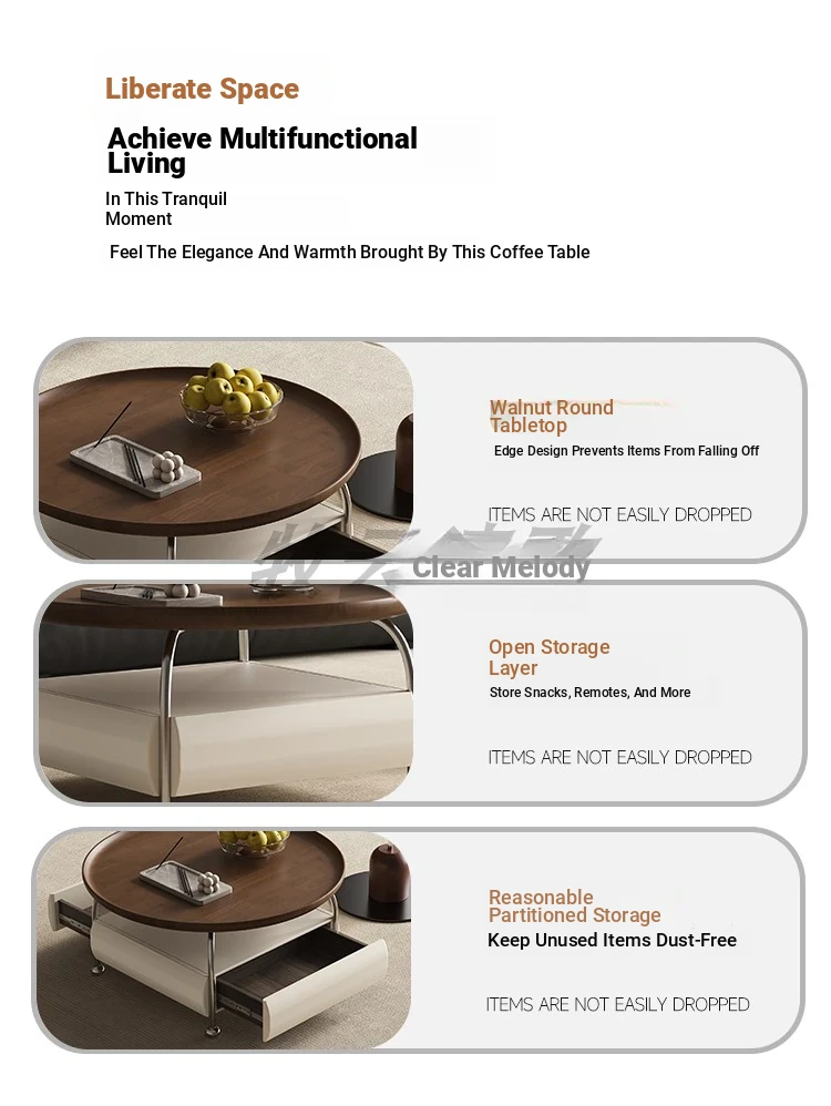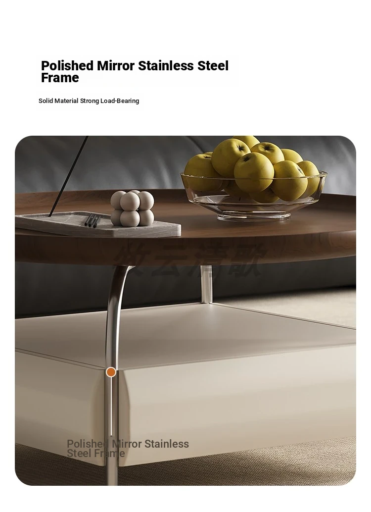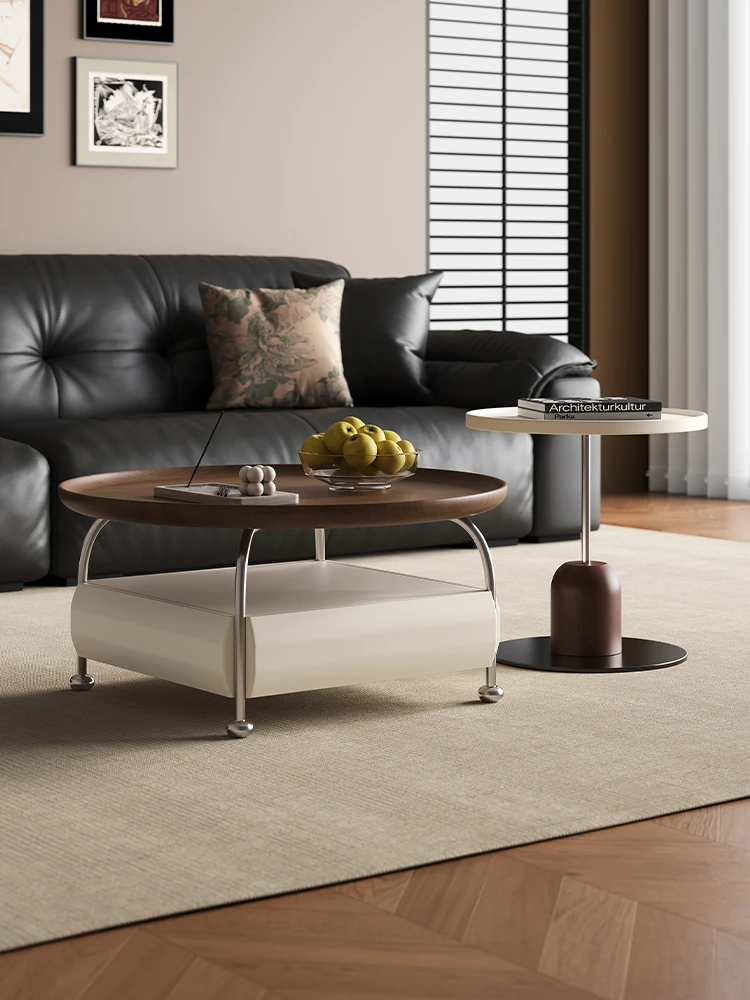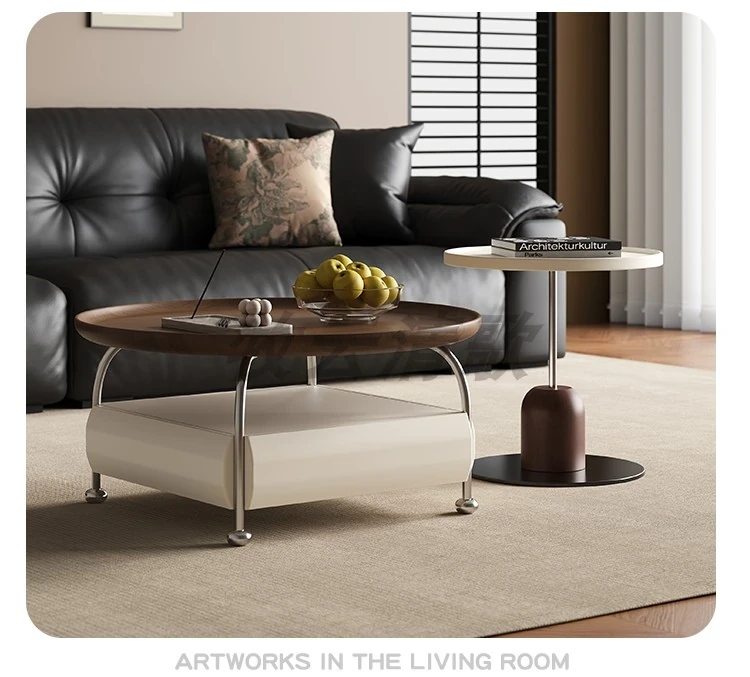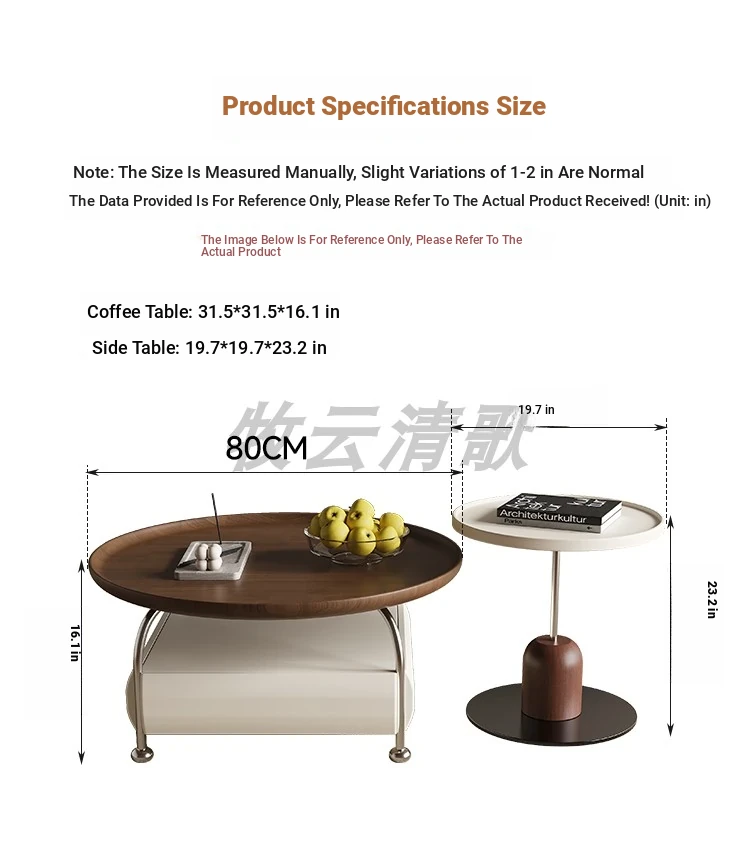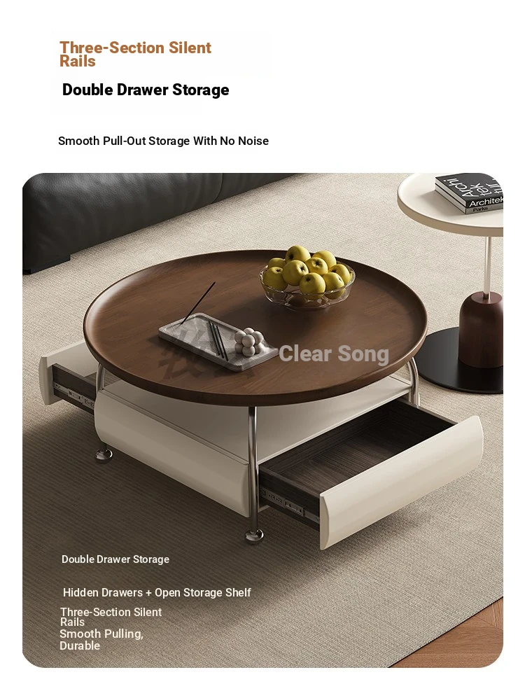 Italian Minimalist Oak Tray Coffee Table Set - Modern and Simple Design for Small Spaces, Featuring Round Solid Wood Storage Tea Tables. Perfect for Stylish Living Rooms!
