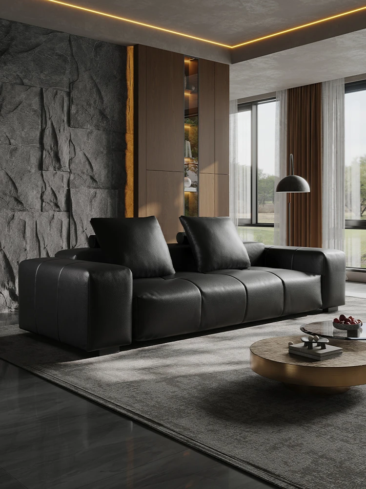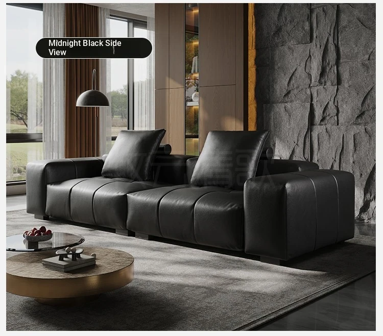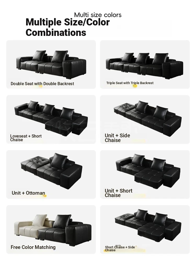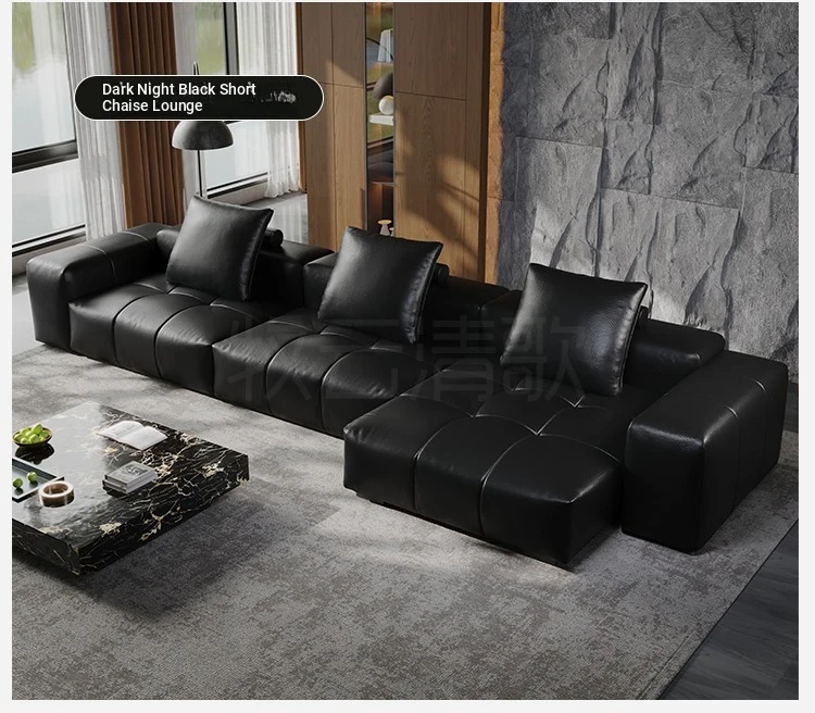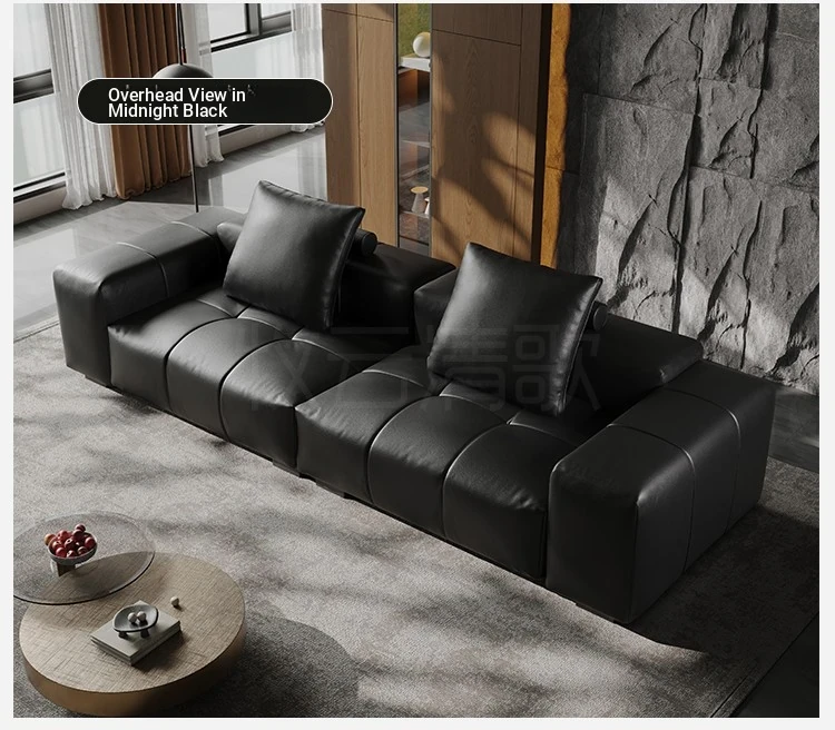 Italian Minimalist Saba Pixel Genuine Leather Sofa - Modular Black Tofu Block Sofa for Small Spaces - Perfect for Your Living Room