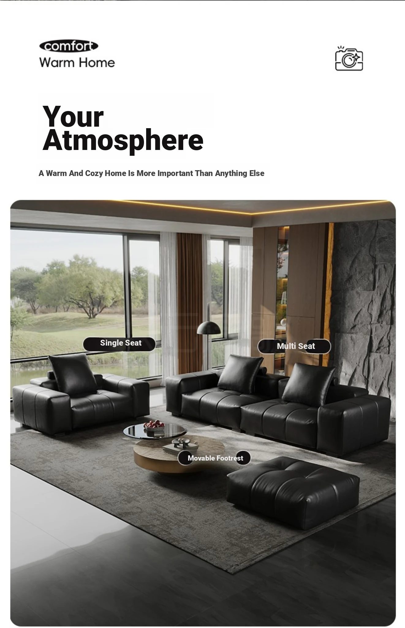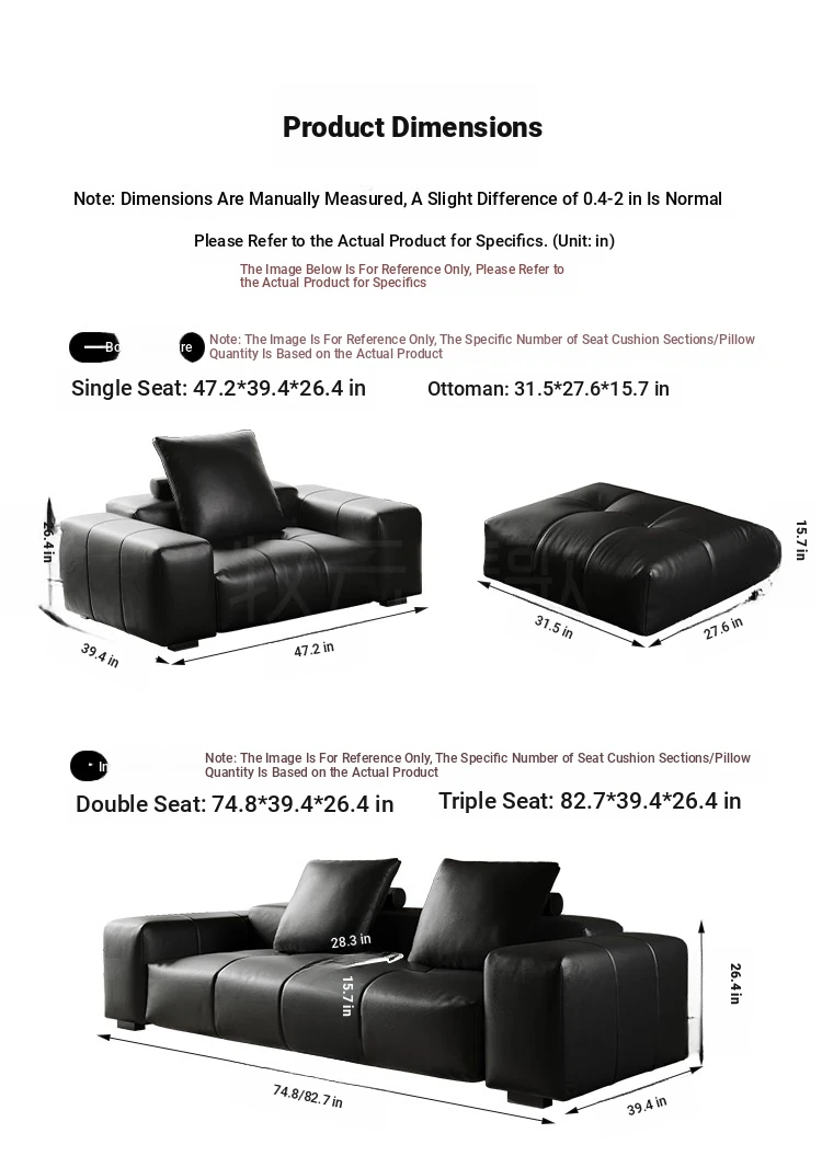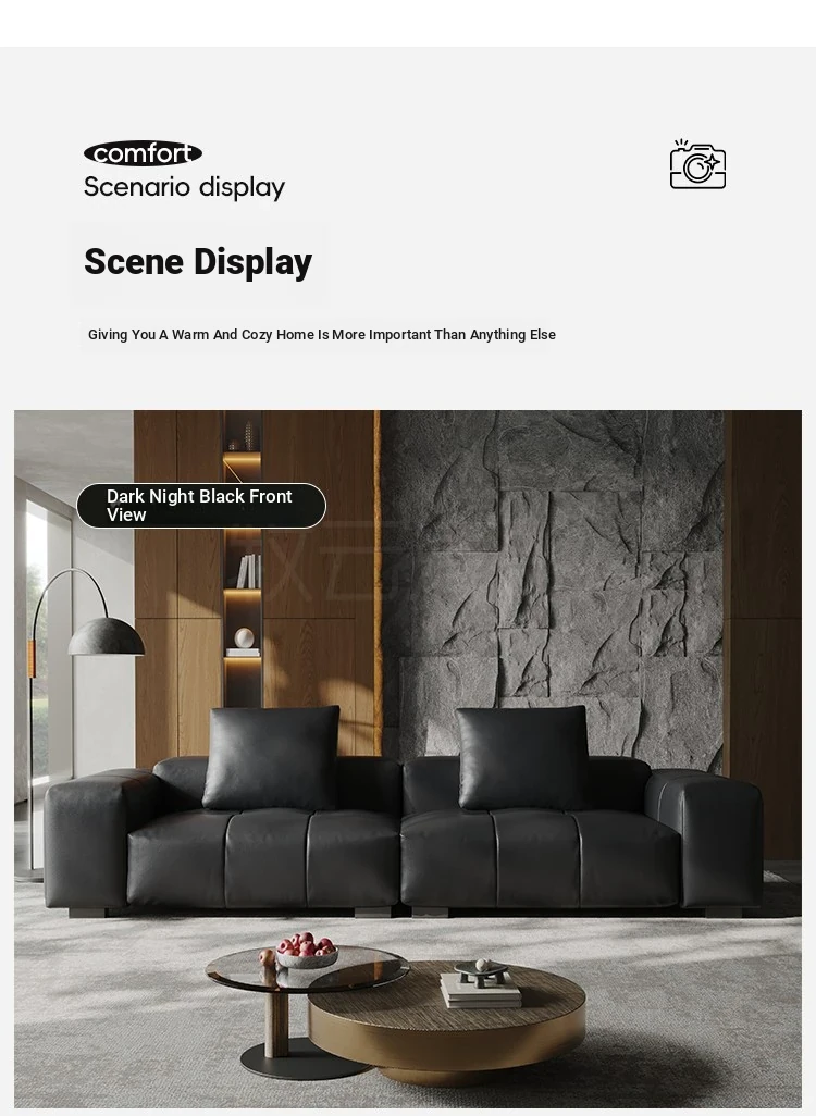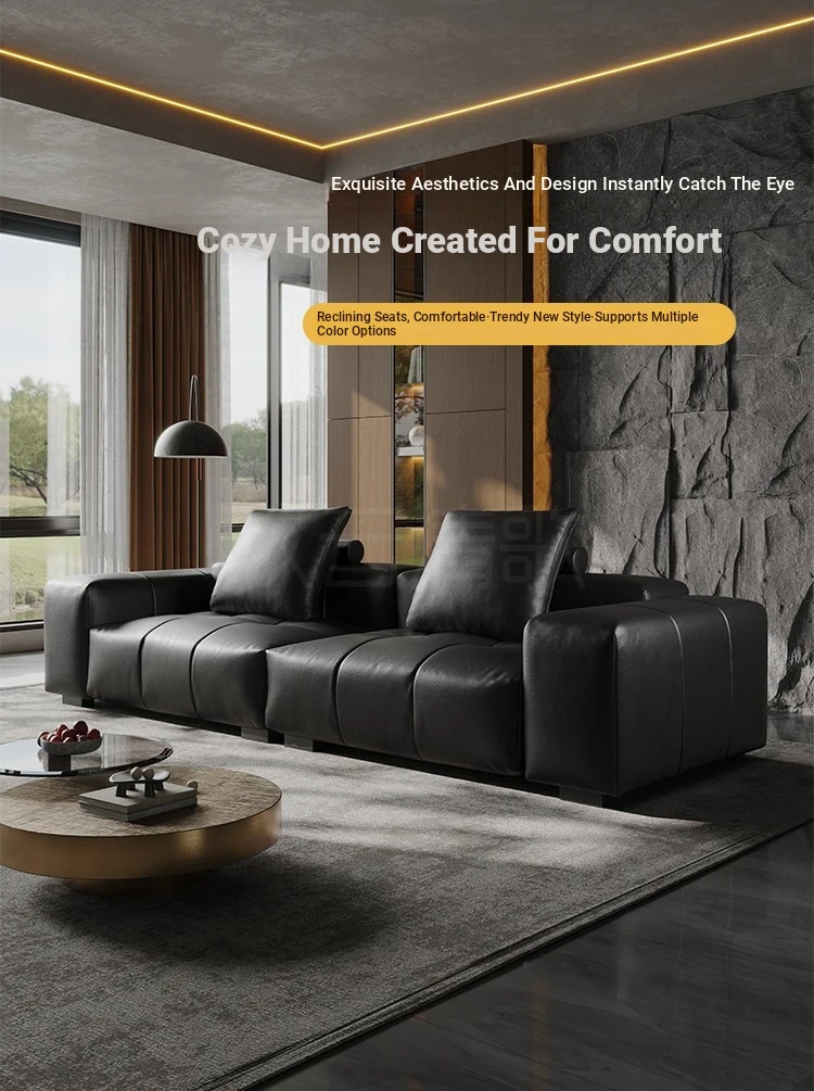 Italian Minimalist Saba Pixel Genuine Leather Sofa - Modular Black Tofu Block Sofa for Small Spaces - Perfect for Your Living Room