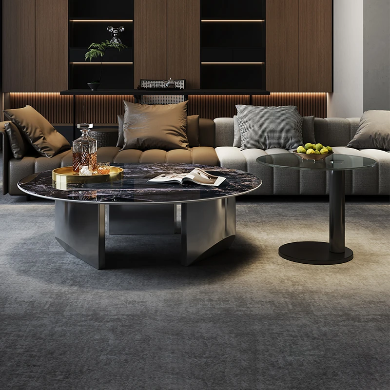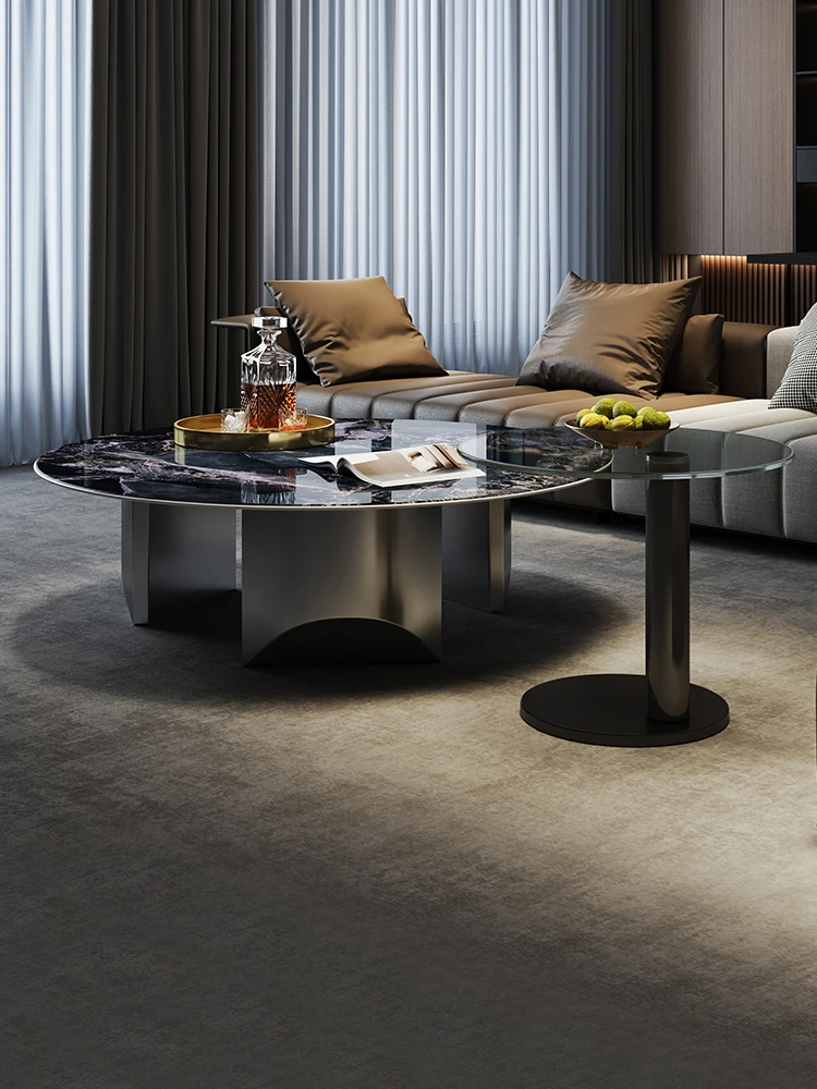 Italian Minimalist Stainless Steel Side Table - Modern Simple Round Coffee Table Set for Small Spaces, Perfect for a Touch of Luxury in Your Living Room