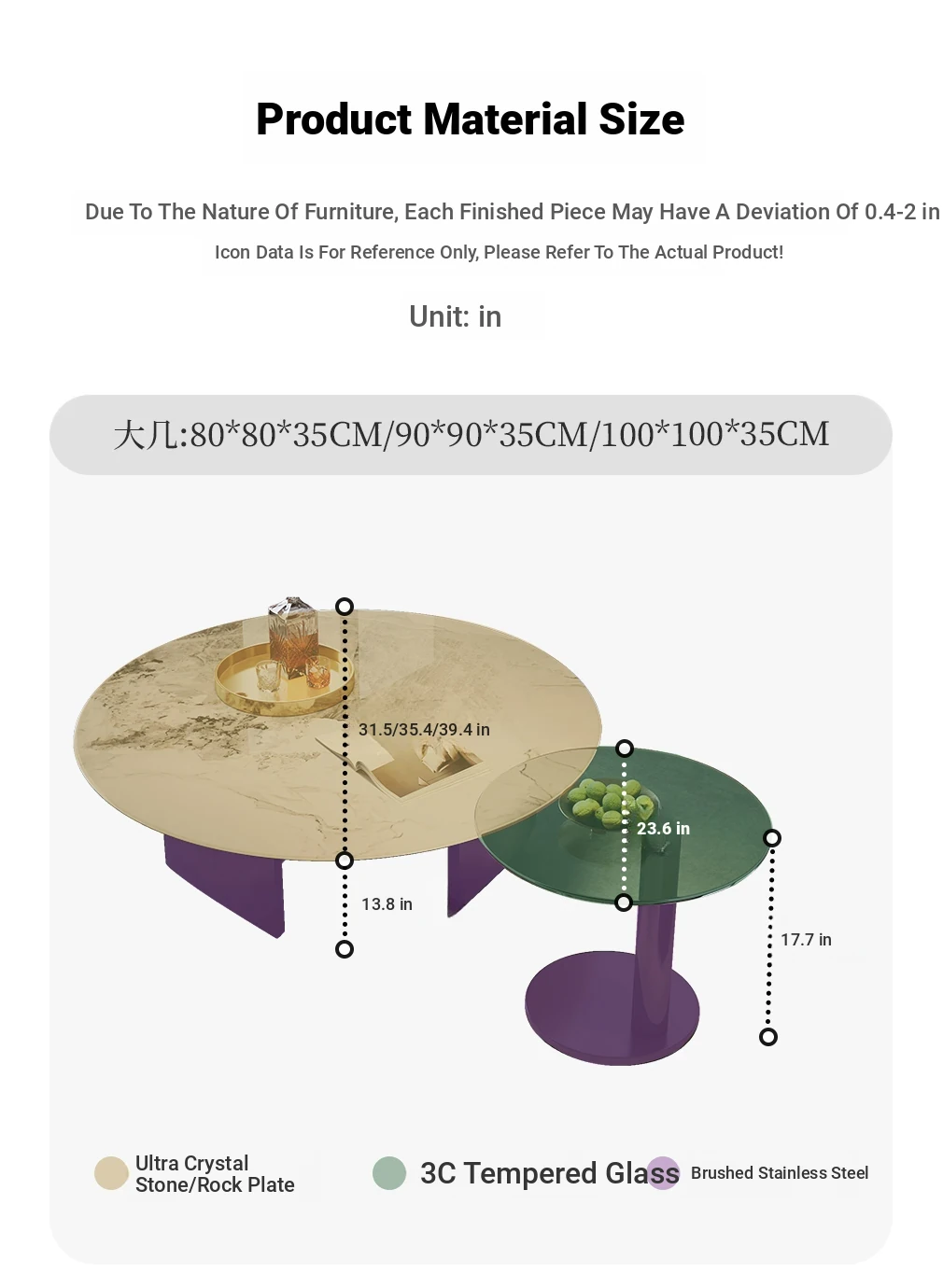 [35.43in rock plate round tea table + side several combinations]]
