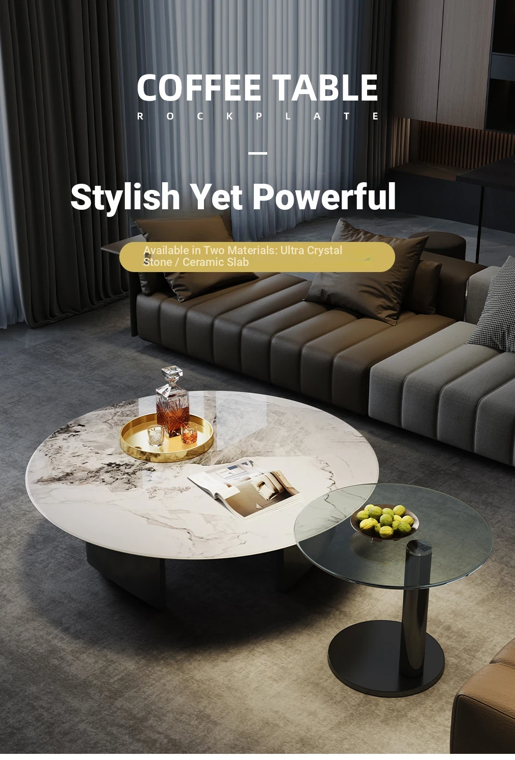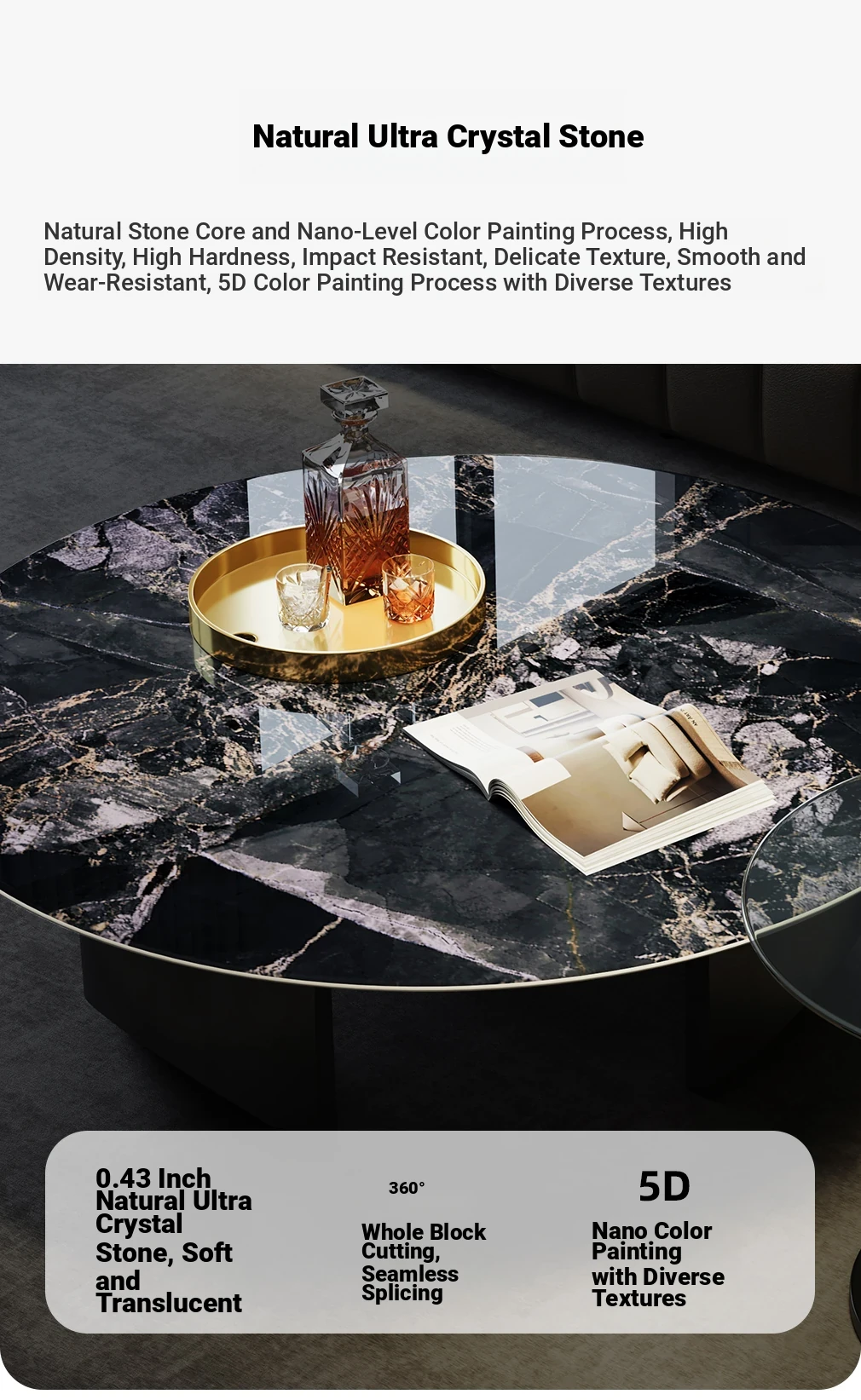 [3.94in Super crystal stone round tea table + side combination]]