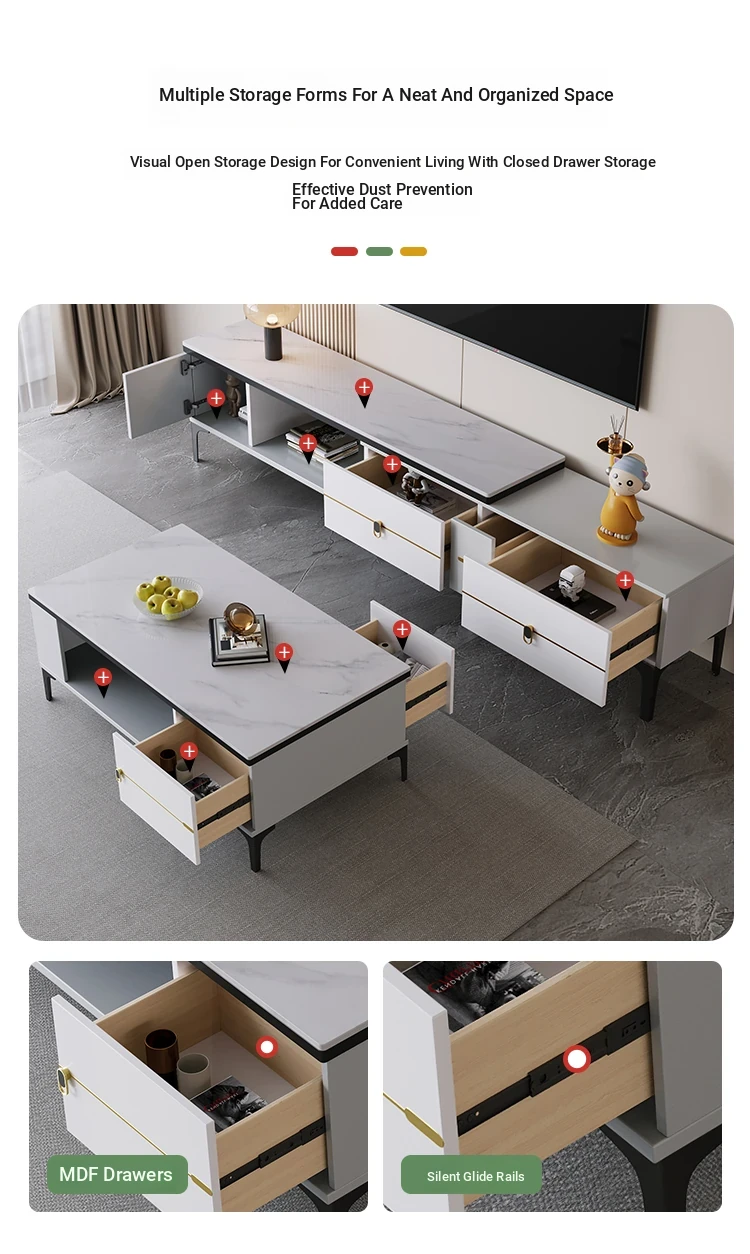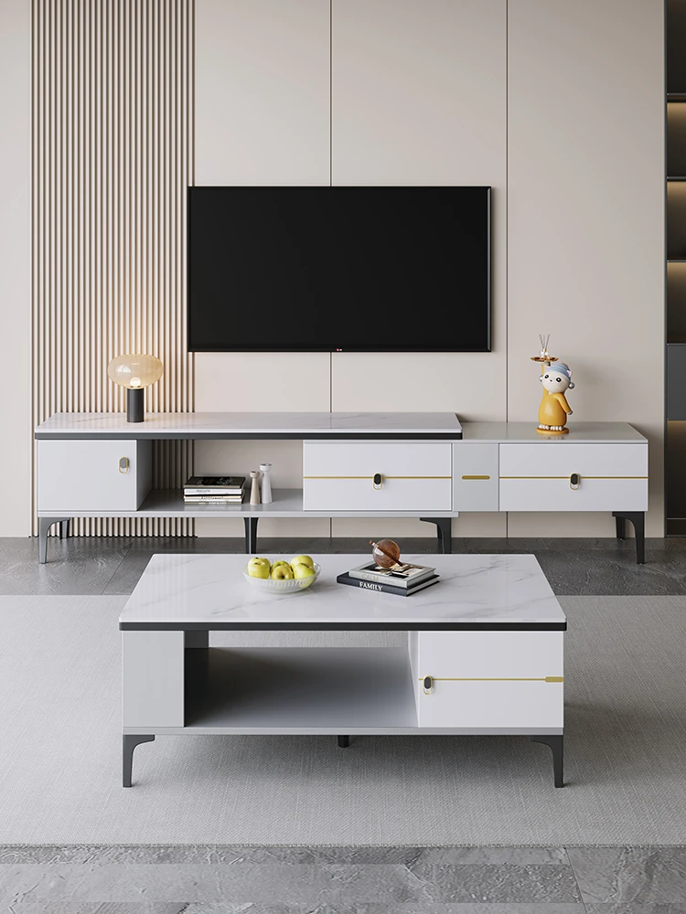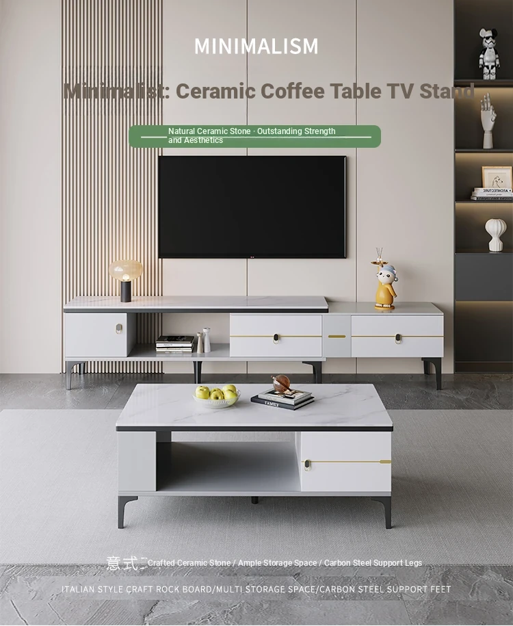 Italian Minimalist Style Rock Plate Coffee Table and TV Cabinet Set - Elegant Multi-Functional Storage Square Tea Table for Living Room