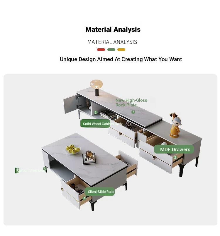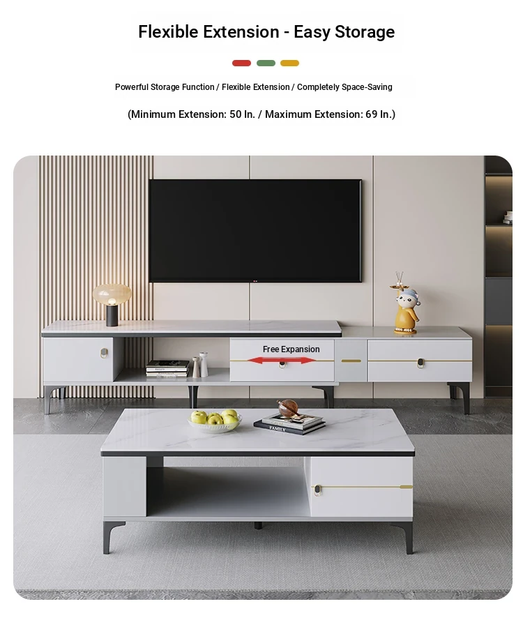 47.24 in Rock Plate Tea Table + Telescopic TV Cabinet