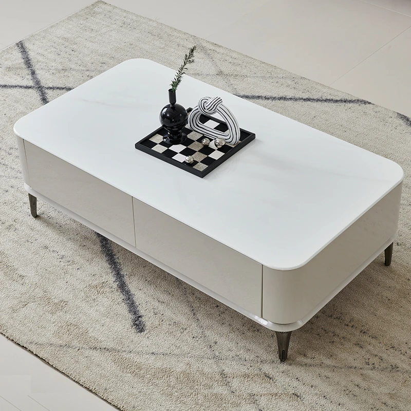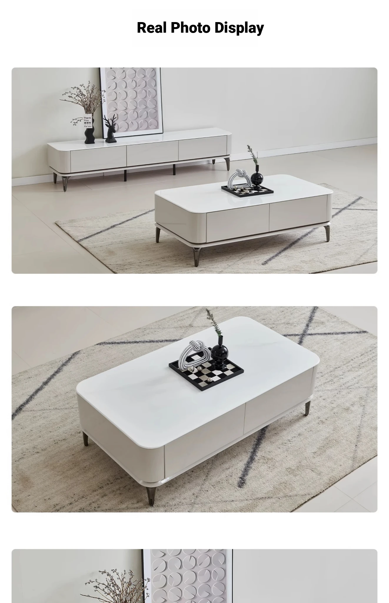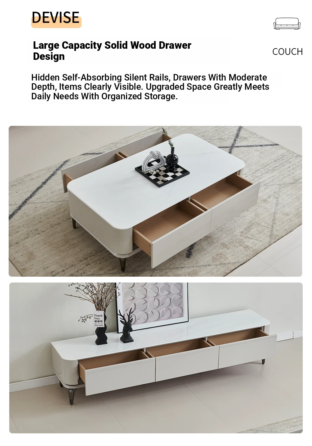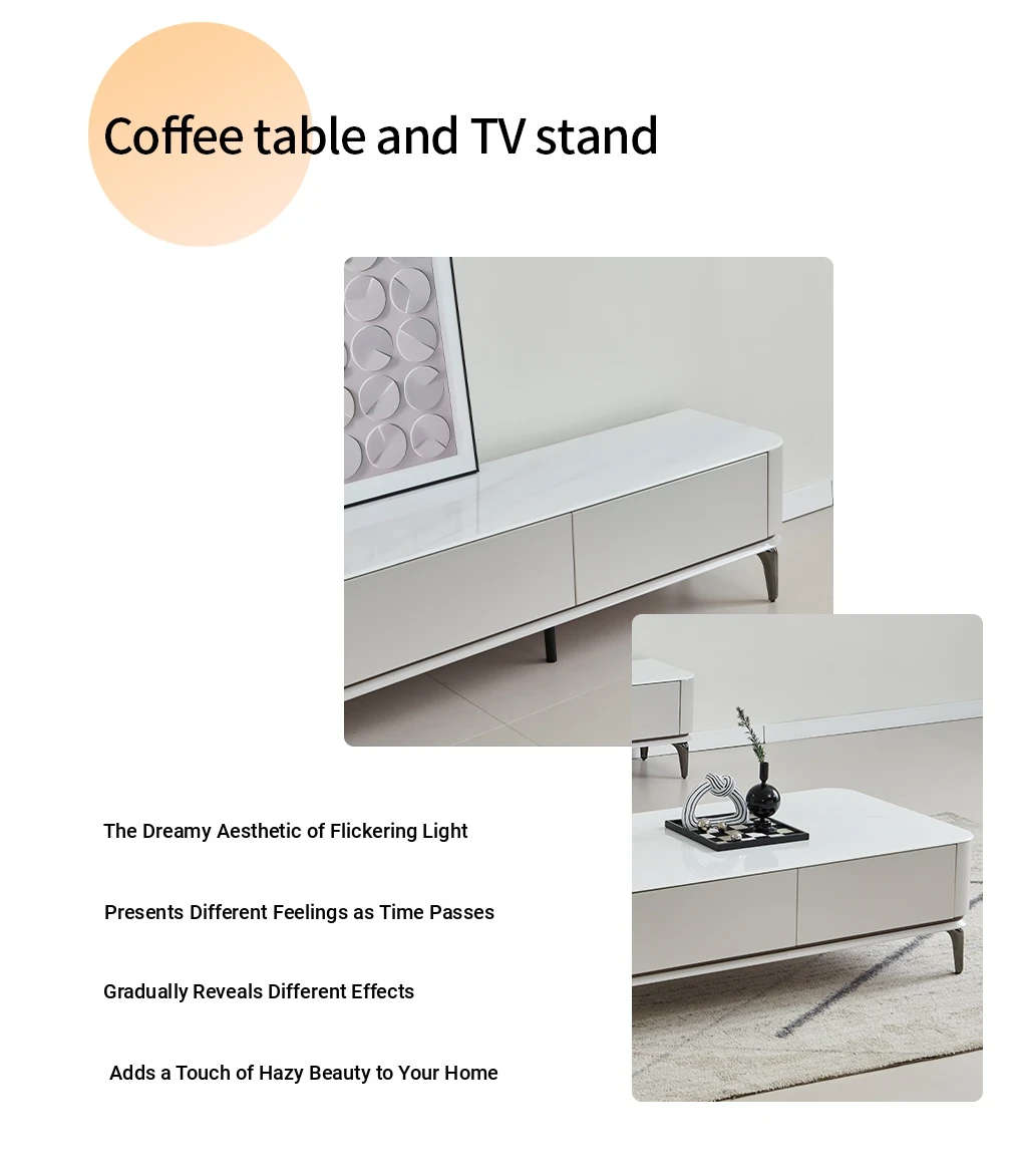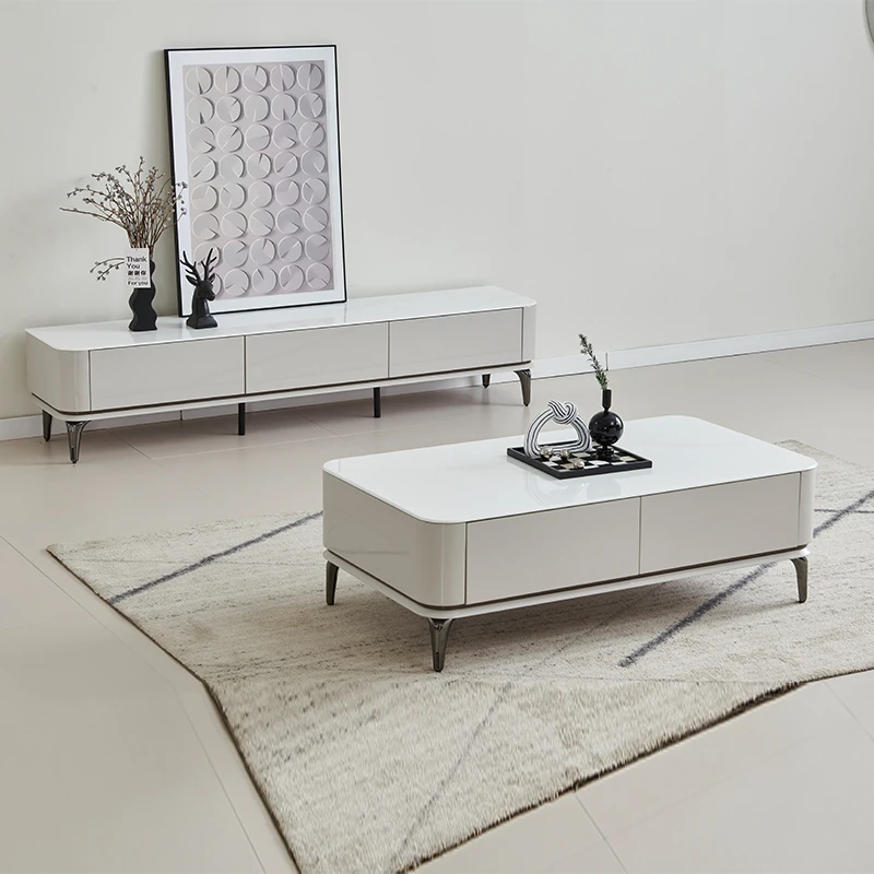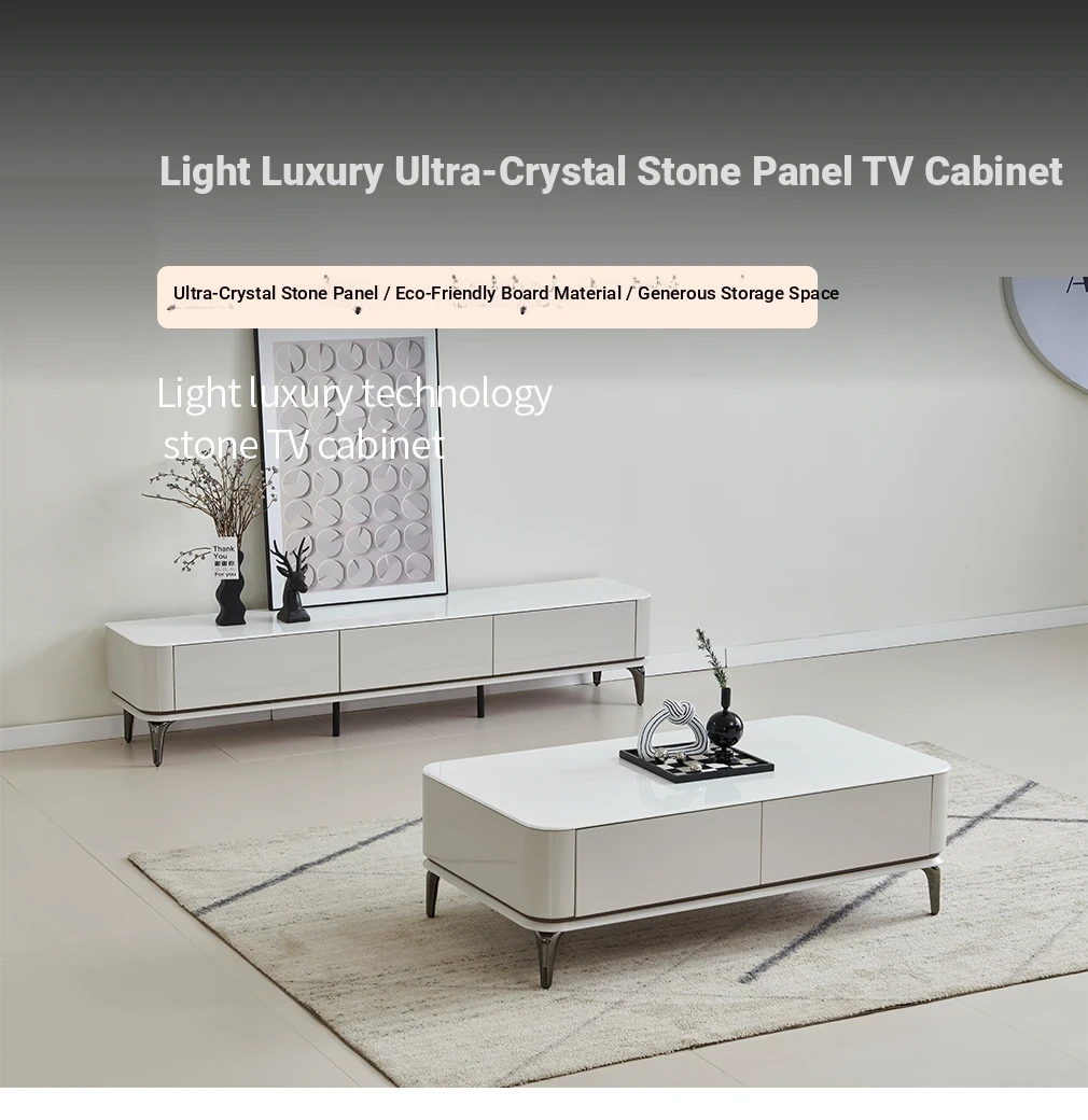 Italian Minimalist Ultra-Compact Stone Coffee Table & TV Cabinet Set - Stylish Luxury for Small Living Rooms, Featuring Quiet Self-Absorption and Multi-Functional Storage Solutions.