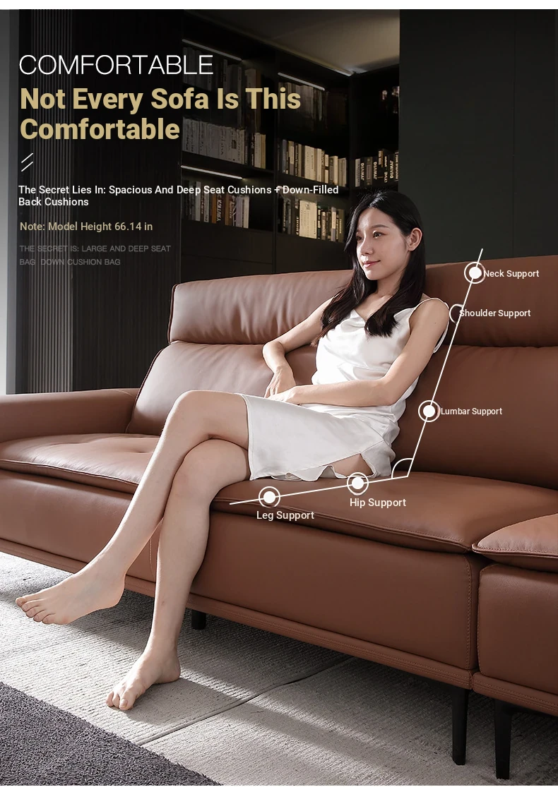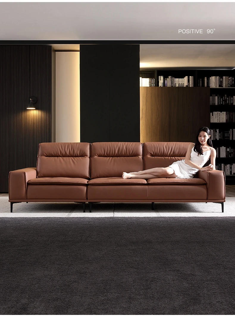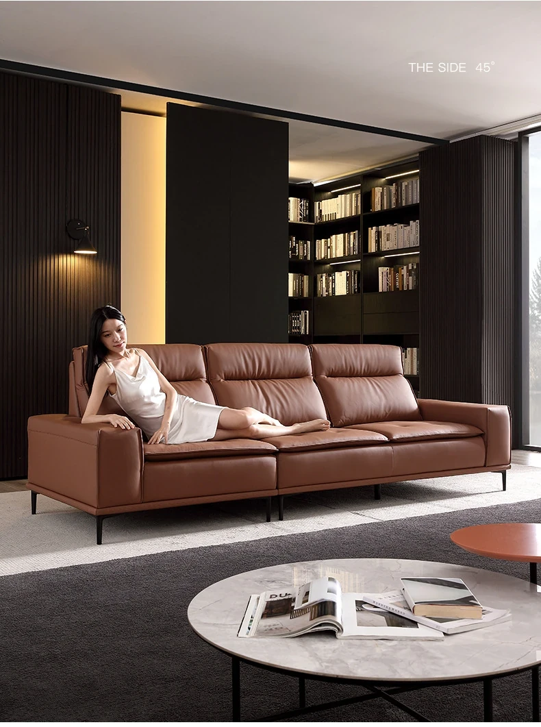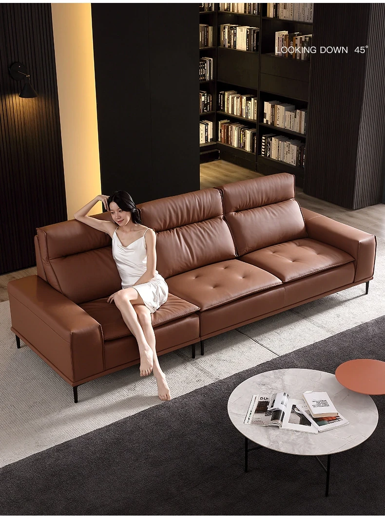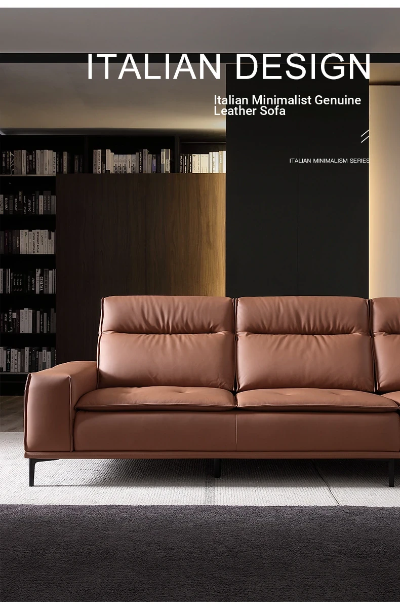 Italian-style Genuine Leather Sofa for Small Apartments - A2219#-2 Plush Latex Lazy Couch with Down Filling, Perfect for Cozy Living Rooms