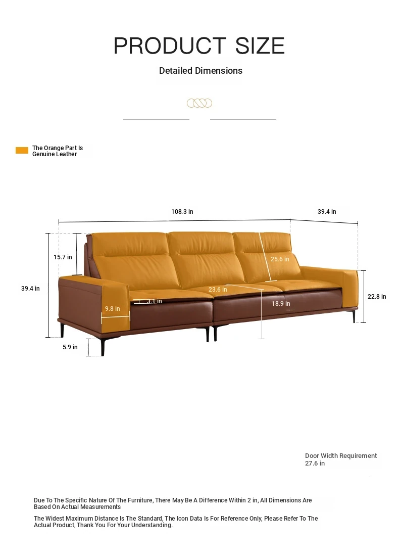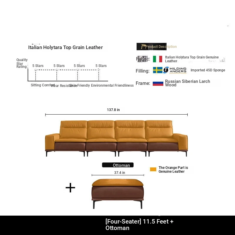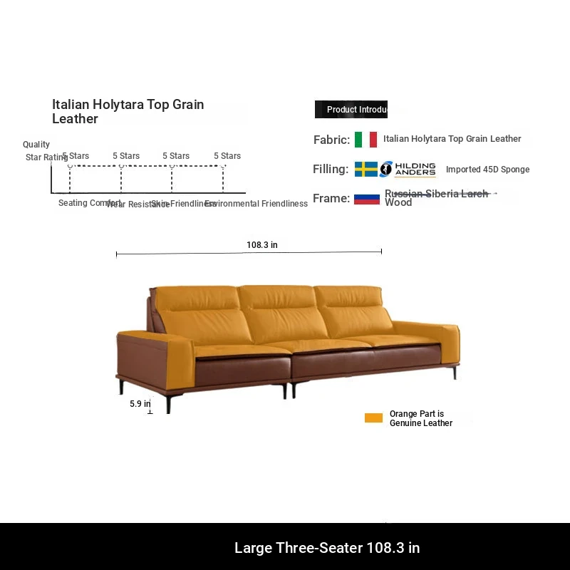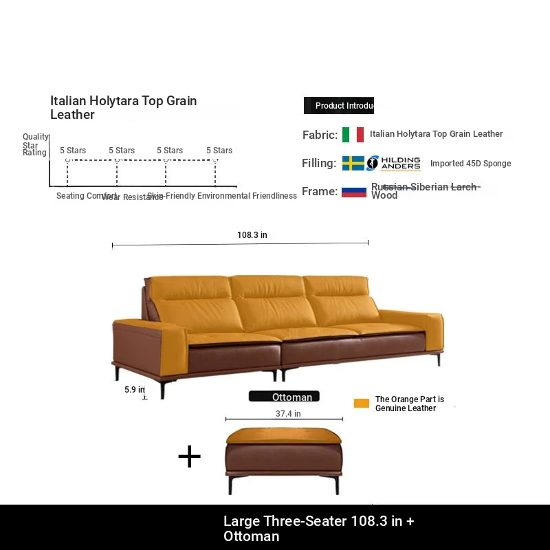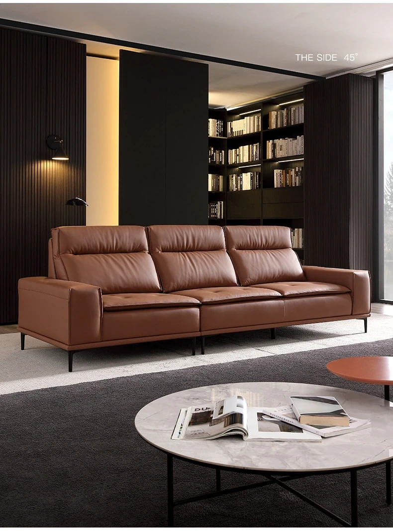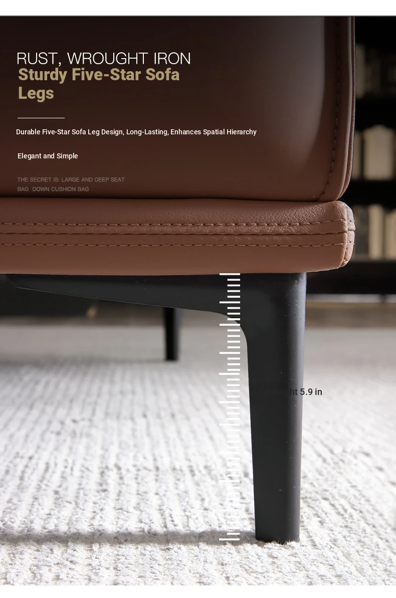 Italian-style Genuine Leather Sofa for Small Apartments - A2219#-2 Plush Latex Lazy Couch with Down Filling, Perfect for Cozy Living Rooms