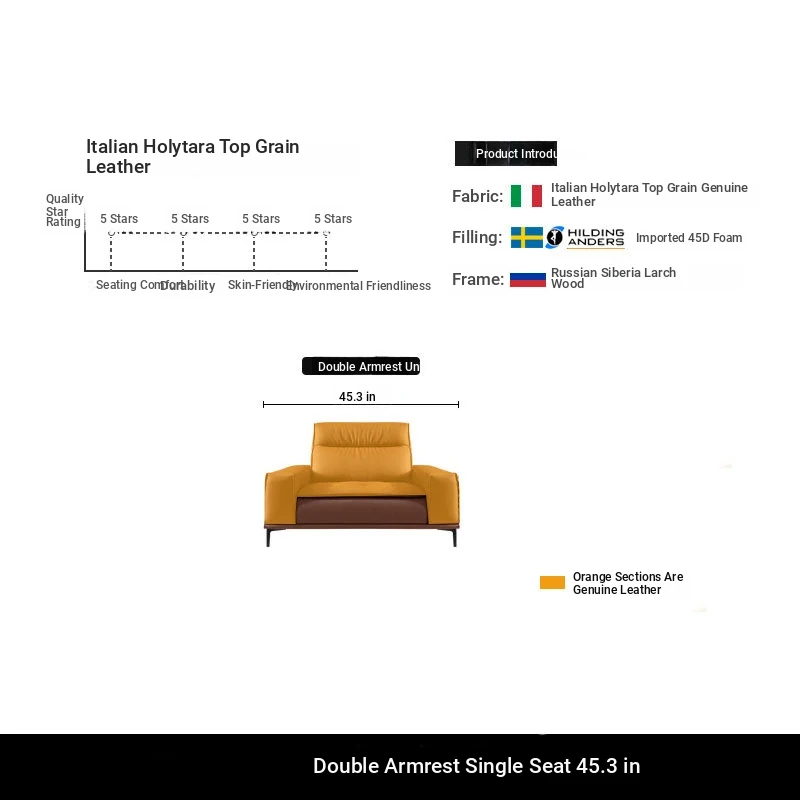 [Double armrest single seat] 45.28 ins