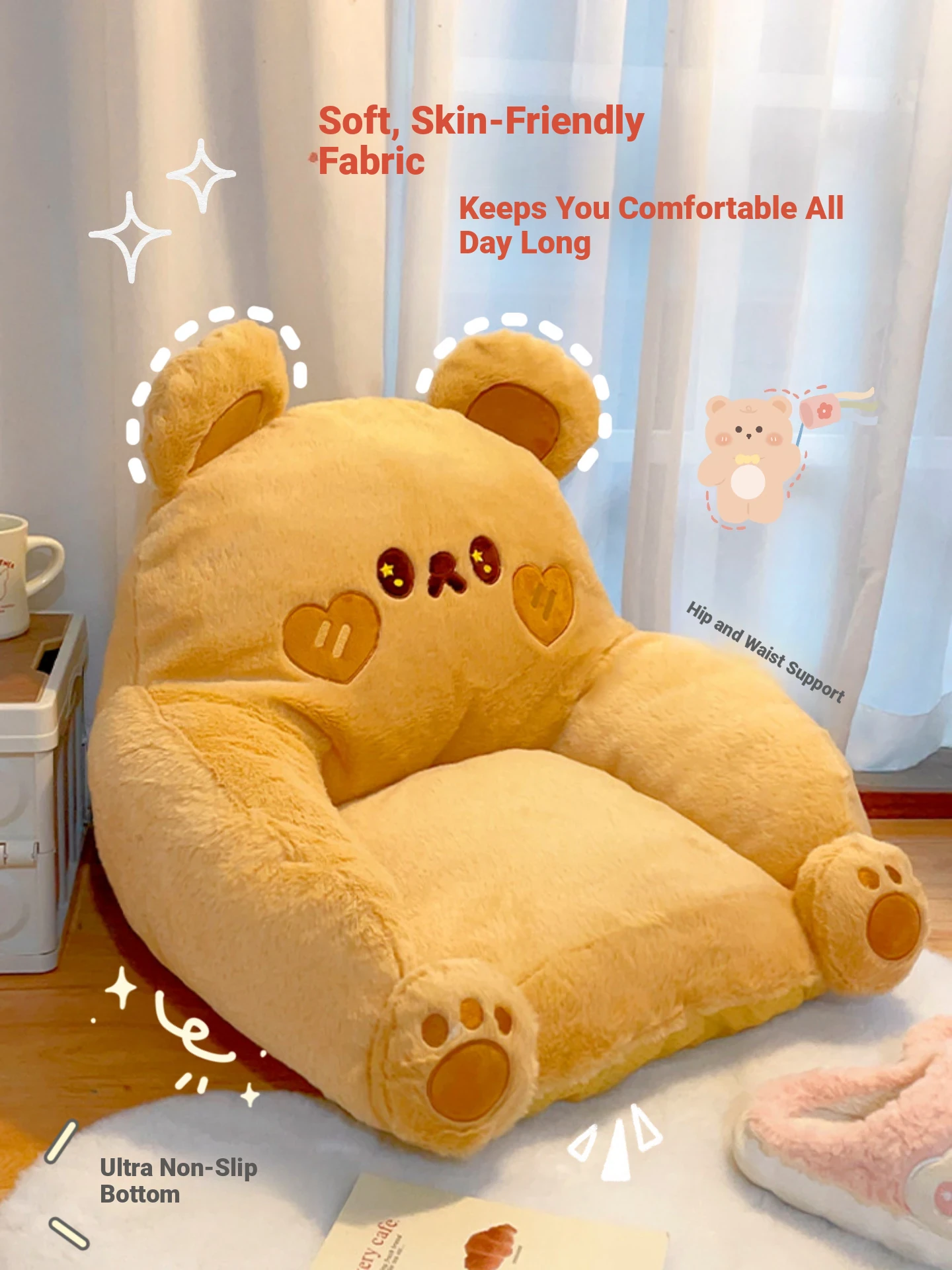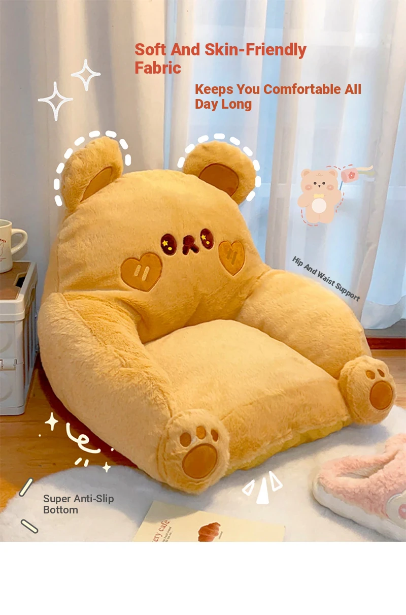 Lazy Sofa Ottoman for Bedroom - Tatami Style Floor Cushion with Cartoon Backrest for Kids, Perfect for Reading by the Window!