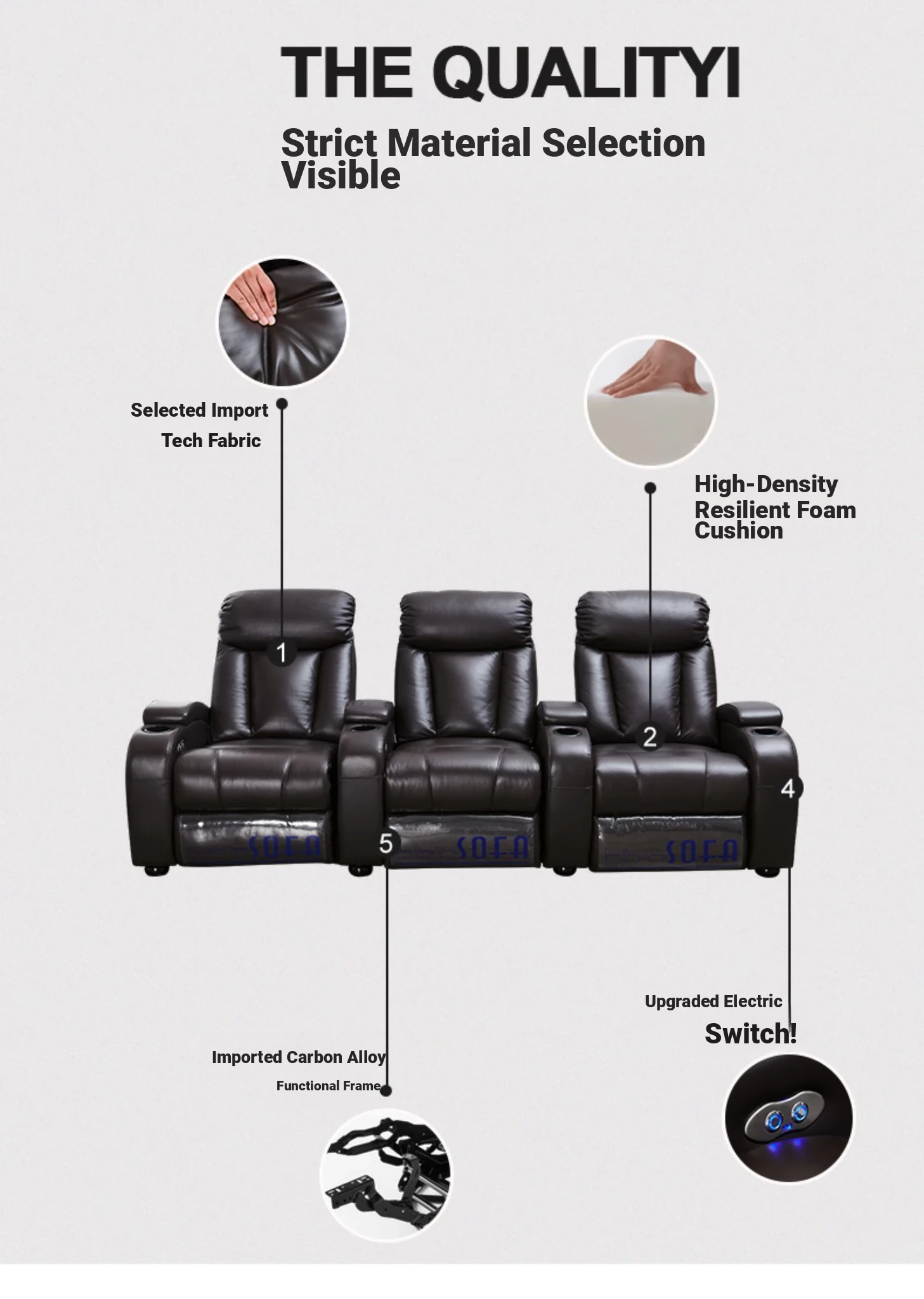 Luxury Home Theater Sofa with Electric Recline - Space Capsule Design, High-Tech Fabric, Perfect for Living Room and Media Room Combinations