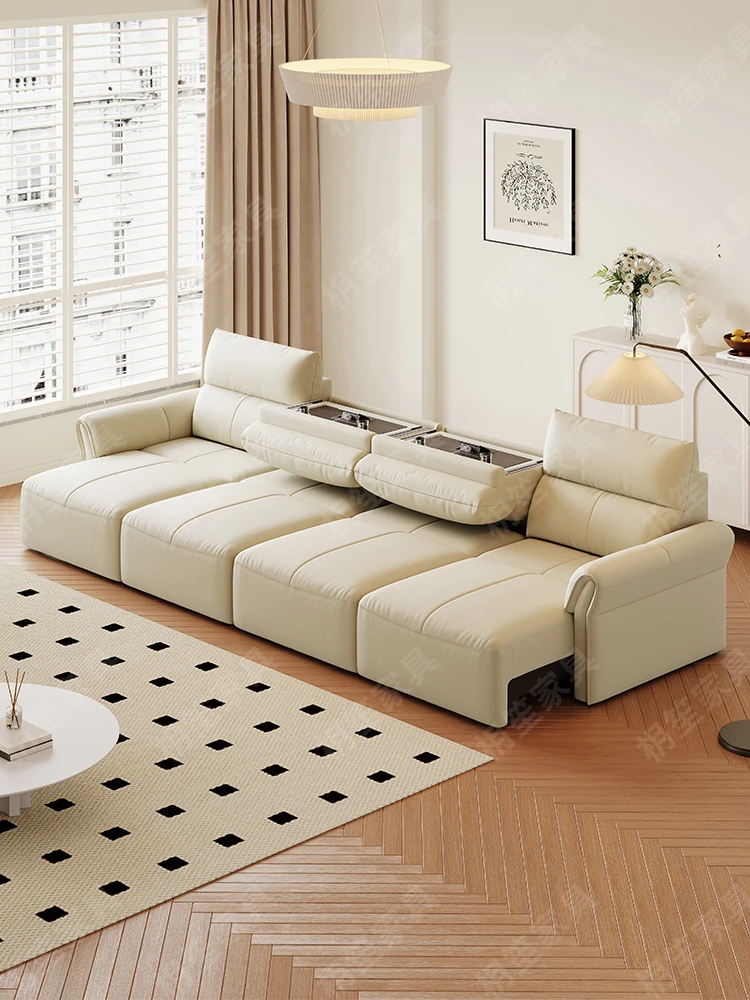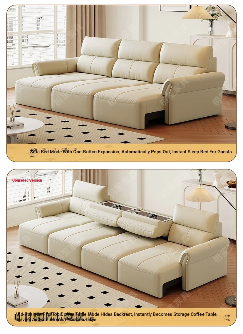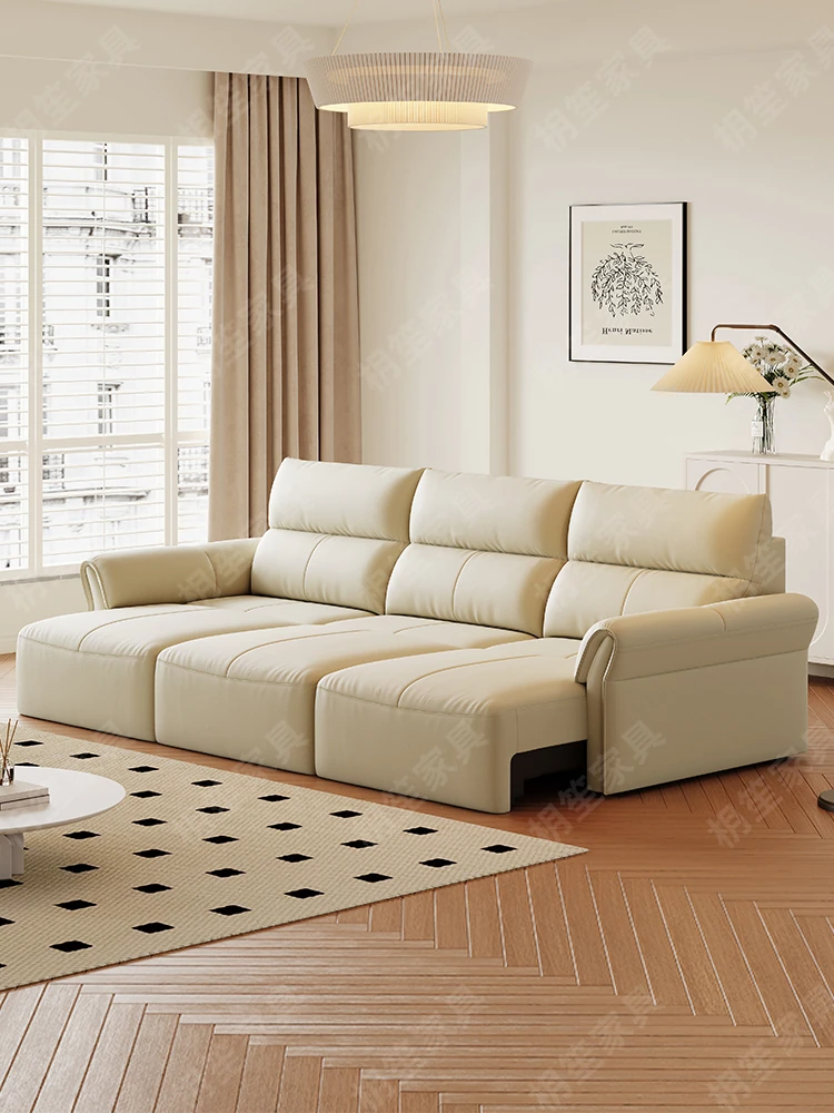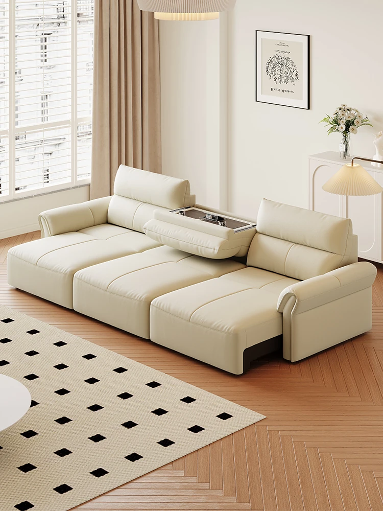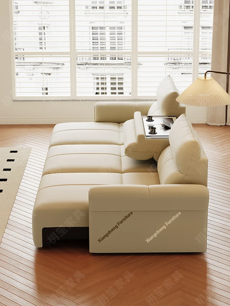 Luxury Space-Efficient Electric Sofa Bed - Modern Convertible Couch for Living Room with Automatic Stretching Function, Multi-Functional Straight Leather Sofa