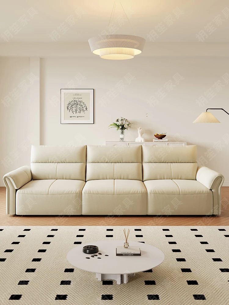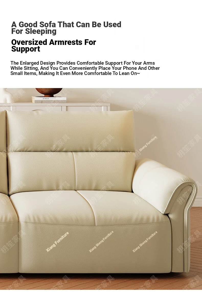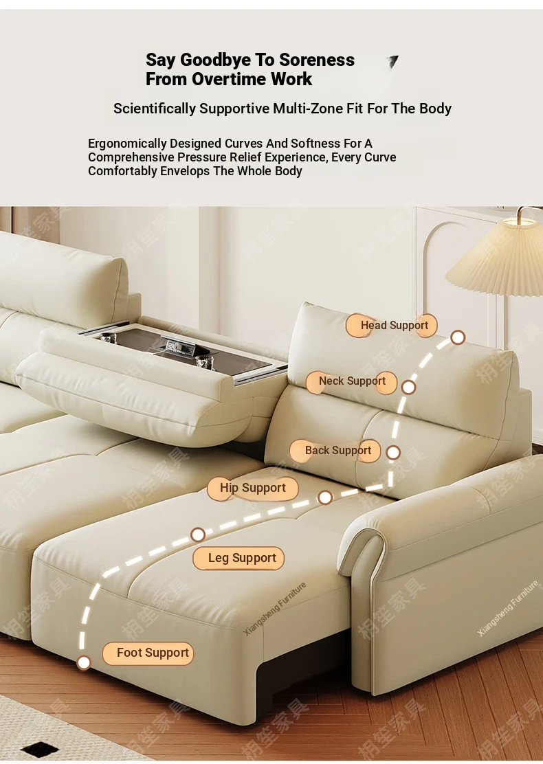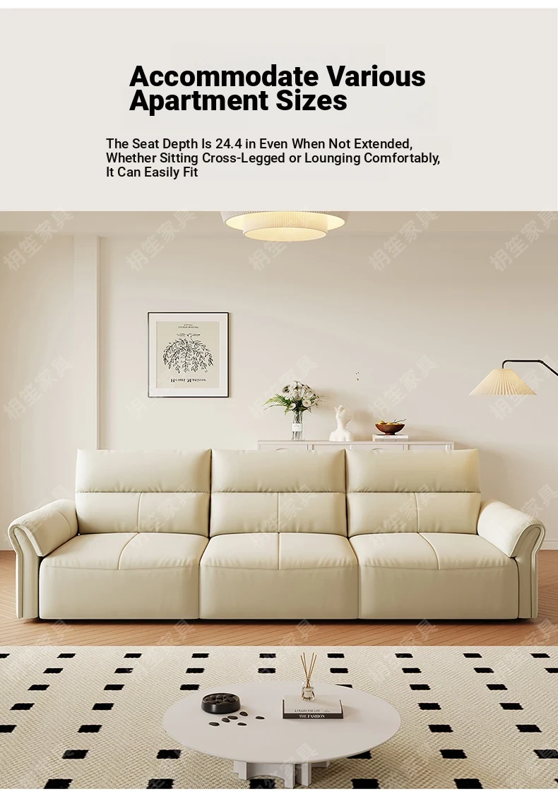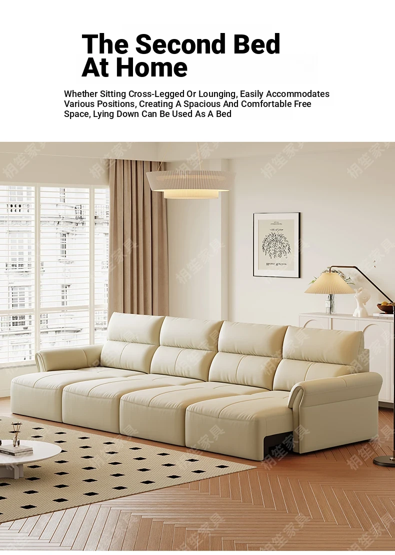 Luxury Space-Efficient Electric Sofa Bed - Modern Convertible Couch for Living Room with Automatic Stretching Function, Multi-Functional Straight Leather Sofa