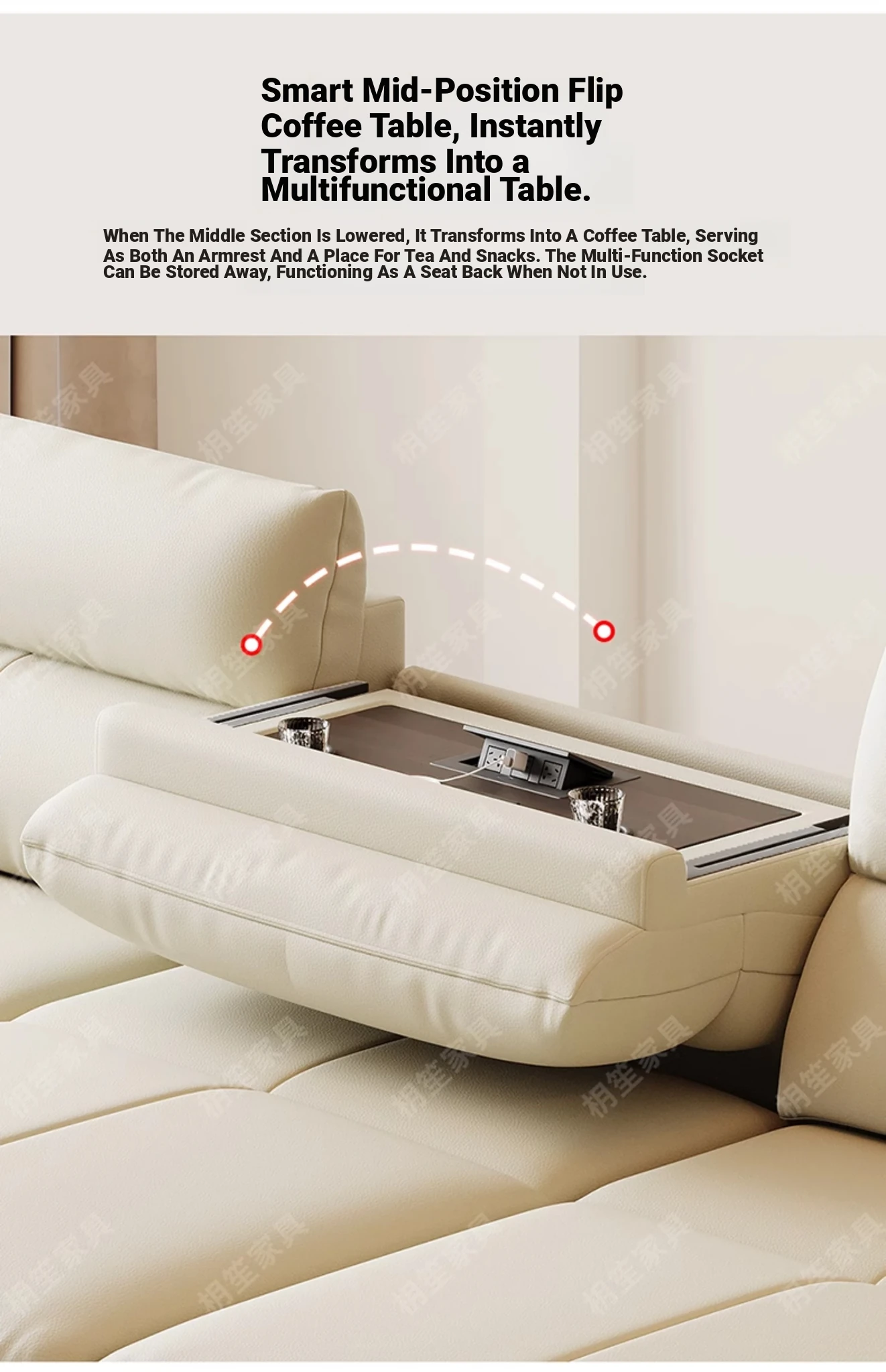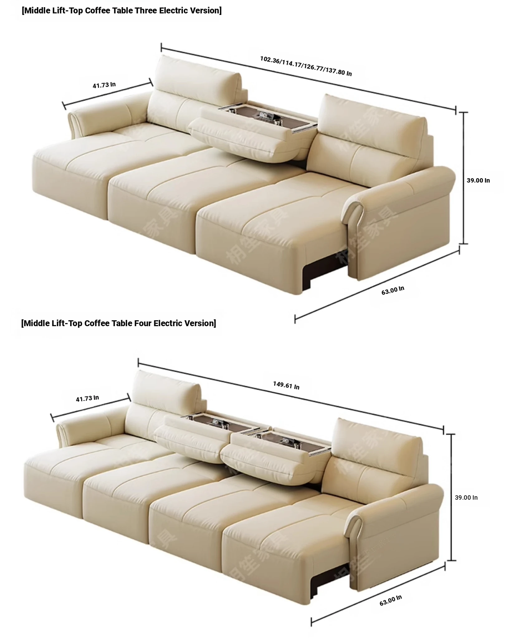 149.61in 4 electric positions [full leather-thickened wrestling top layer cowhide/median flip tea table]]