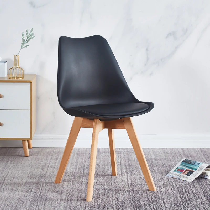 Minimalist Eames Style Leisure Conference Chair - Comfortable Designer Office Desk Chair with Solid Wood Frame and Soft Padding, Perfect for Dining and Workspaces
