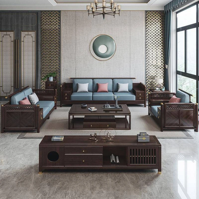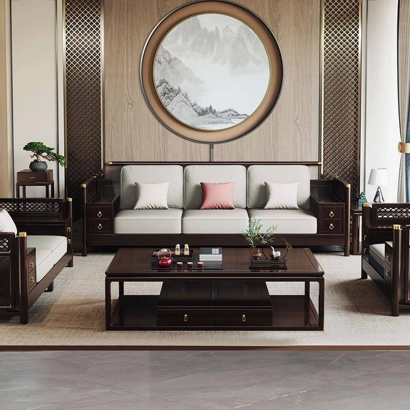 Modern Chinese Style Purple Sandalwood Living Room Faux Wood Coffee Table and Cabinet Set - Elegant Minimalist Furniture for Your Home