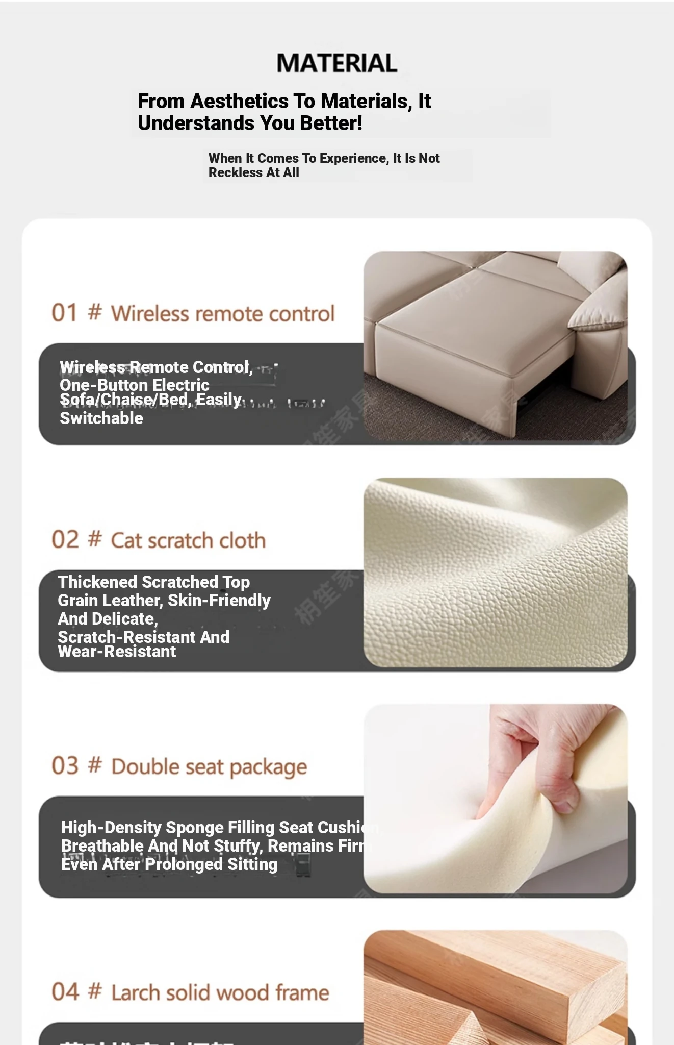 Modern Italian Electric Adjustable Sofa Bed - Minimalist Design for Small Spaces, Perfect for Living Room & Guest Room, First-Class Comfort and Versatility