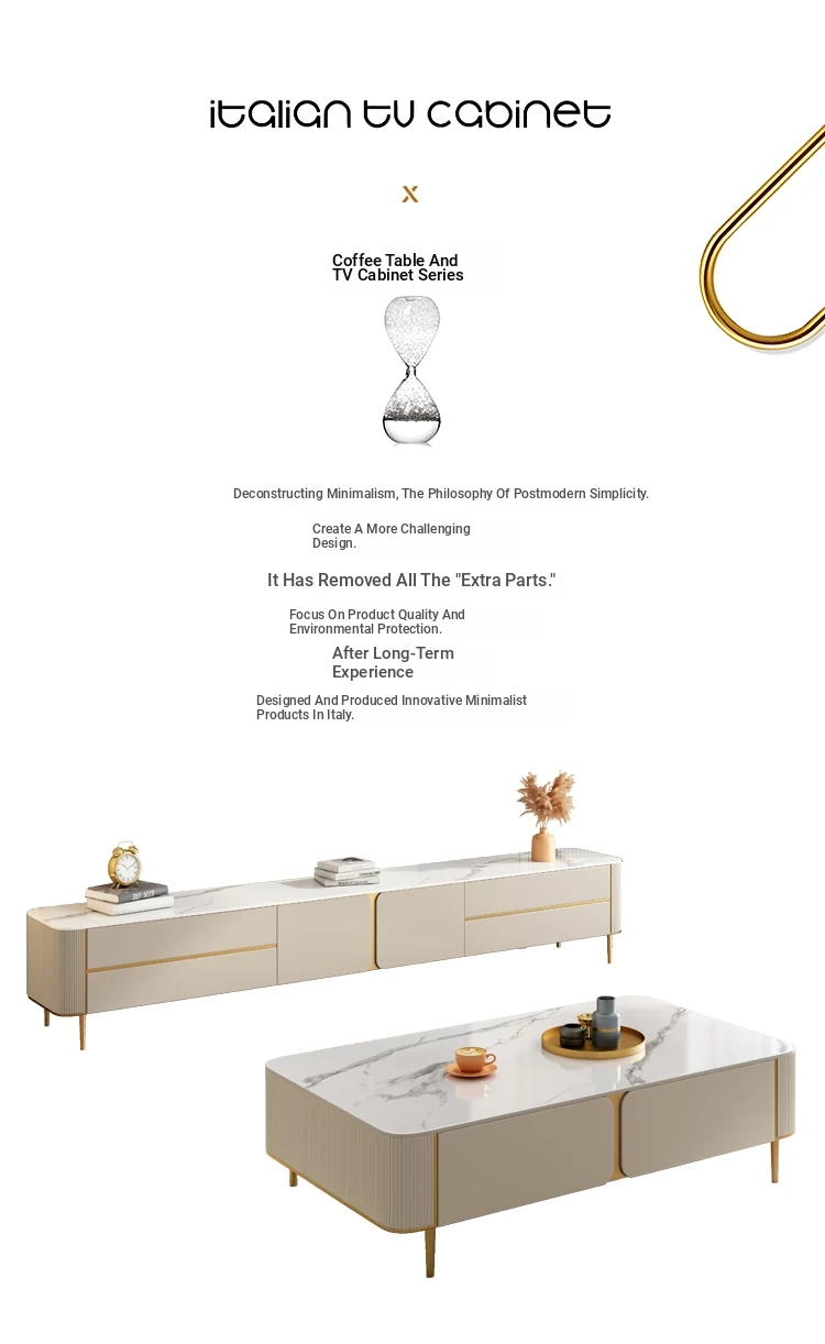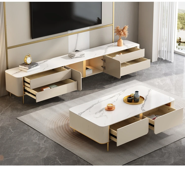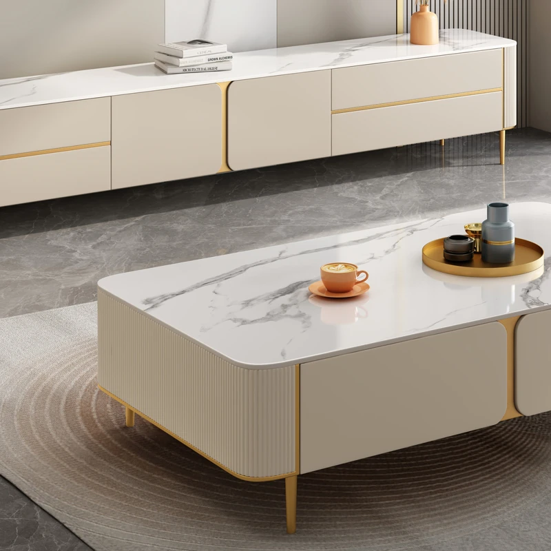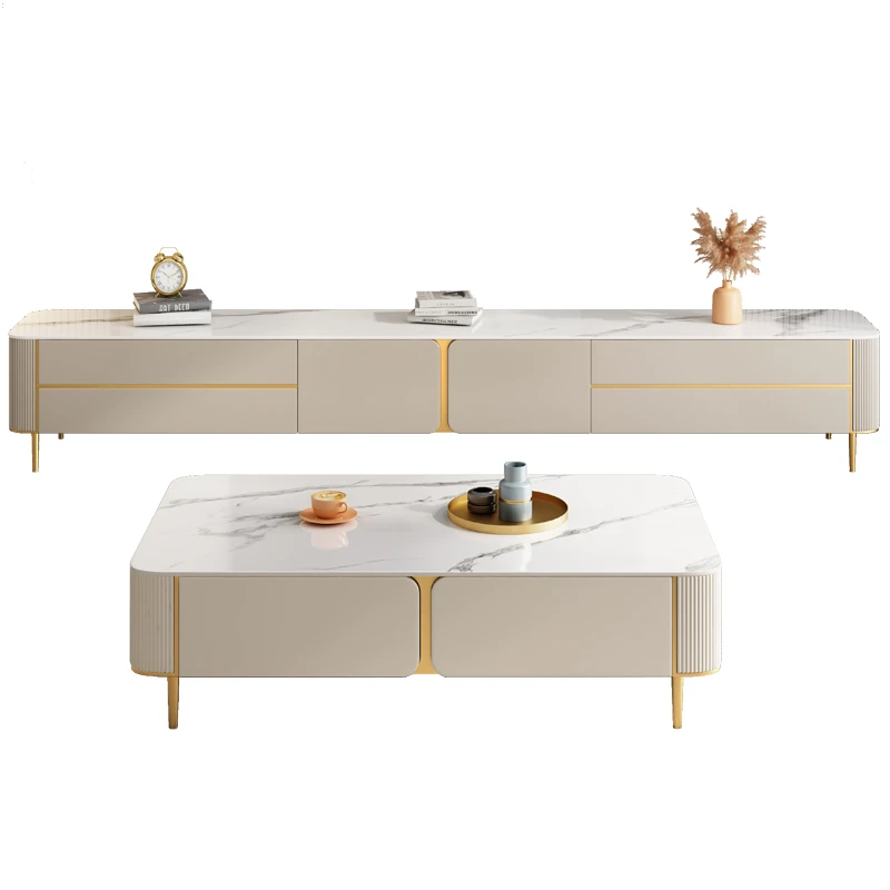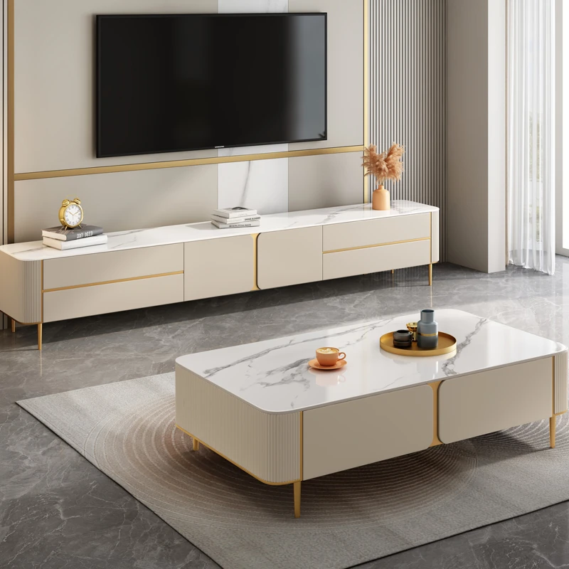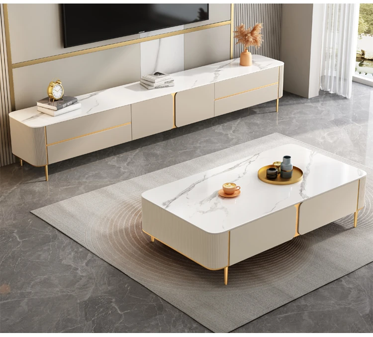 Modern Italian Minimalist Coffee Table and TV Stand Set - Stylish Rock Slab Tea Table for Living Room, 2025 New Design