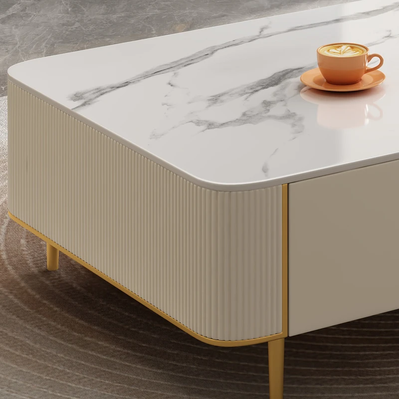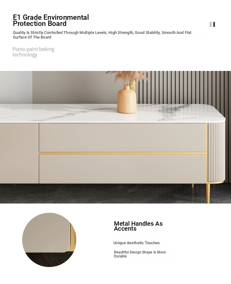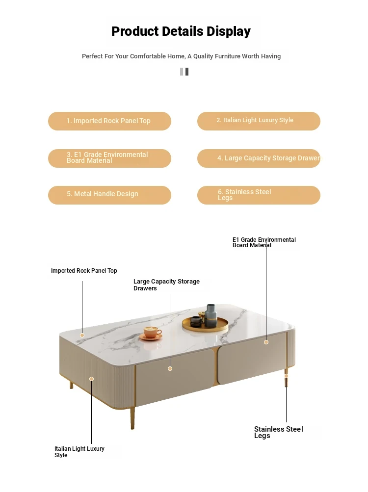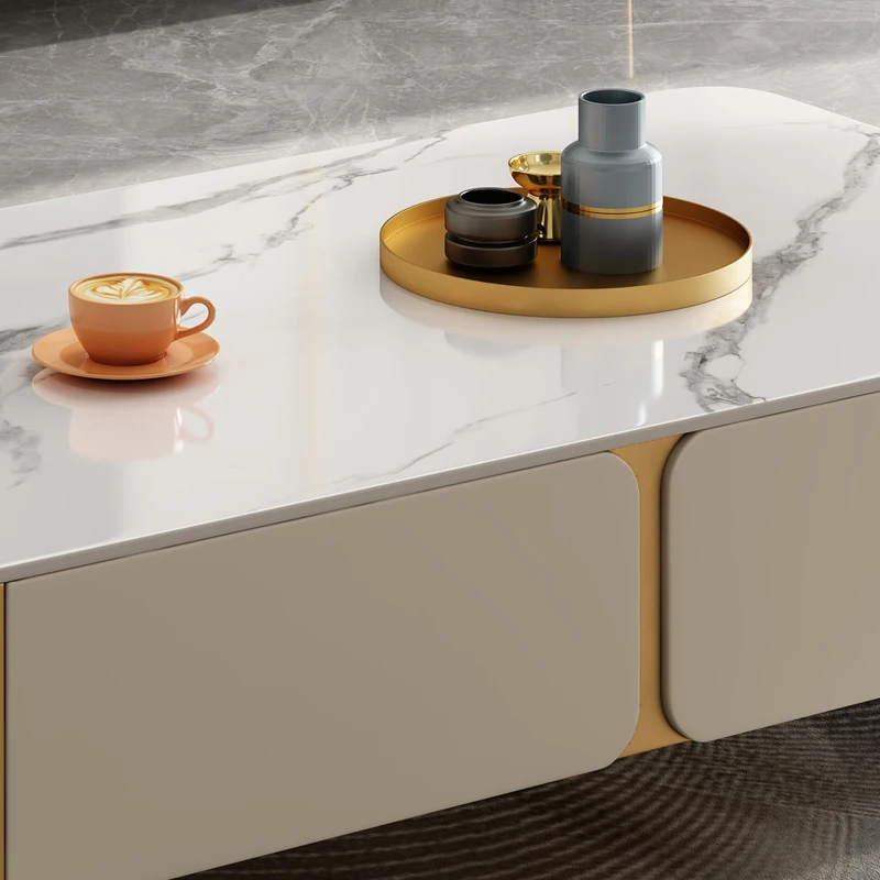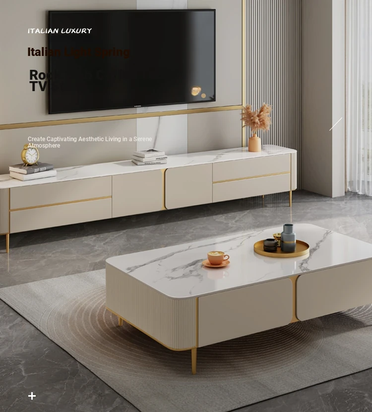 Modern Italian Minimalist Coffee Table and TV Stand Set - Stylish Rock Slab Tea Table for Living Room, 2025 New Design