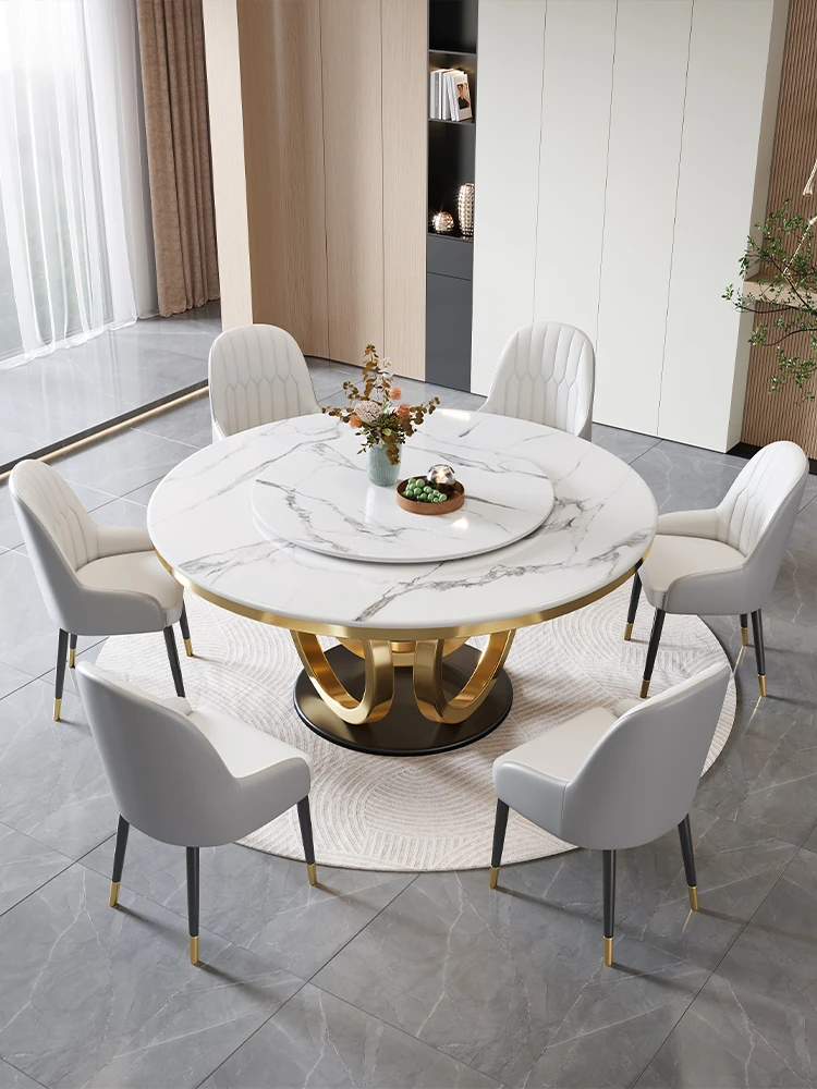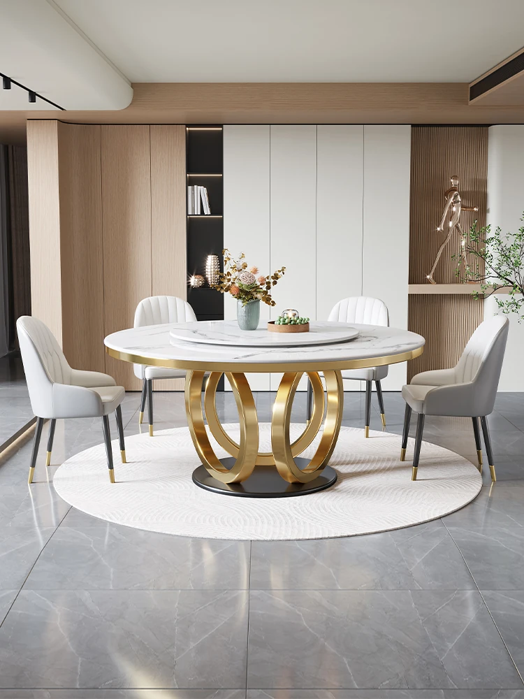 Modern Italian Minimalist Round Dining Table and Chair Set with Rotating Function - Perfect for Small Living Rooms and Contemporary Homes
