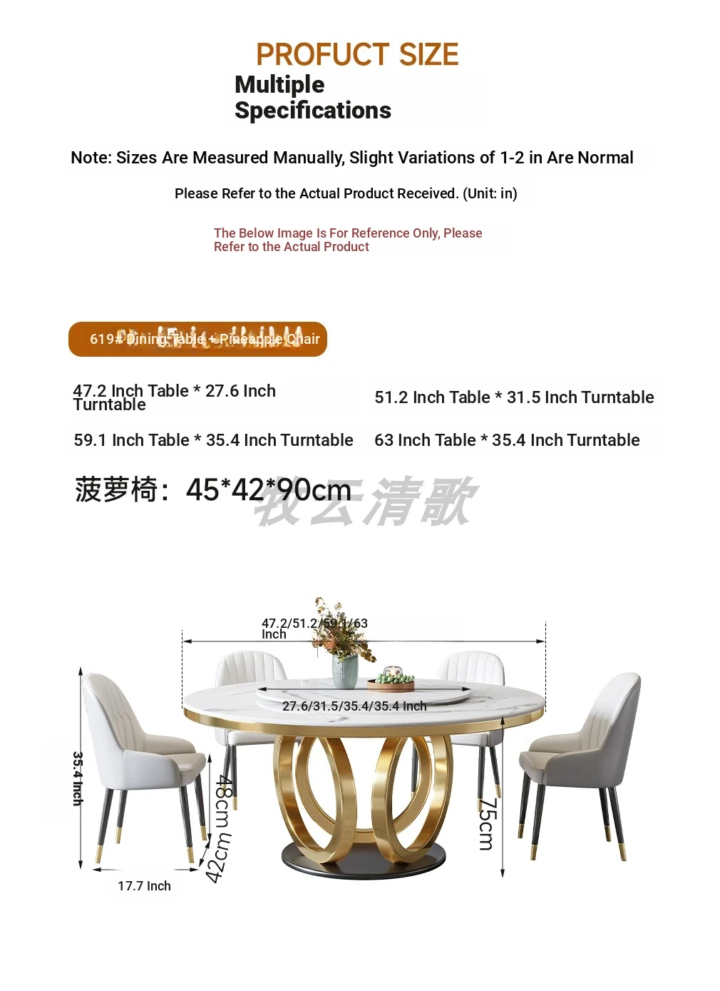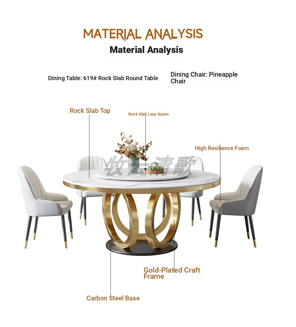 51.18 in thickened Rock Slab Round Table +8 Pineapple Chair
