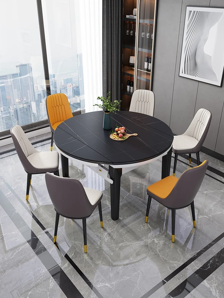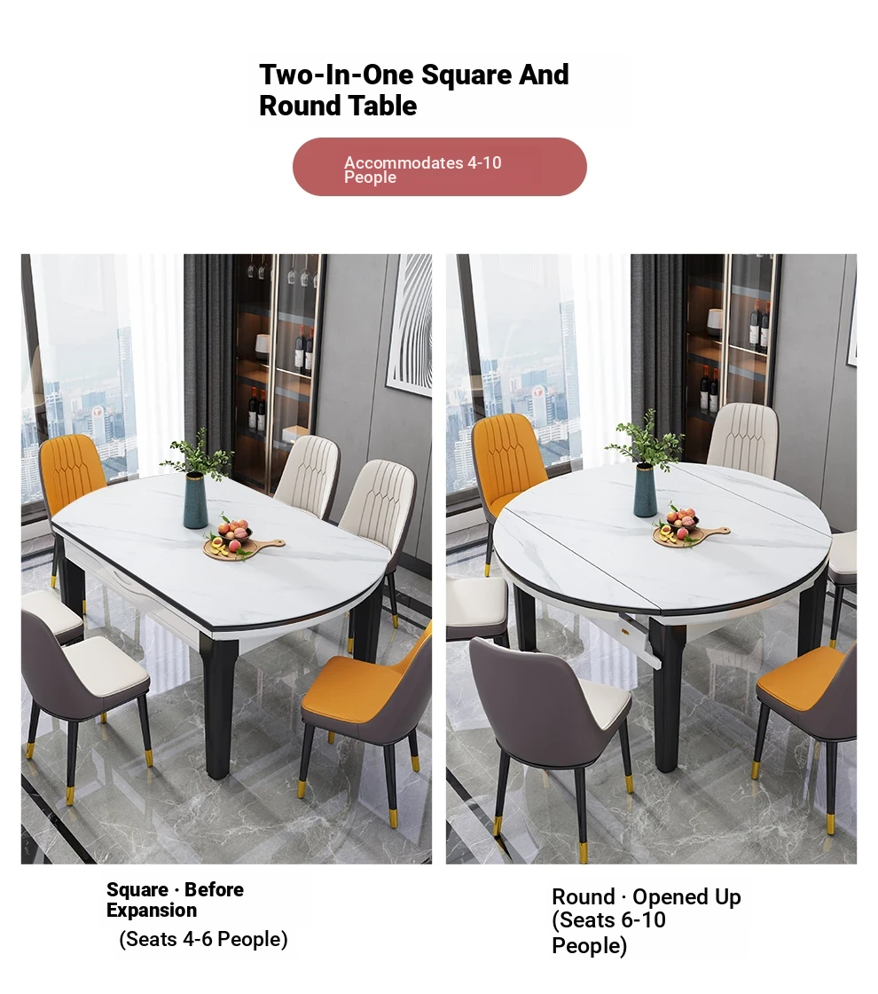 Modern Luxury Extendable Dining Table Set - Versatile Round/Square Solid Wood Table and Chair Combo for Small Spaces, Perfect for Home Dining