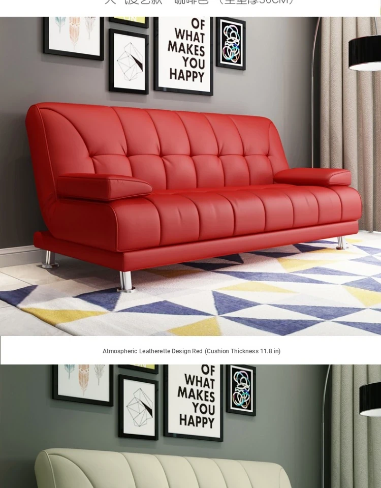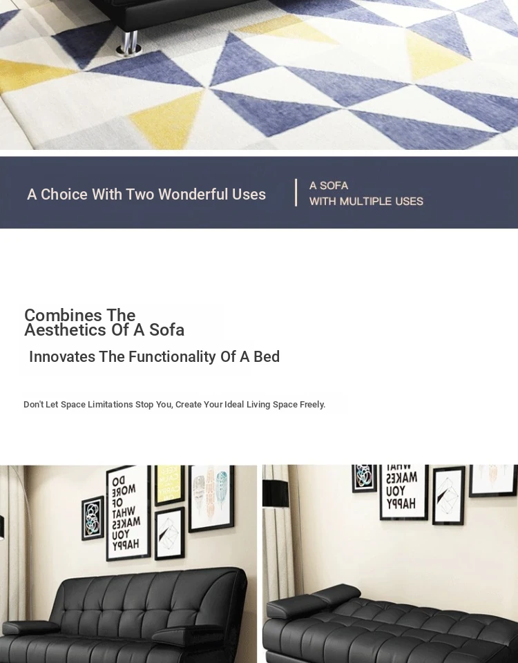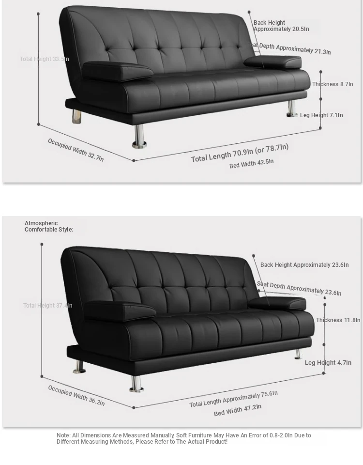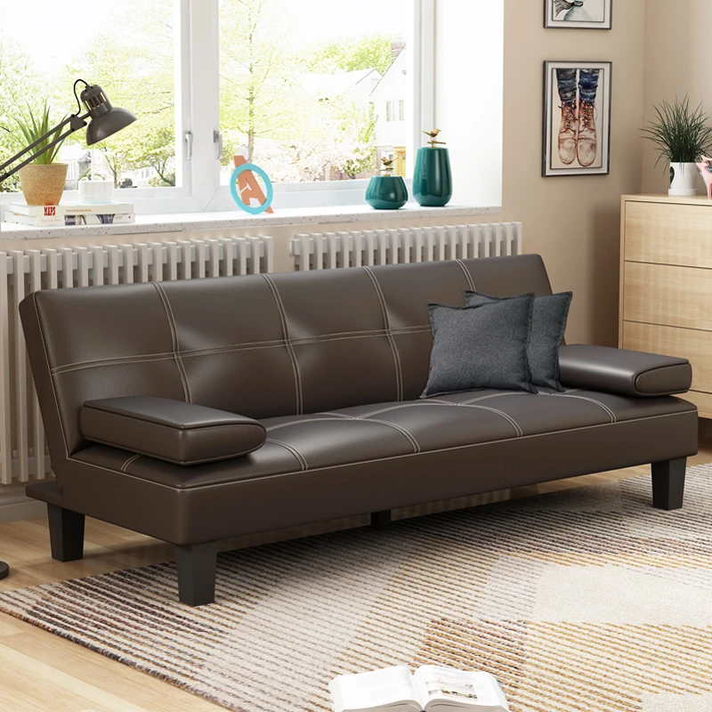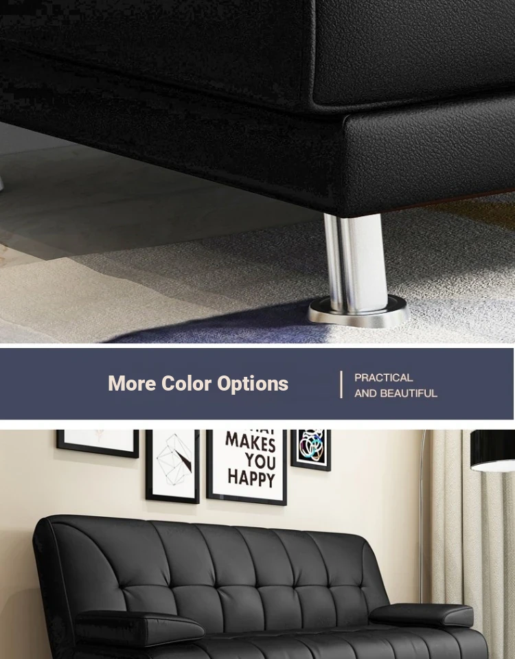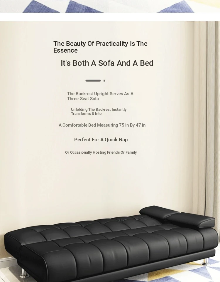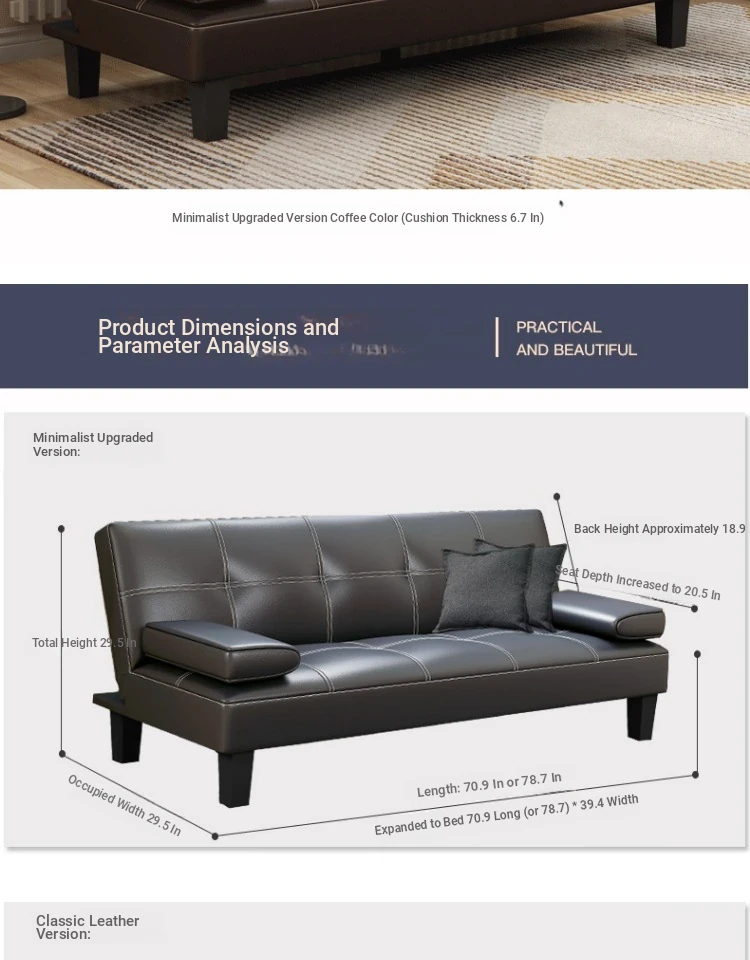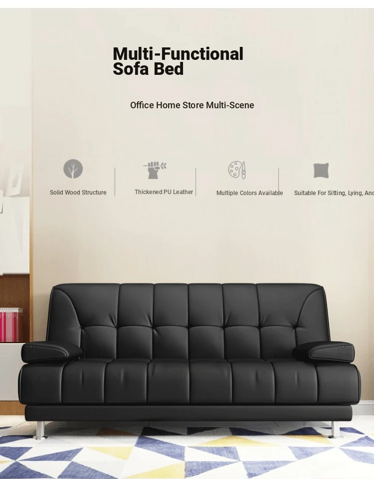 Modern Minimalist Double Sofa Bed - Foldable Design for Small Spaces, Perfect for Living Rooms and Home Offices, Made with Solid Wood and Leatherette, 1.8m Length