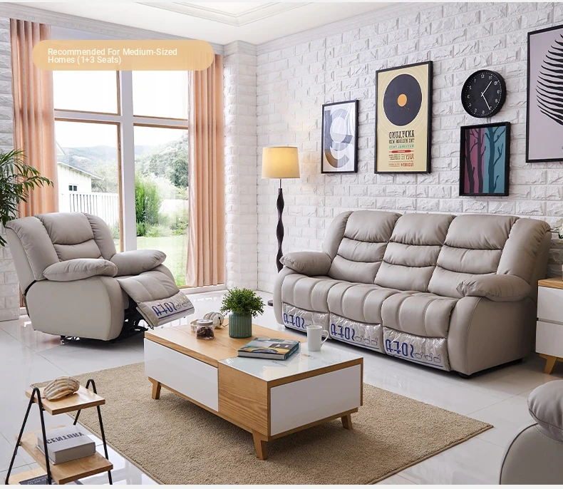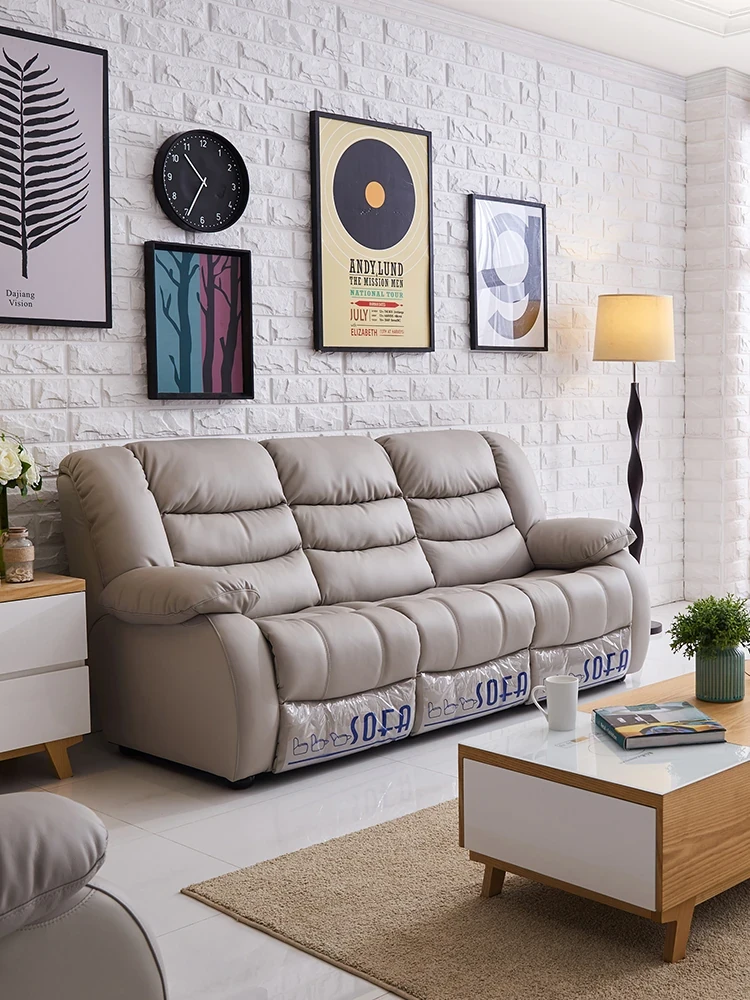 Modern Minimalist Electric Multi-Functional Sofa Set with First Layer Cowhide - Space Capsule Chair for Small Apartments, 3-Seater Living Room Furniture