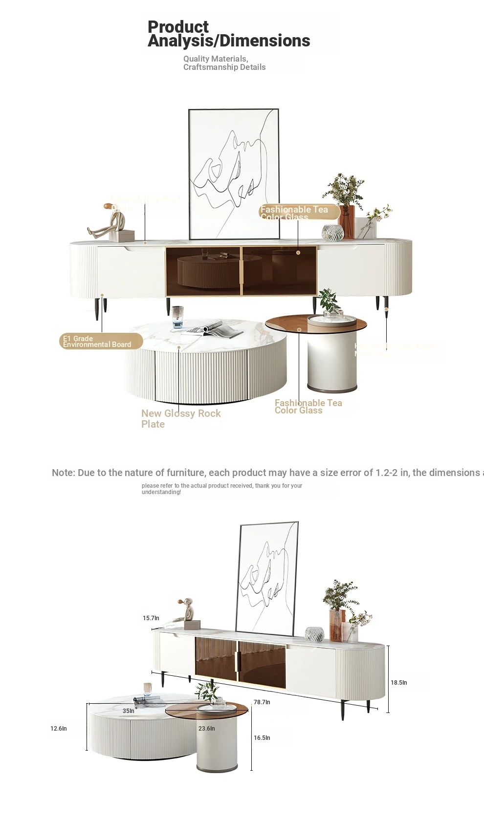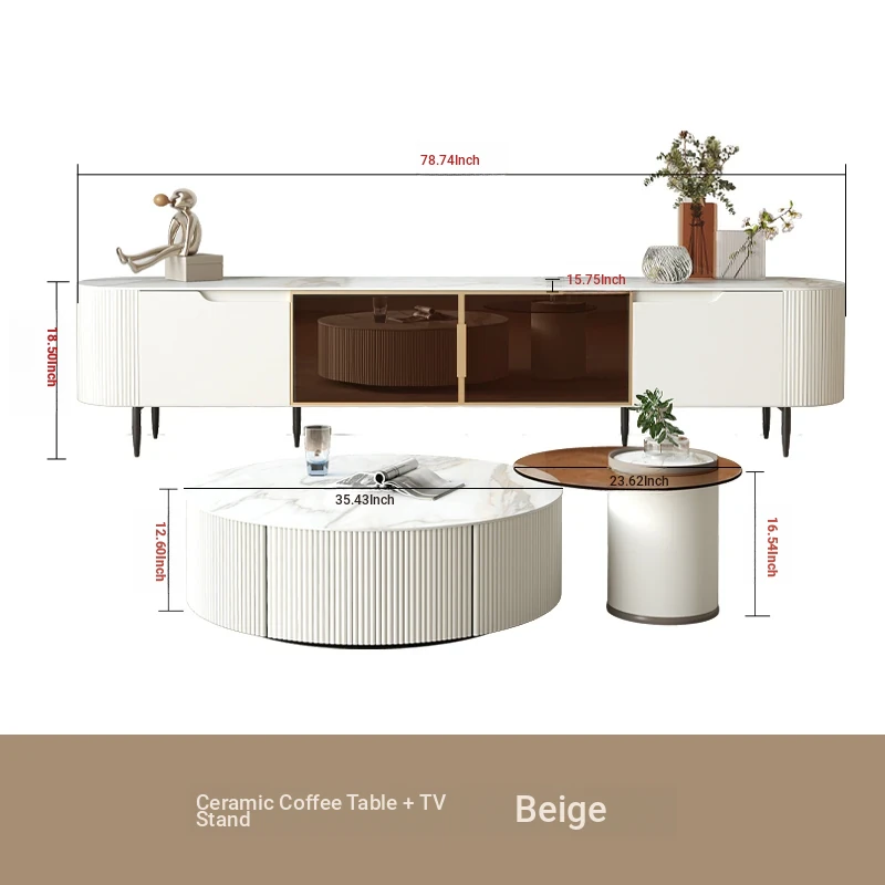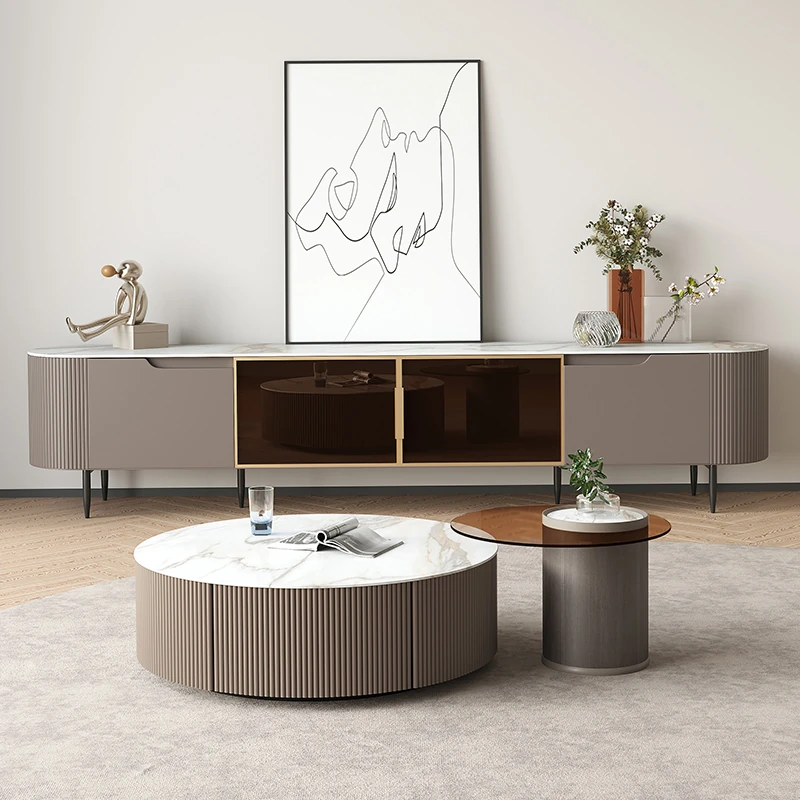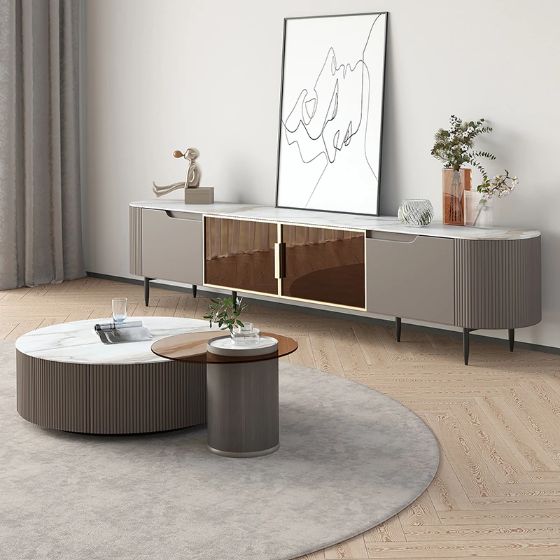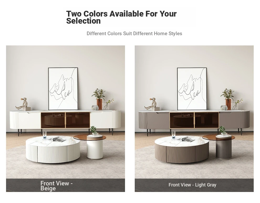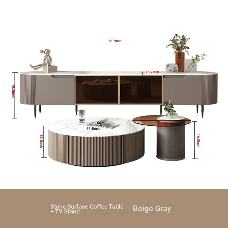 [Rice Gray] Rock plate coffee table TV cabinet combination