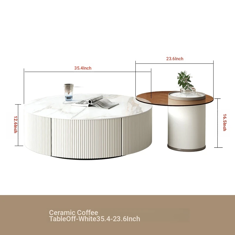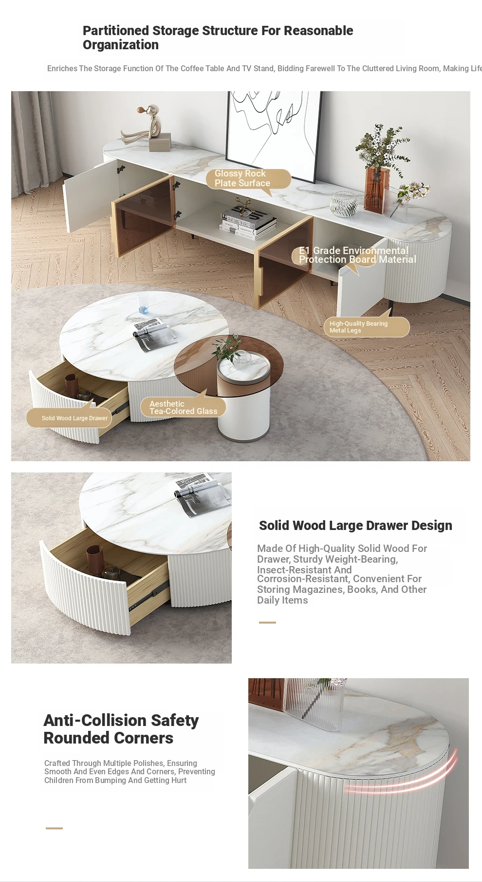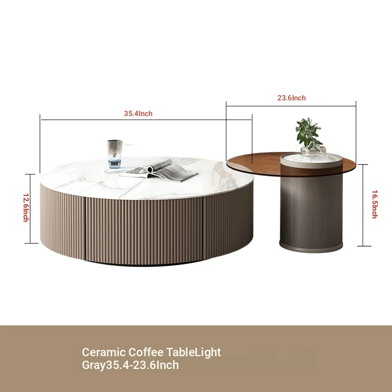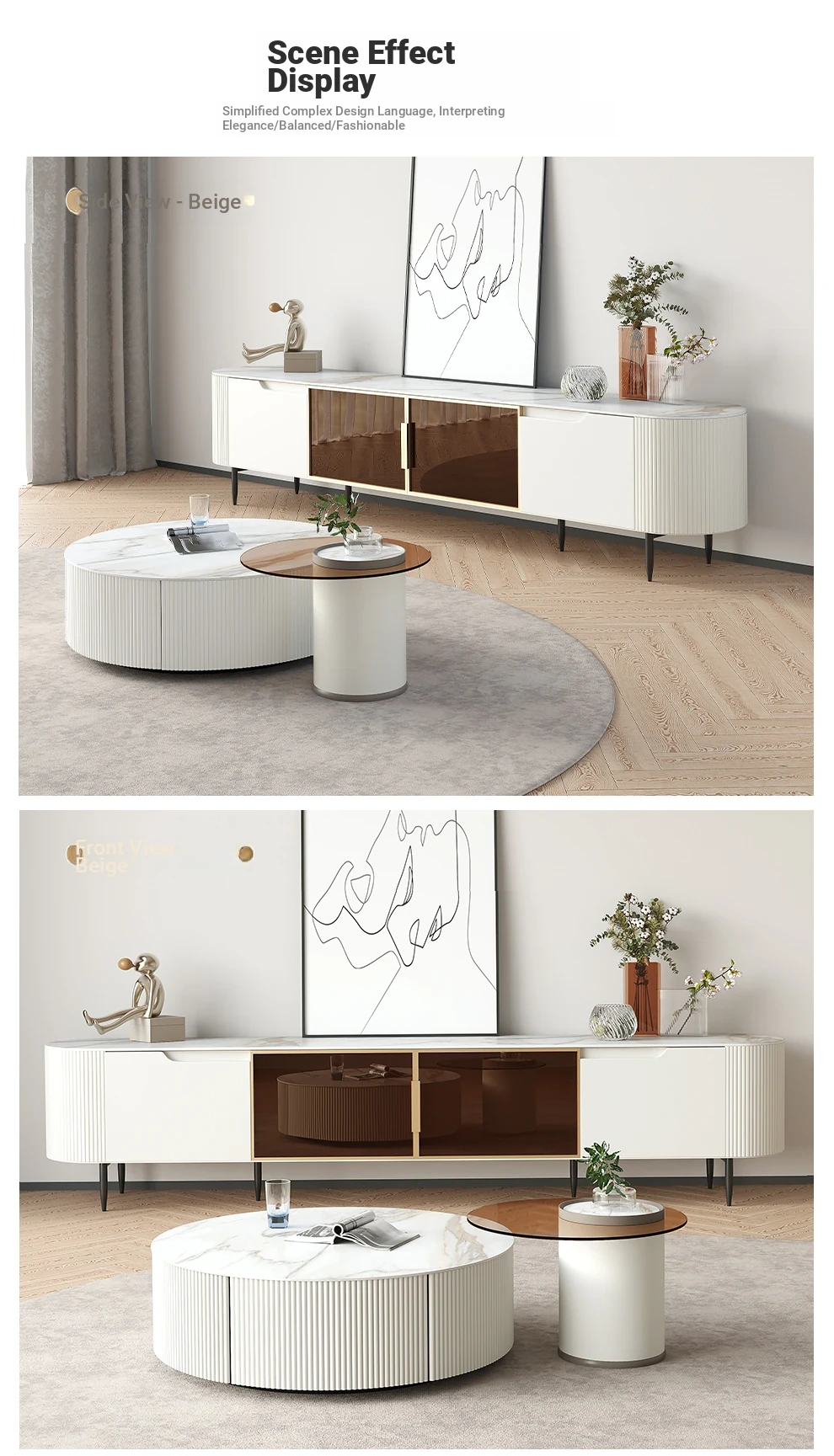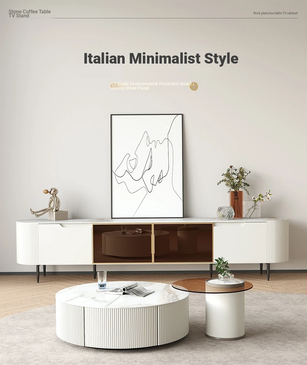 Modern Minimalist Round Coffee Table with Expandable Storage - TV Cabinet Featuring Rock Plate Finish and Carbon Steel Legs - Chic and Elegant Design