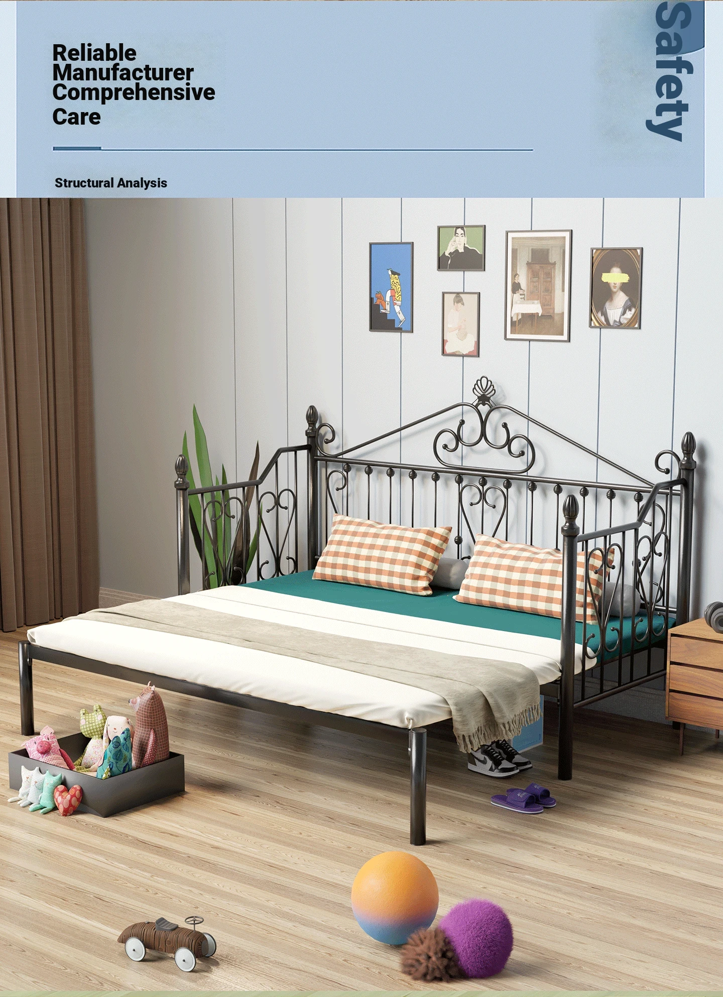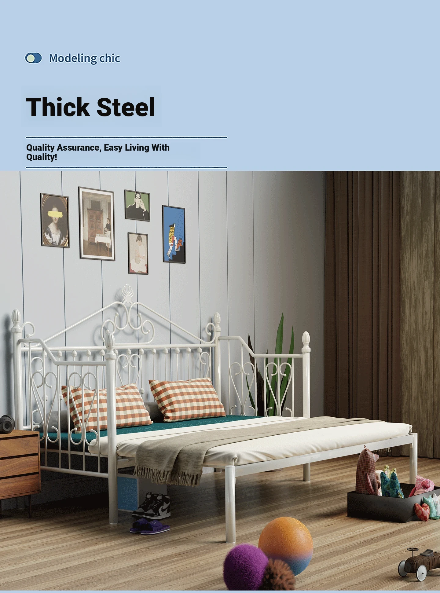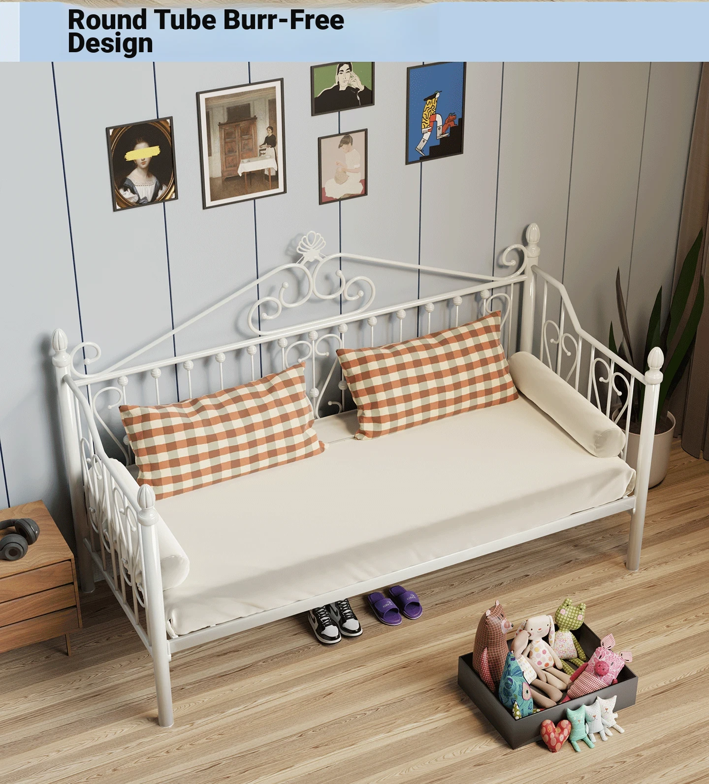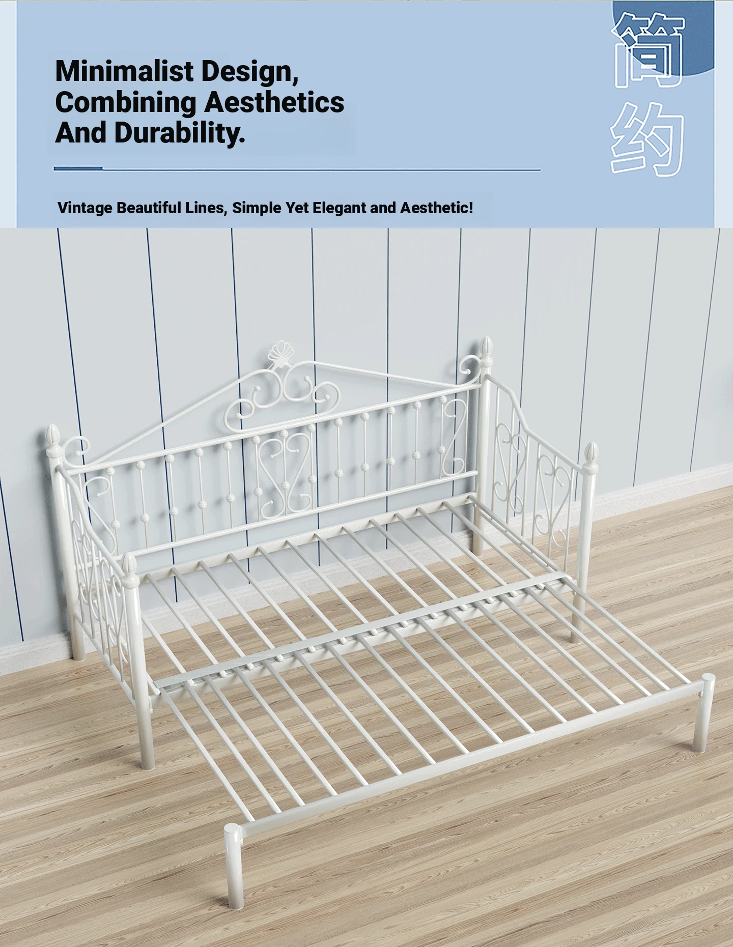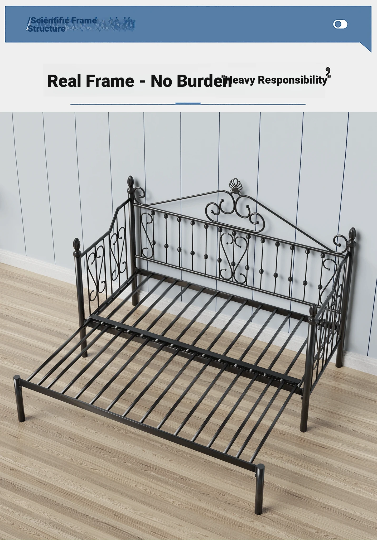 Multi-Functional Foldable Iron Sofa Bed - 1.2m Sofa Bed Converts to Bed with No Headboard, Space-Saving Retractable Design for Sitting and Sleeping