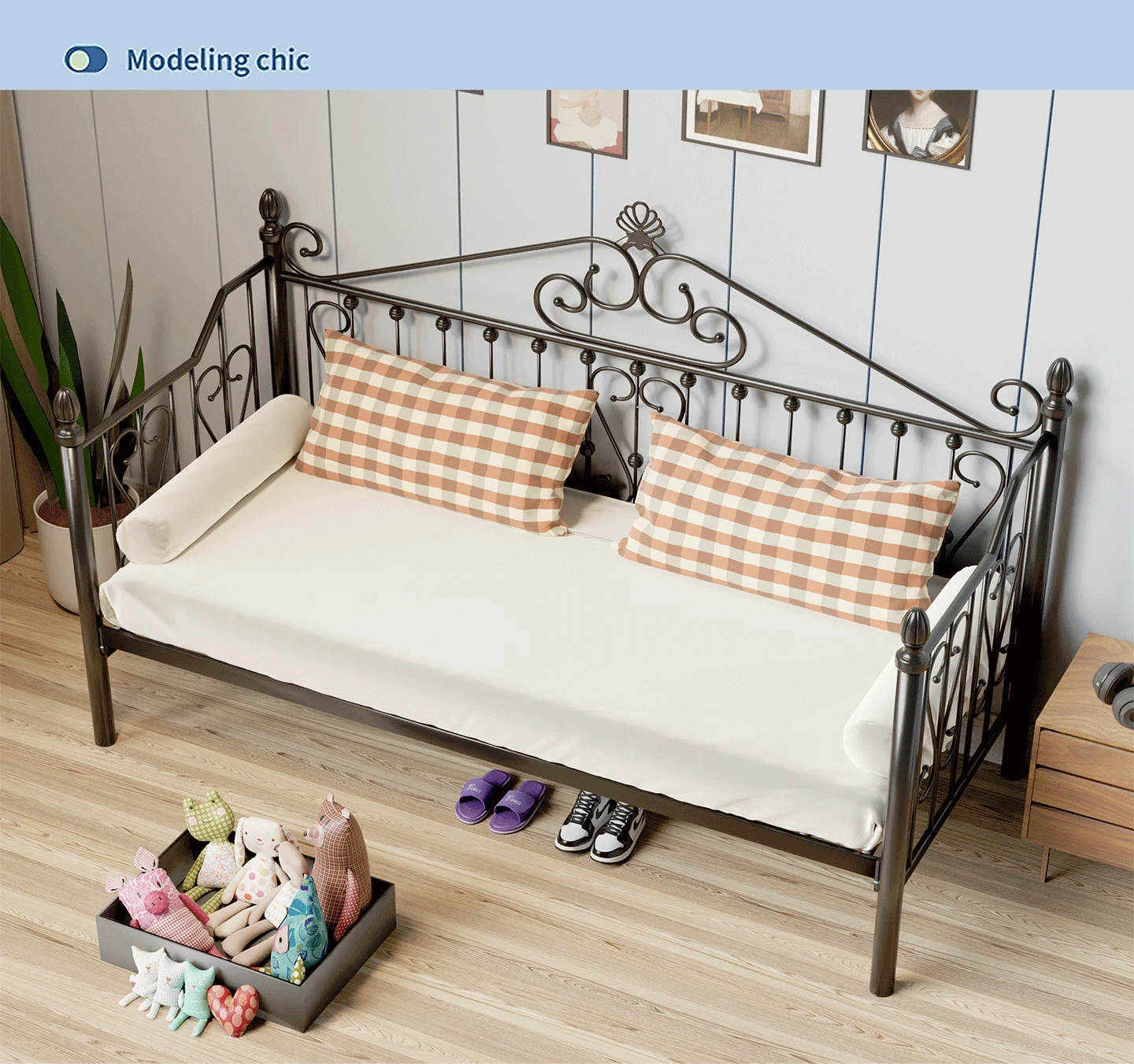 White/black 90*190 bed frame + Brown mat + installation(Iinediate delivery)