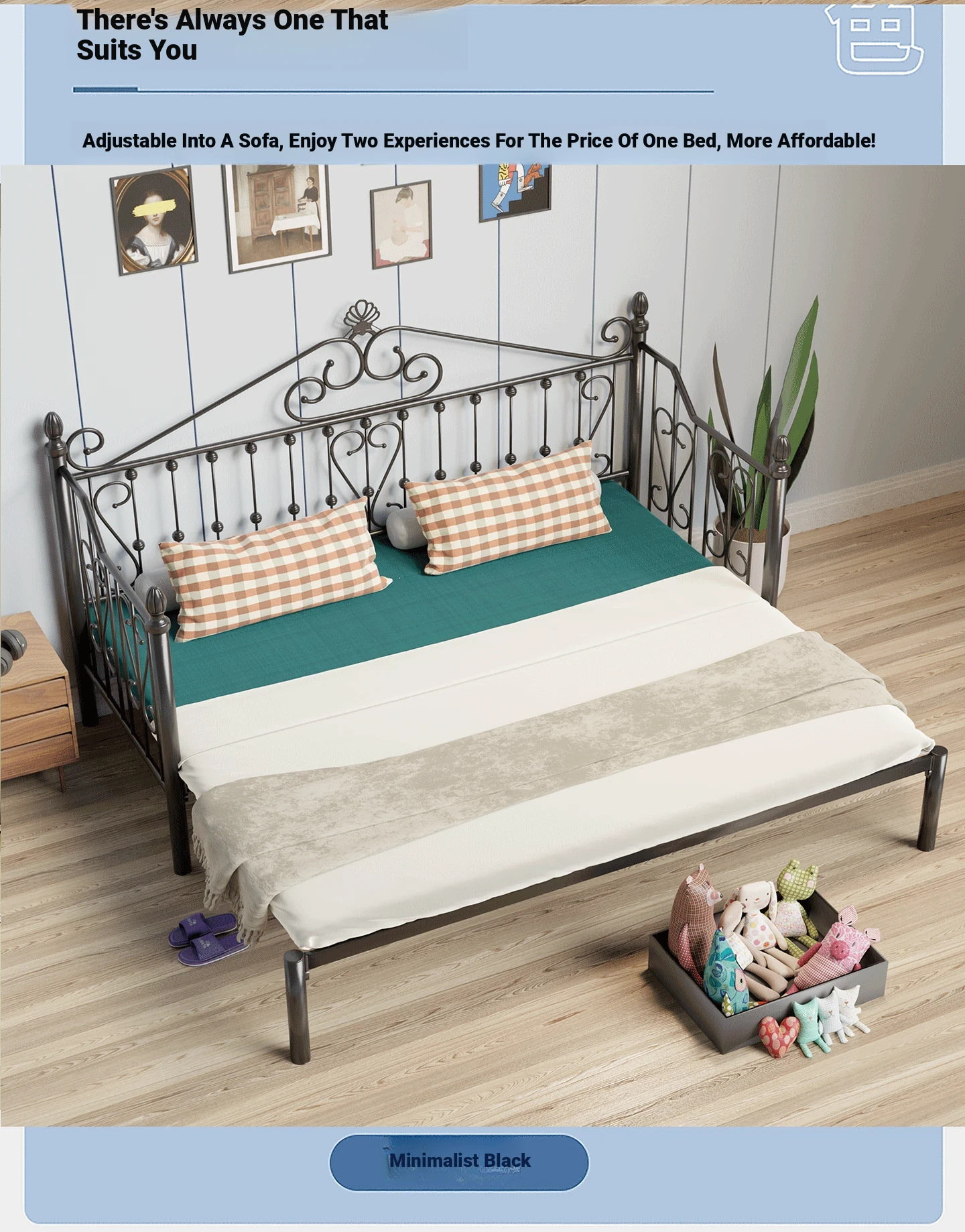 White/Black 70.87in*78.74in telescopic sofa frame + Foldable mattress + installation(Delivery within 24 hours)