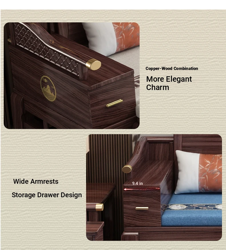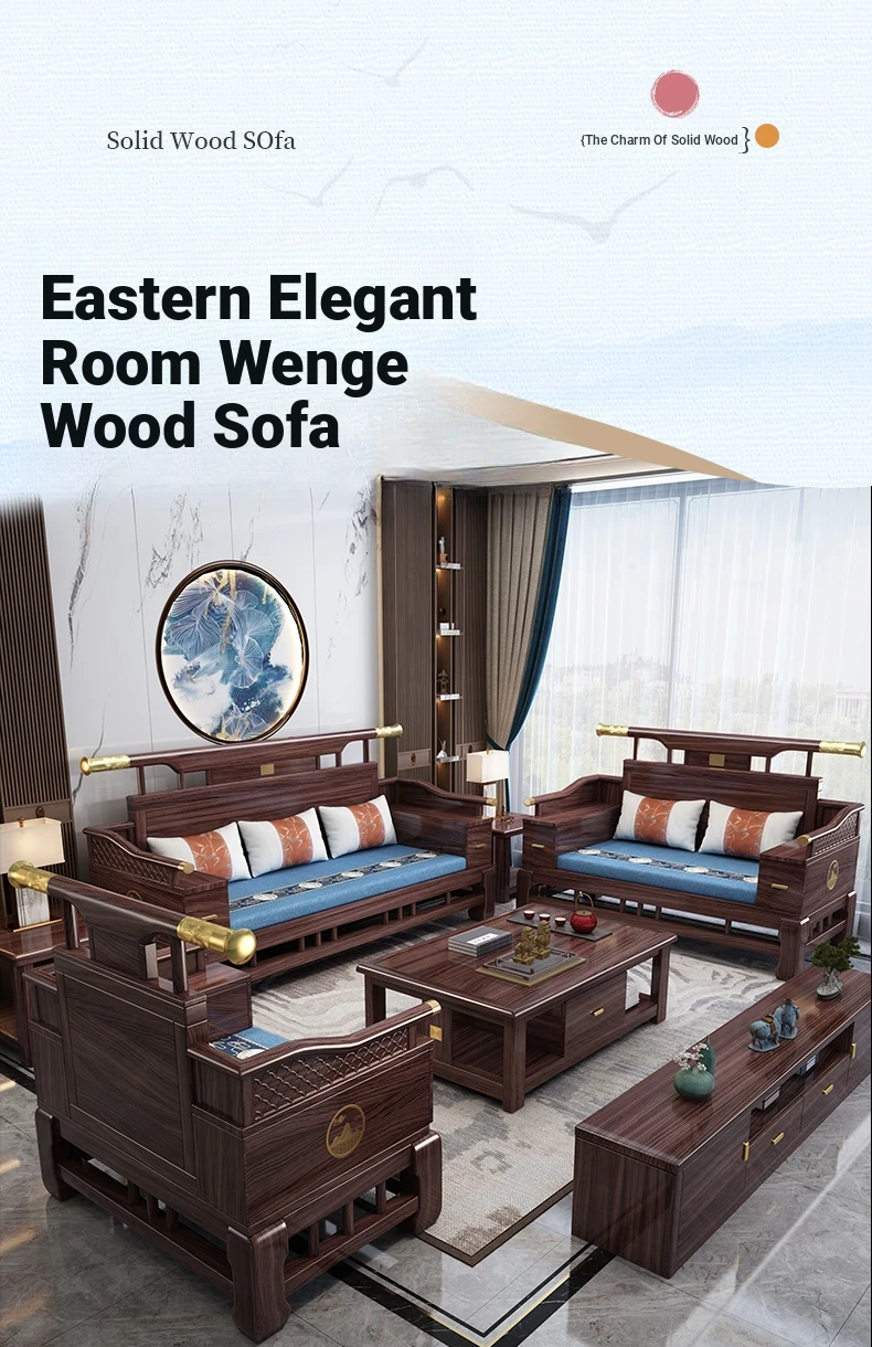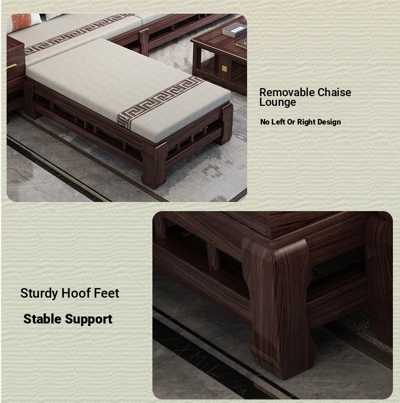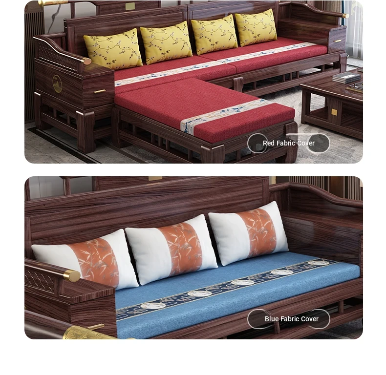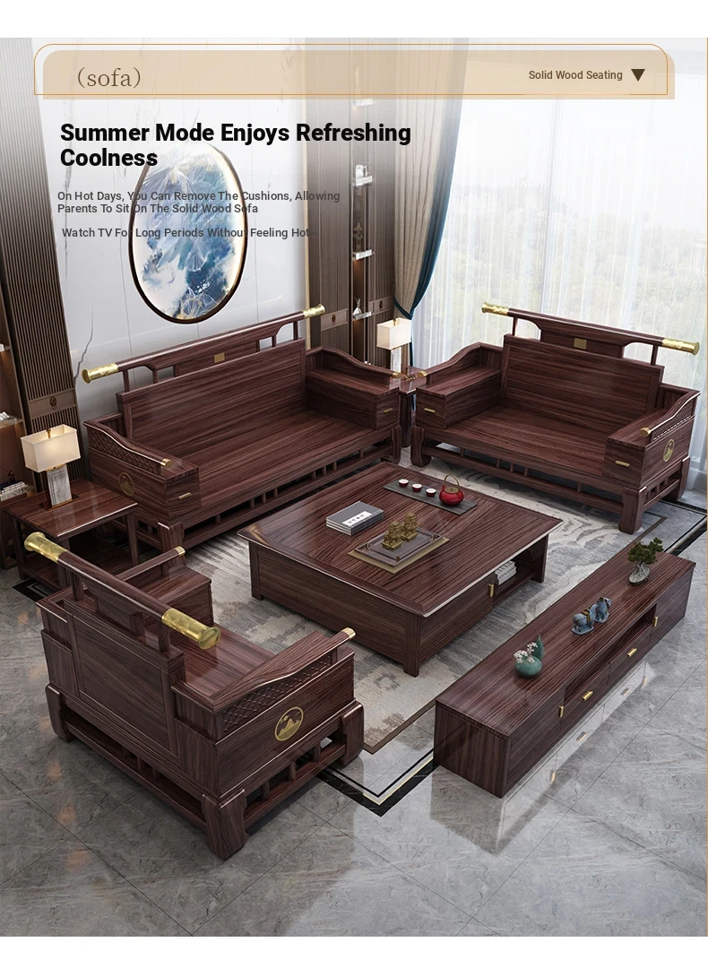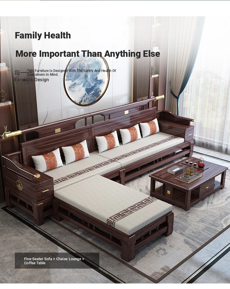 New Chinese Style Solid Blackwood Sofa - Full Solid Wood U-Shaped Vintage Large Sofa Set for Luxurious Villas and Spacious Living Rooms