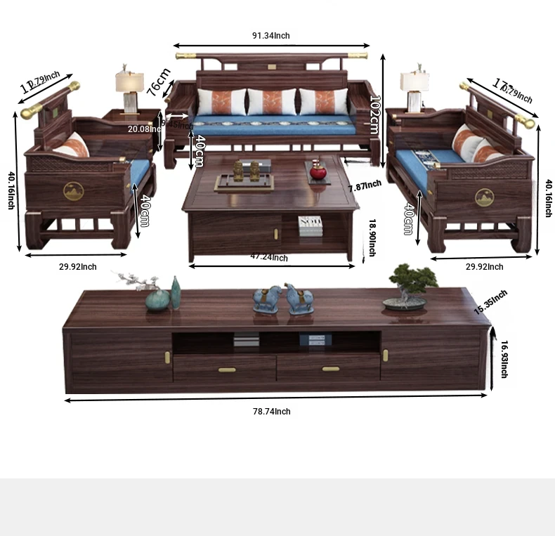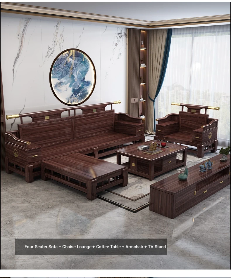 4-person + imperial concubine couch + long tea table + TV cabinet