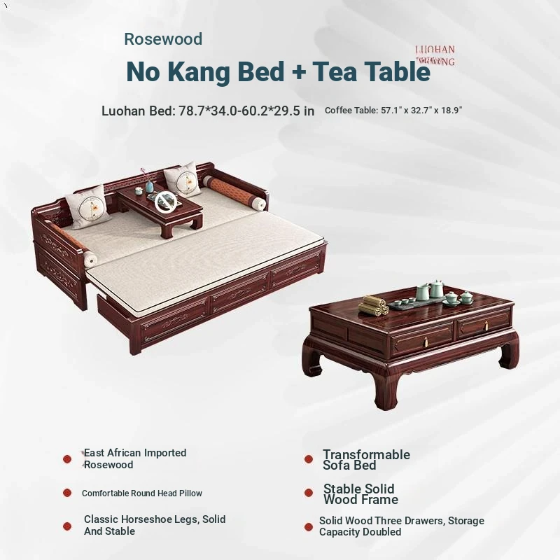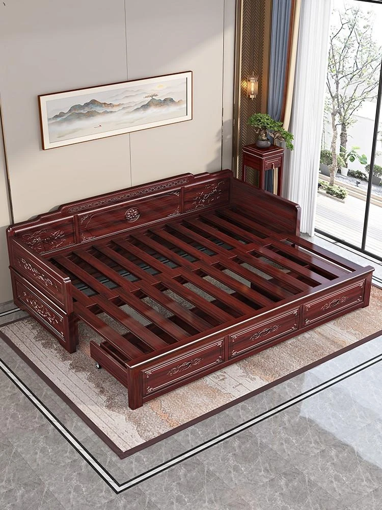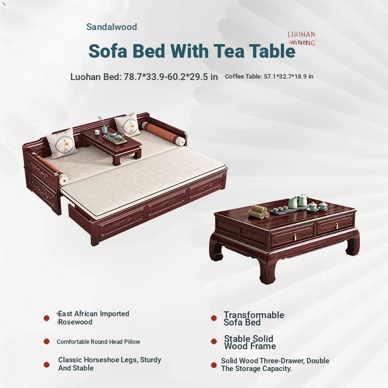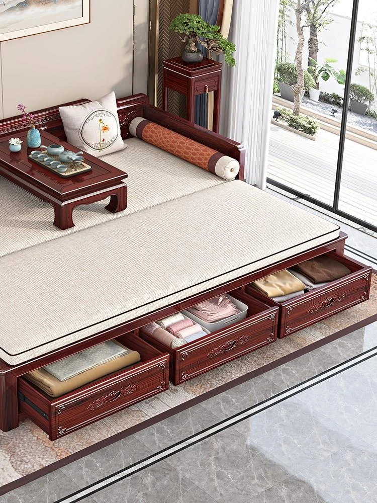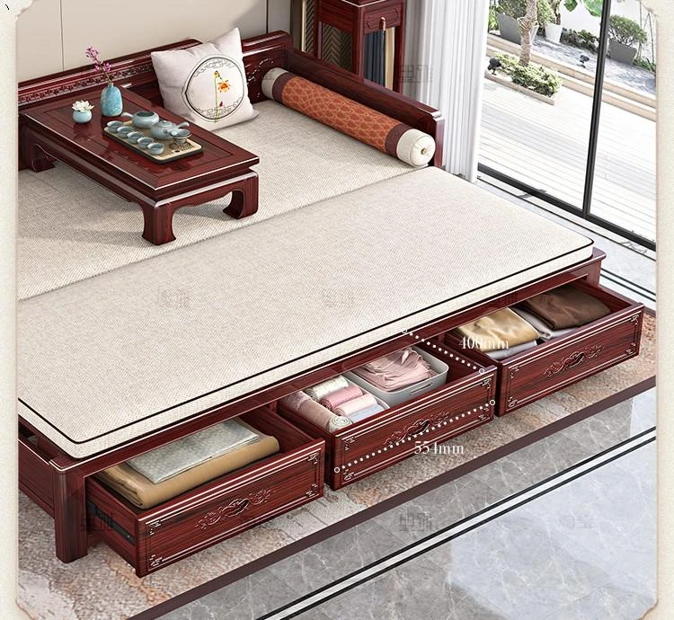 New Chinese Style Solid Wood Luo Han Bed - Versatile Pull-Out Sofa Bed in Acacia Wood for Small Living Rooms and Home Use