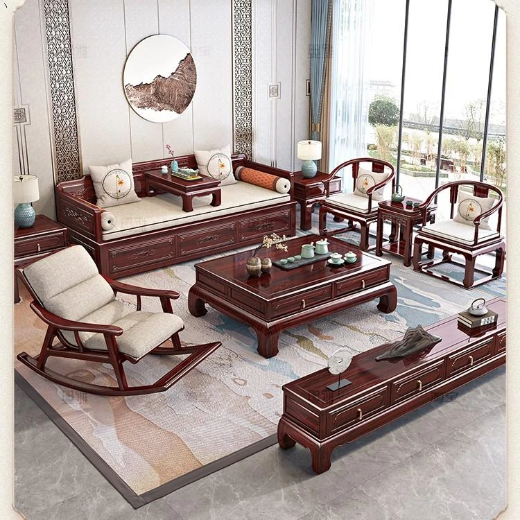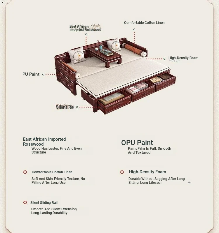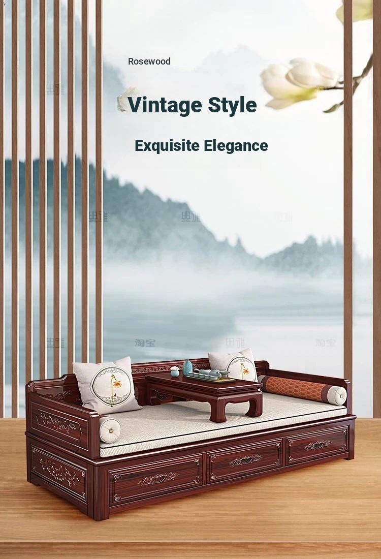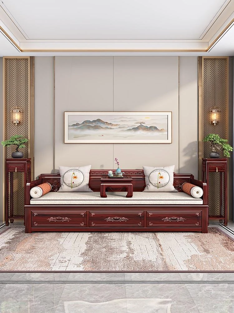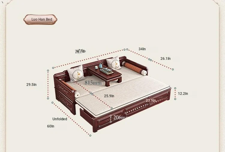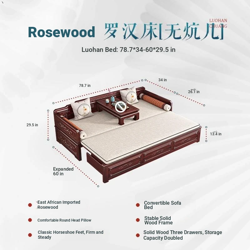 New Chinese Style Solid Wood Luo Han Bed - Versatile Pull-Out Sofa Bed in Acacia Wood for Small Living Rooms and Home Use